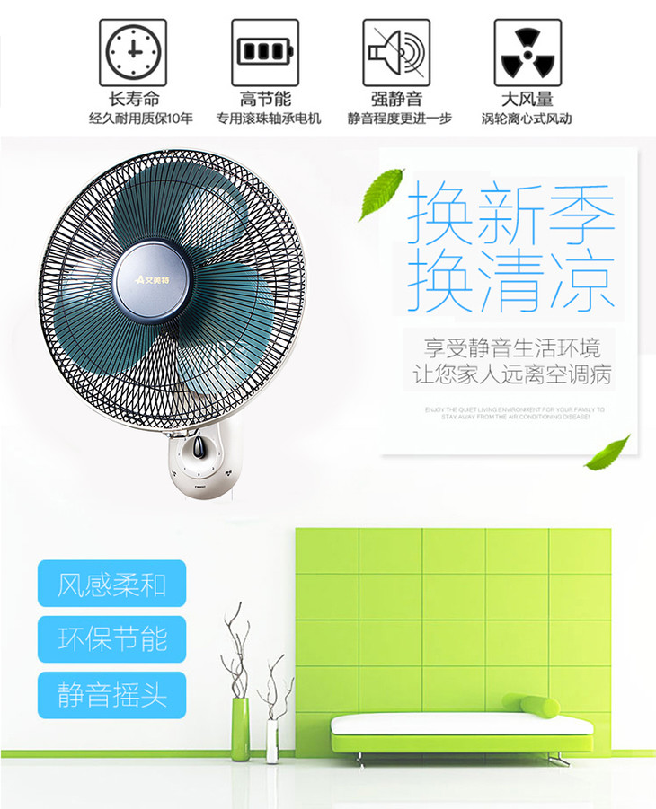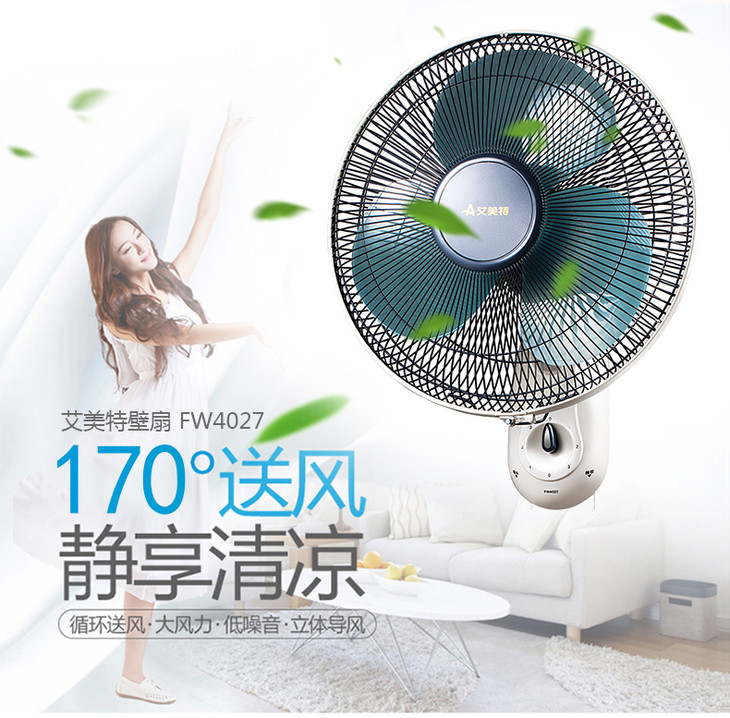 艾美特(506334)壁扇FW4027机械式餐厅三叶宿舍家用摇头挂墙壁挂式工业大电风扇