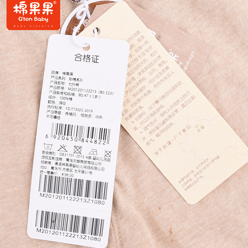 棉果果夏季彩棉男童女童七分裤全棉舒适M201201122213
