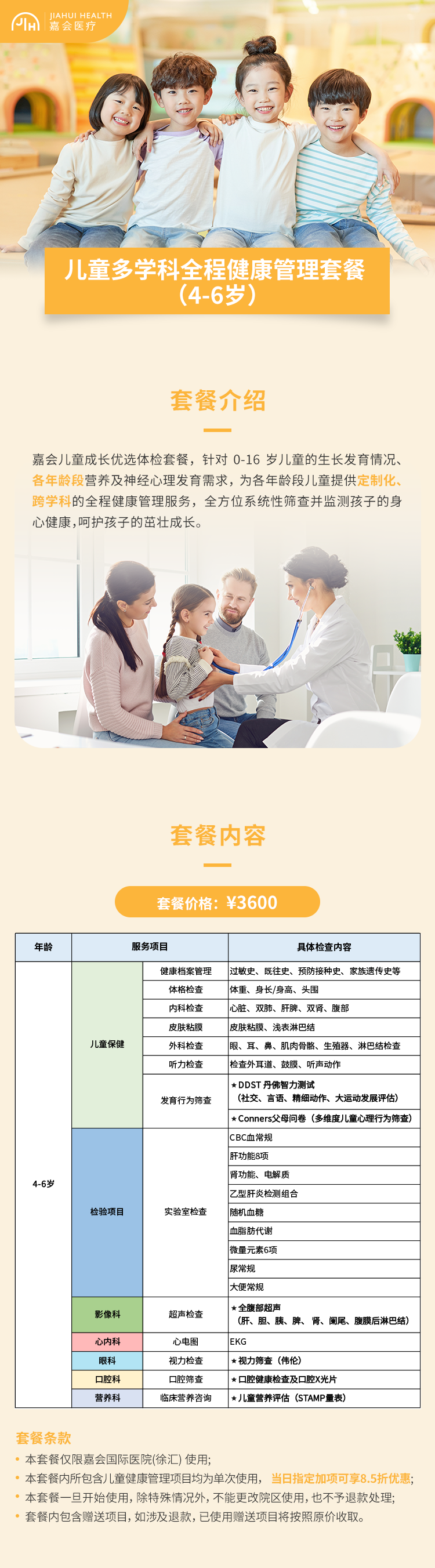 儿童多学科全程健康管理套餐(4-6岁) 嘉会医疗