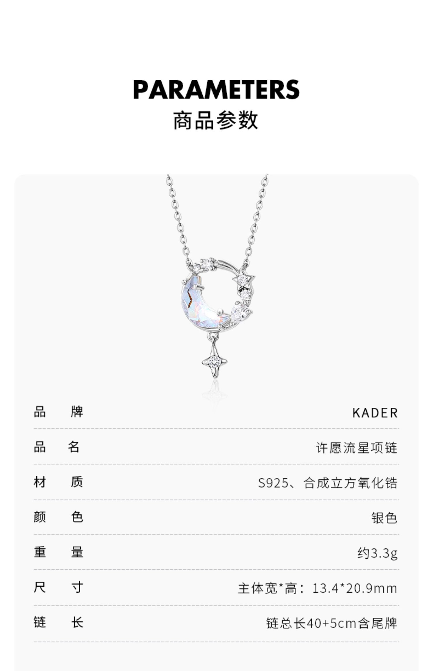 KADER卡蒂罗 许愿流星 小众气质轻奢高级感 森系小清新 闺蜜精致百搭款 S925银 项链 女款 银白色 送礼 礼盒款