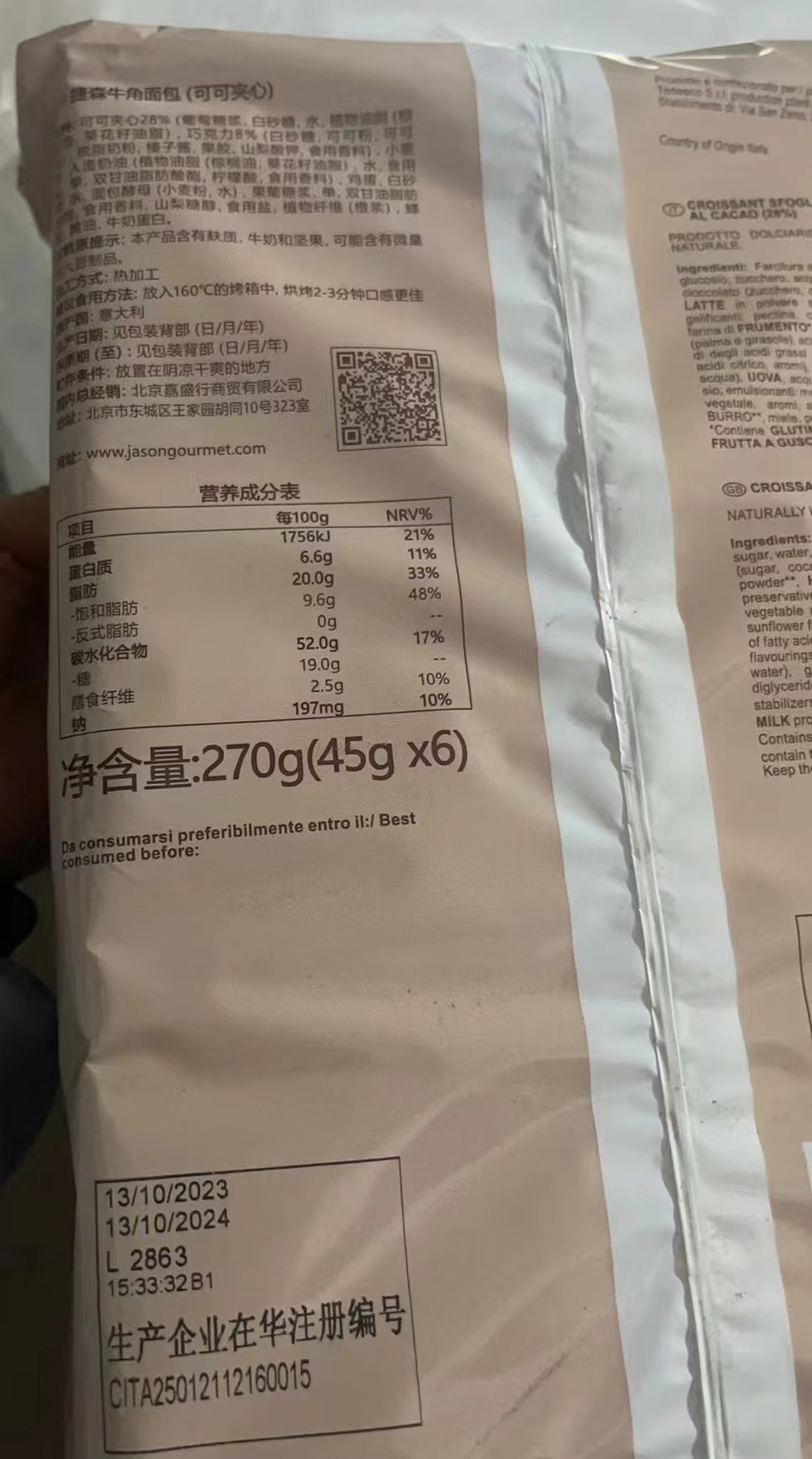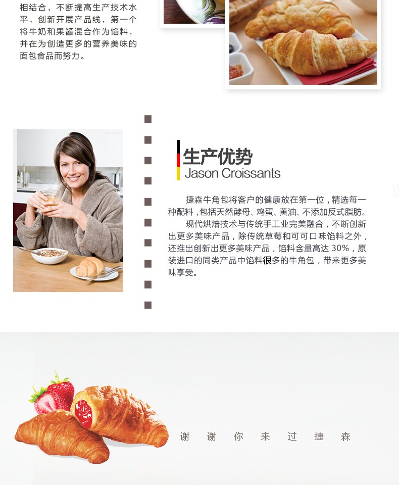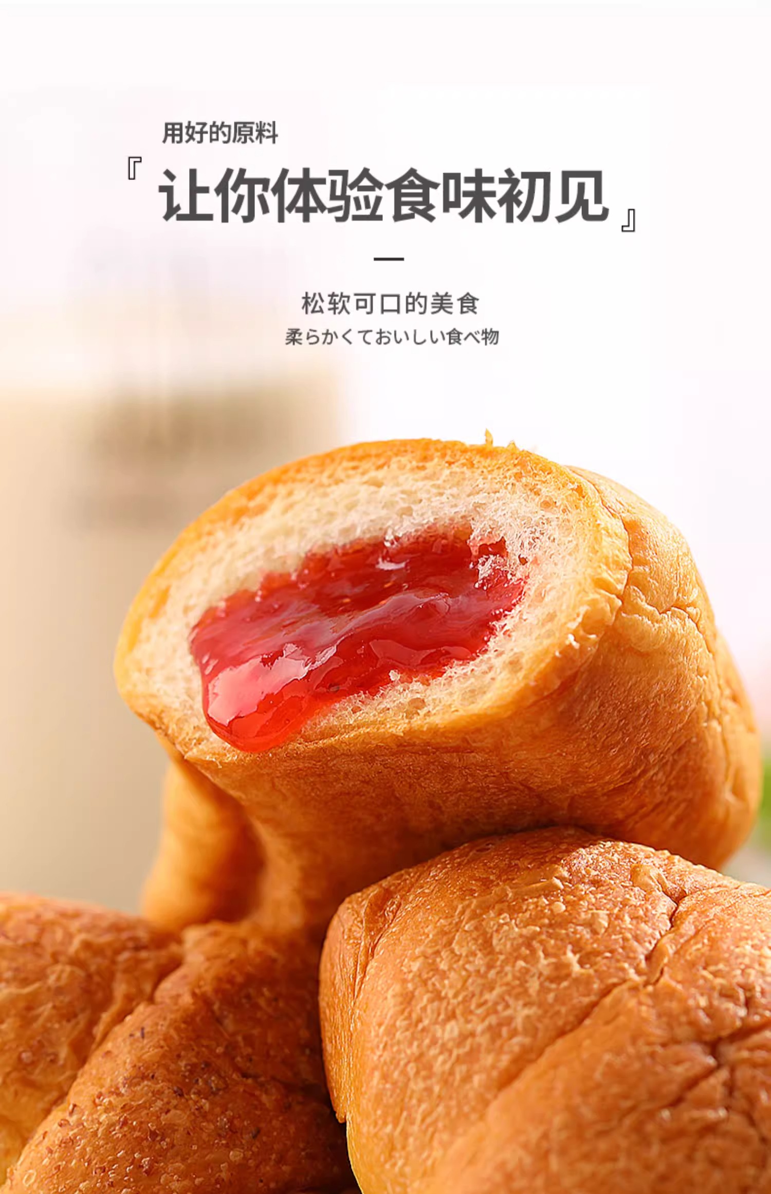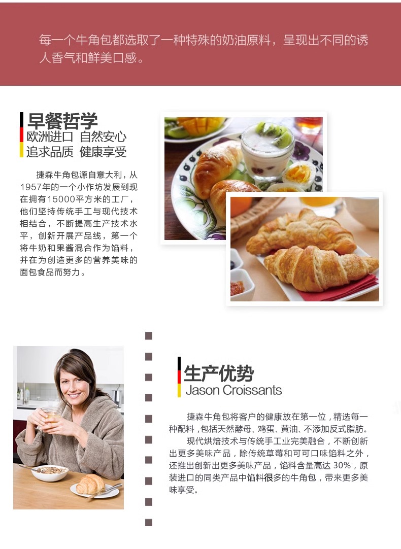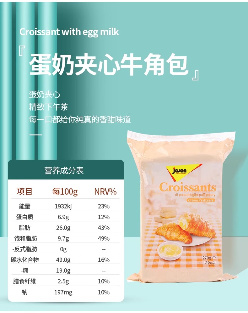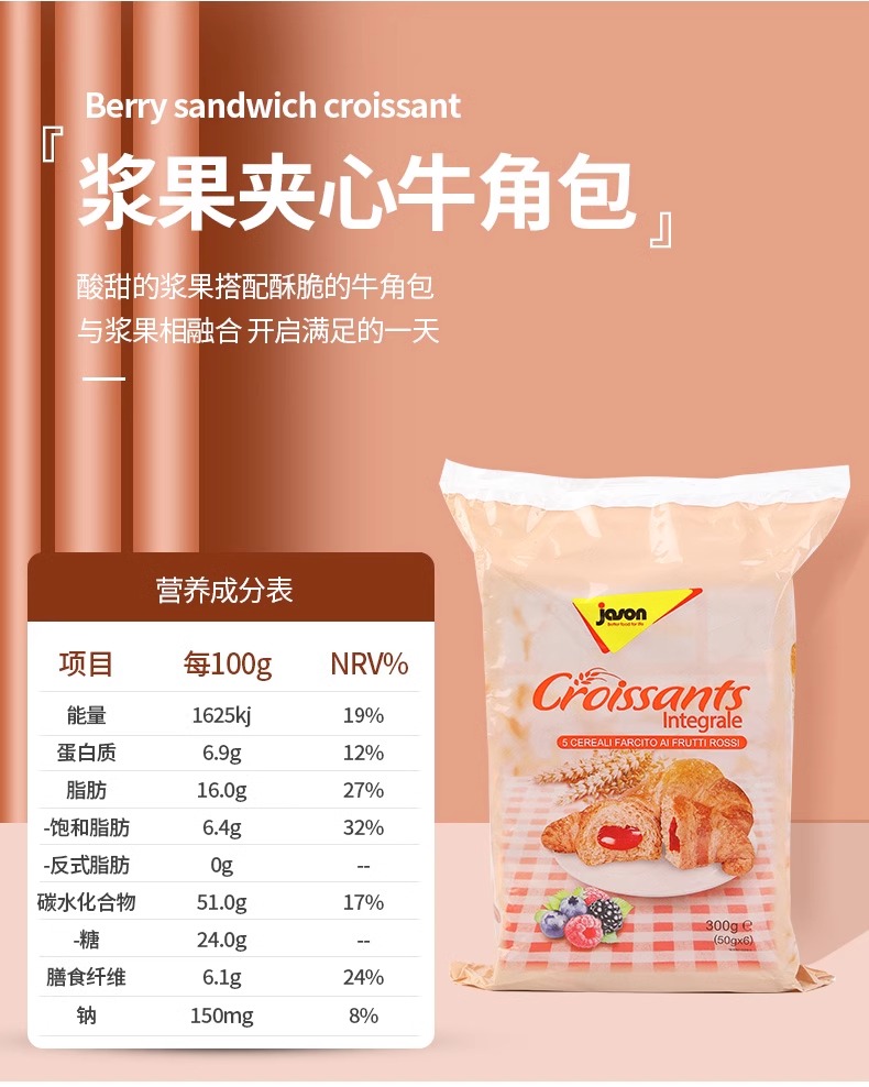 【早餐面包推荐】意大利进口捷森夹心草莓/蛋奶/可可/杏酱夹心牛角面包270g/袋【中欧班列精选】
