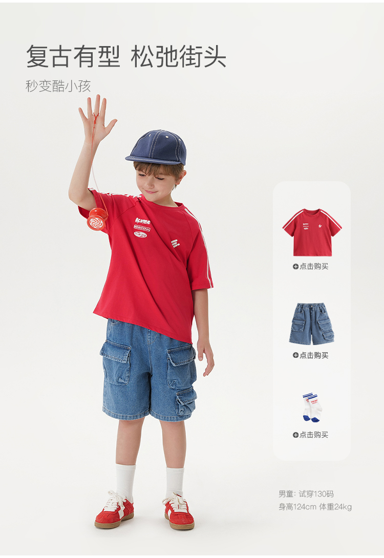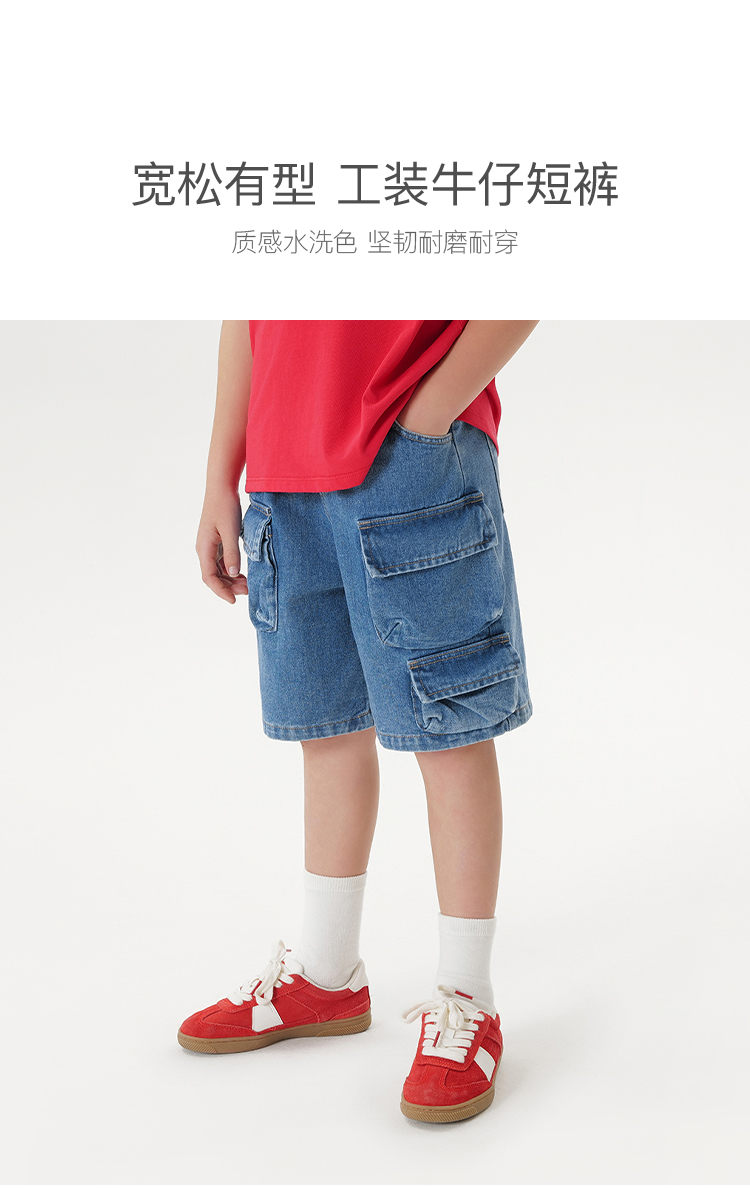 马克珍妮男童时尚工装牛仔短裤儿童宽松裤子2025年夏季新款550637