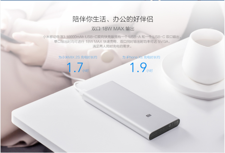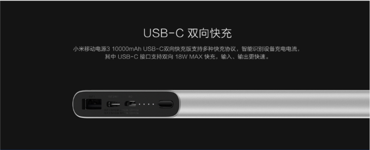 小米移动电源3 10000mAh USB-C双向快充版 银色
