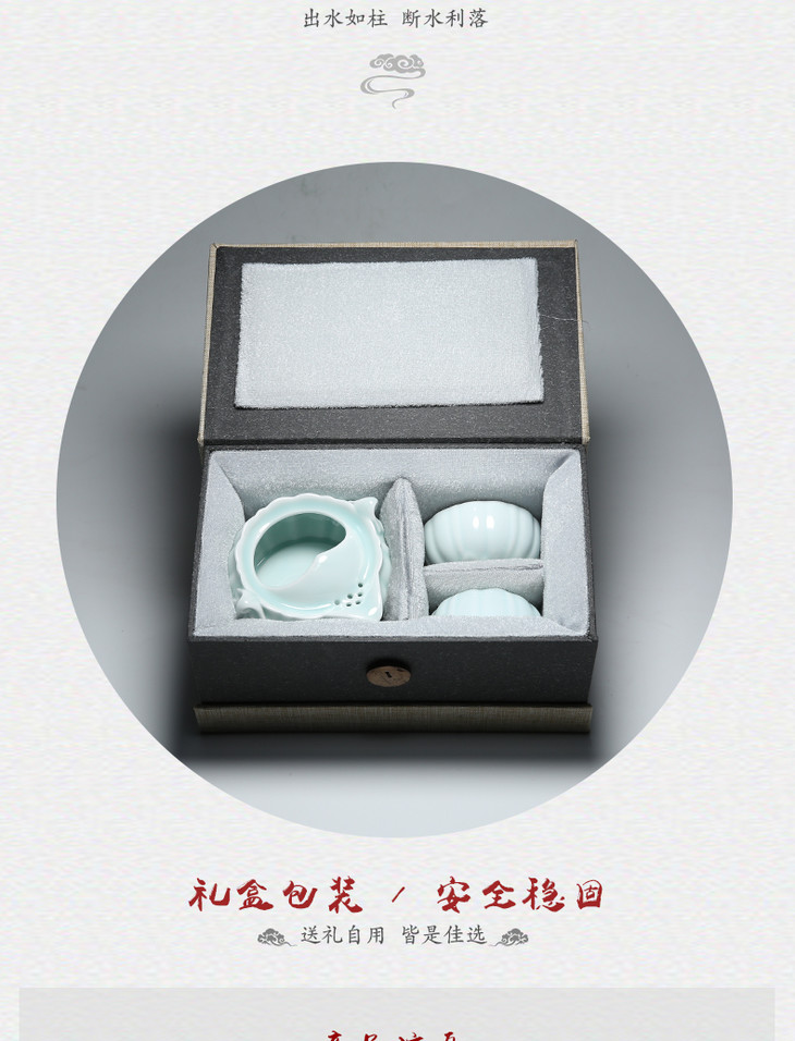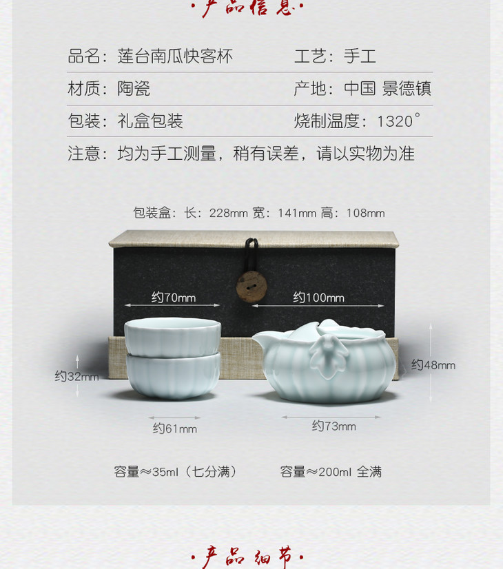 影青瓷快客杯一壶二杯.莲台南瓜款