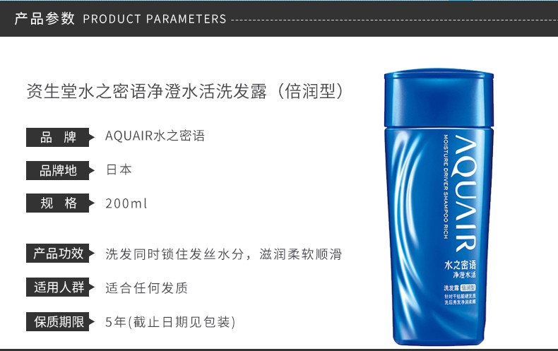 SHISEIDO/资生堂 水之密语净澄水活洗发露 (倍润型)200MLJPY带授权招加盟代理