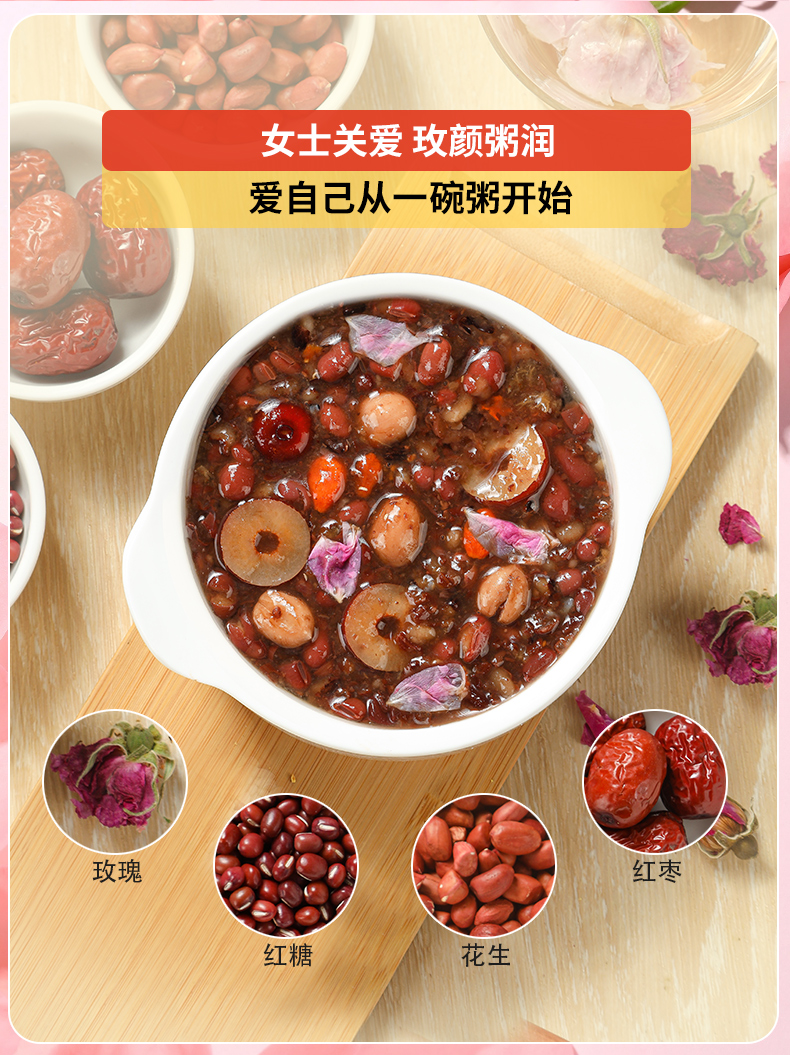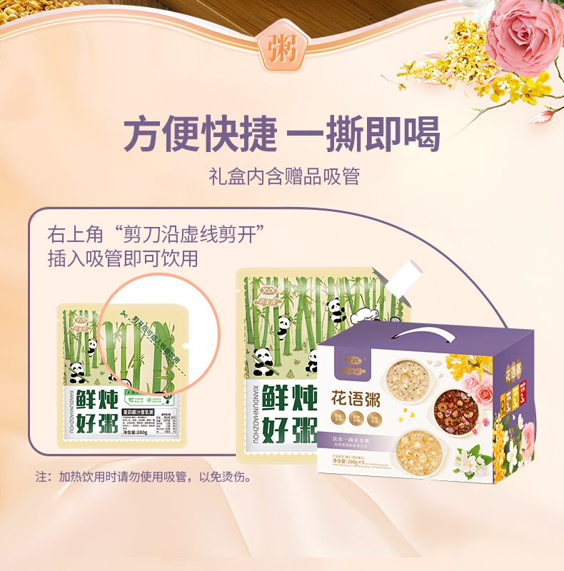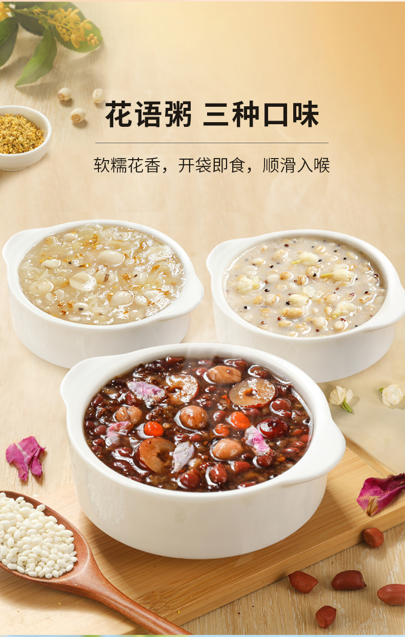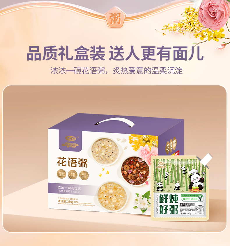 荆门新美香花语粥礼盒装 茉莉椰汁厚乳粥280g*3袋 玫瑰红糖花生粥280g*3袋 桂花薏米银耳粥280g*3袋