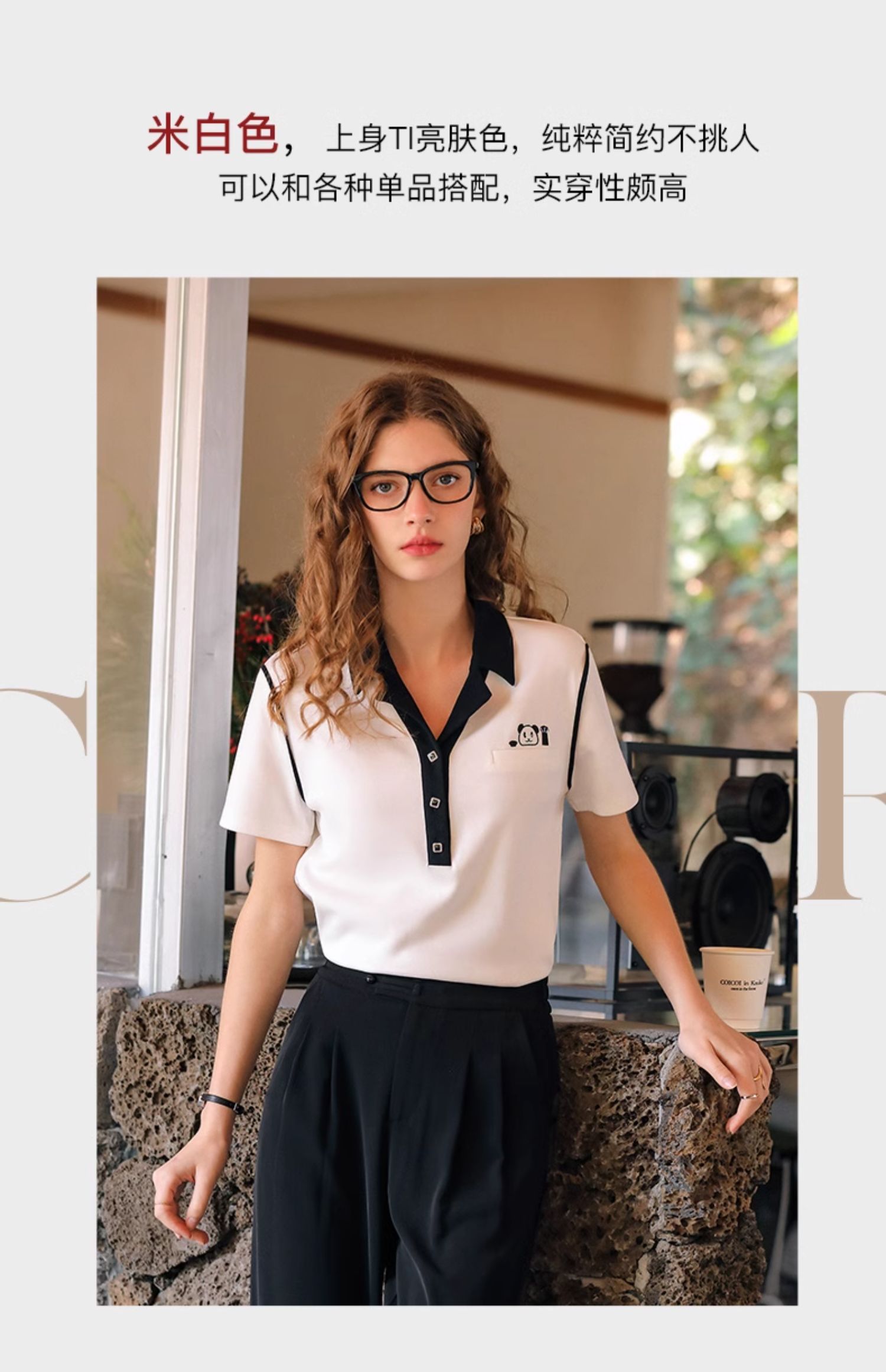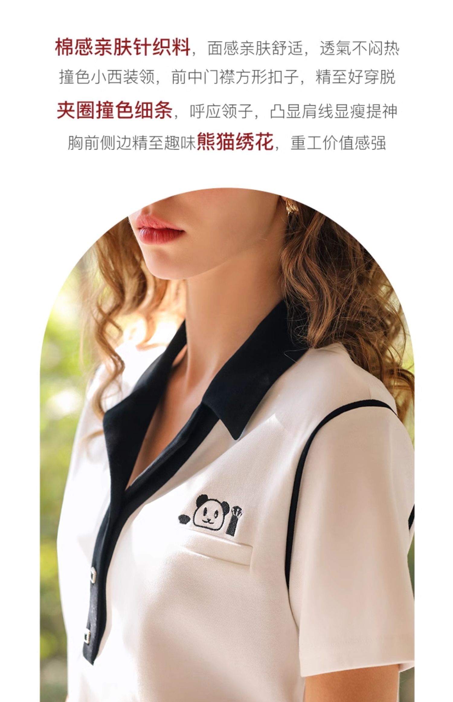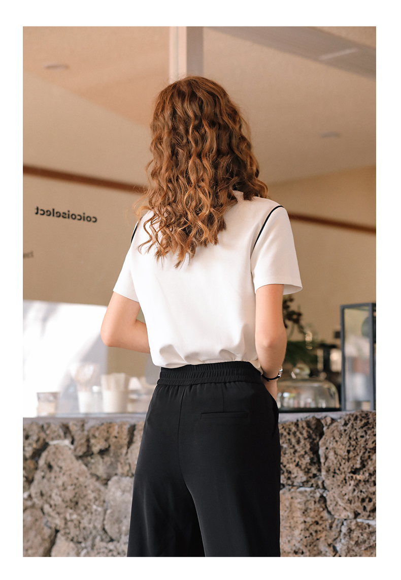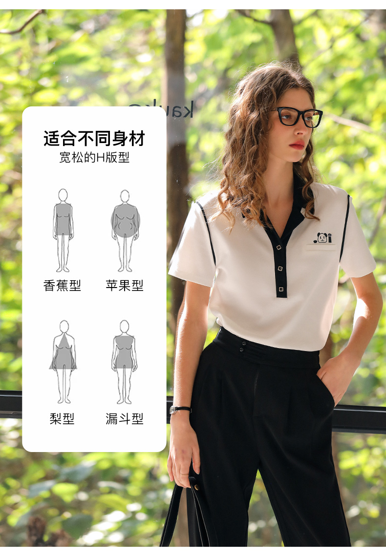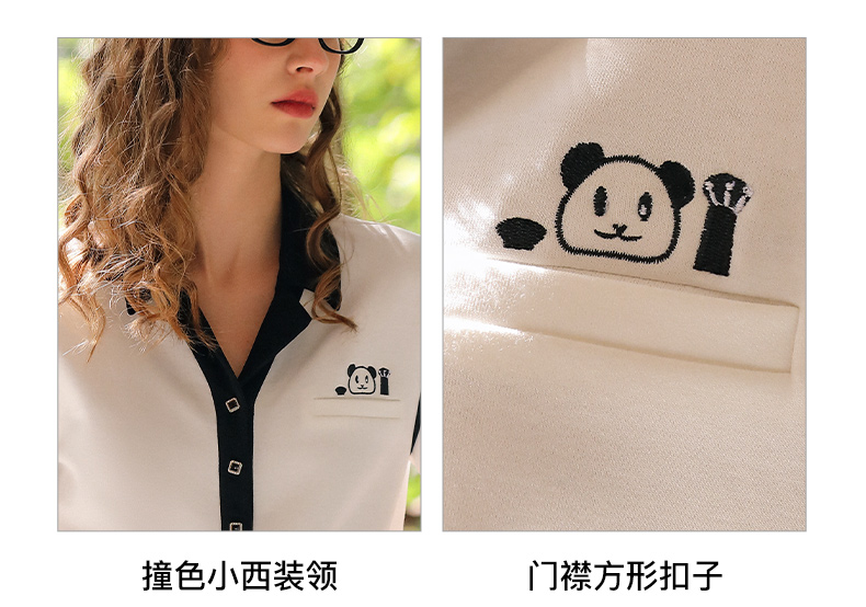 OLrain欧芮儿米白色T恤女早春2024年新款设计感翻领刺绣短袖上衣