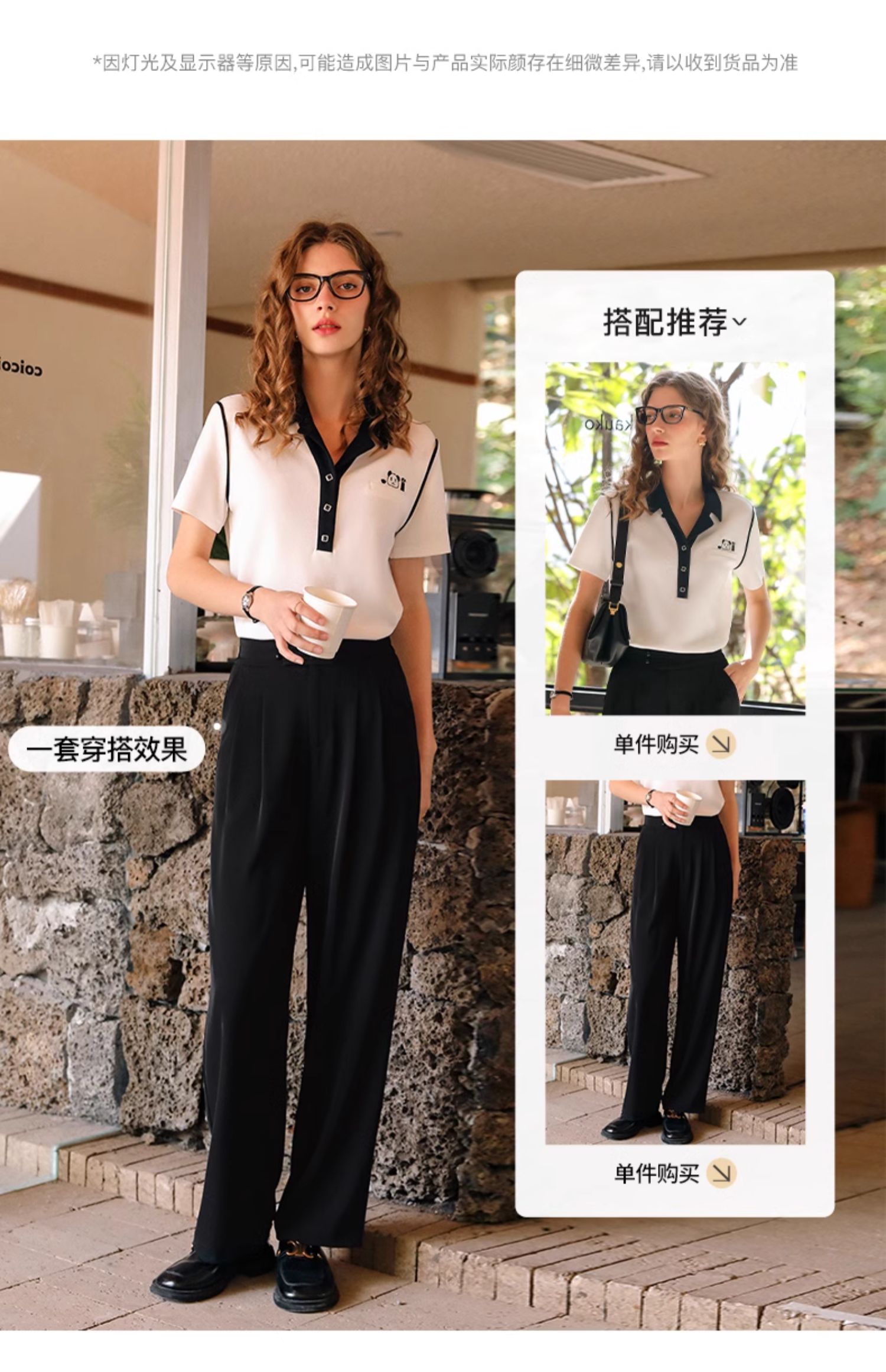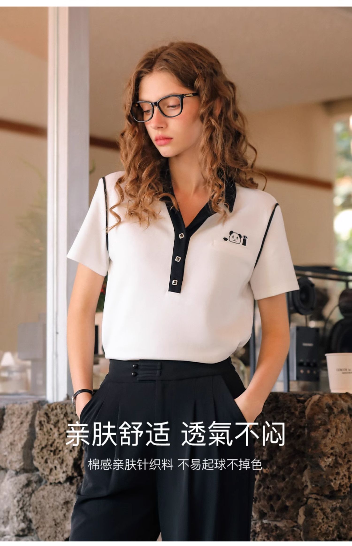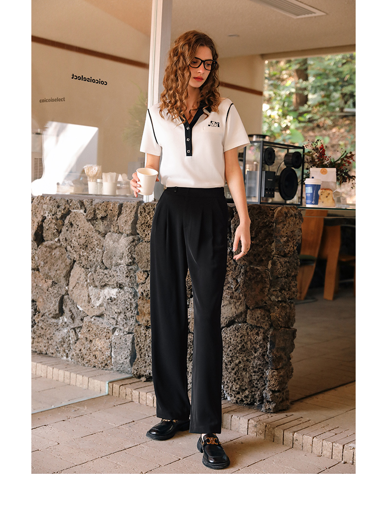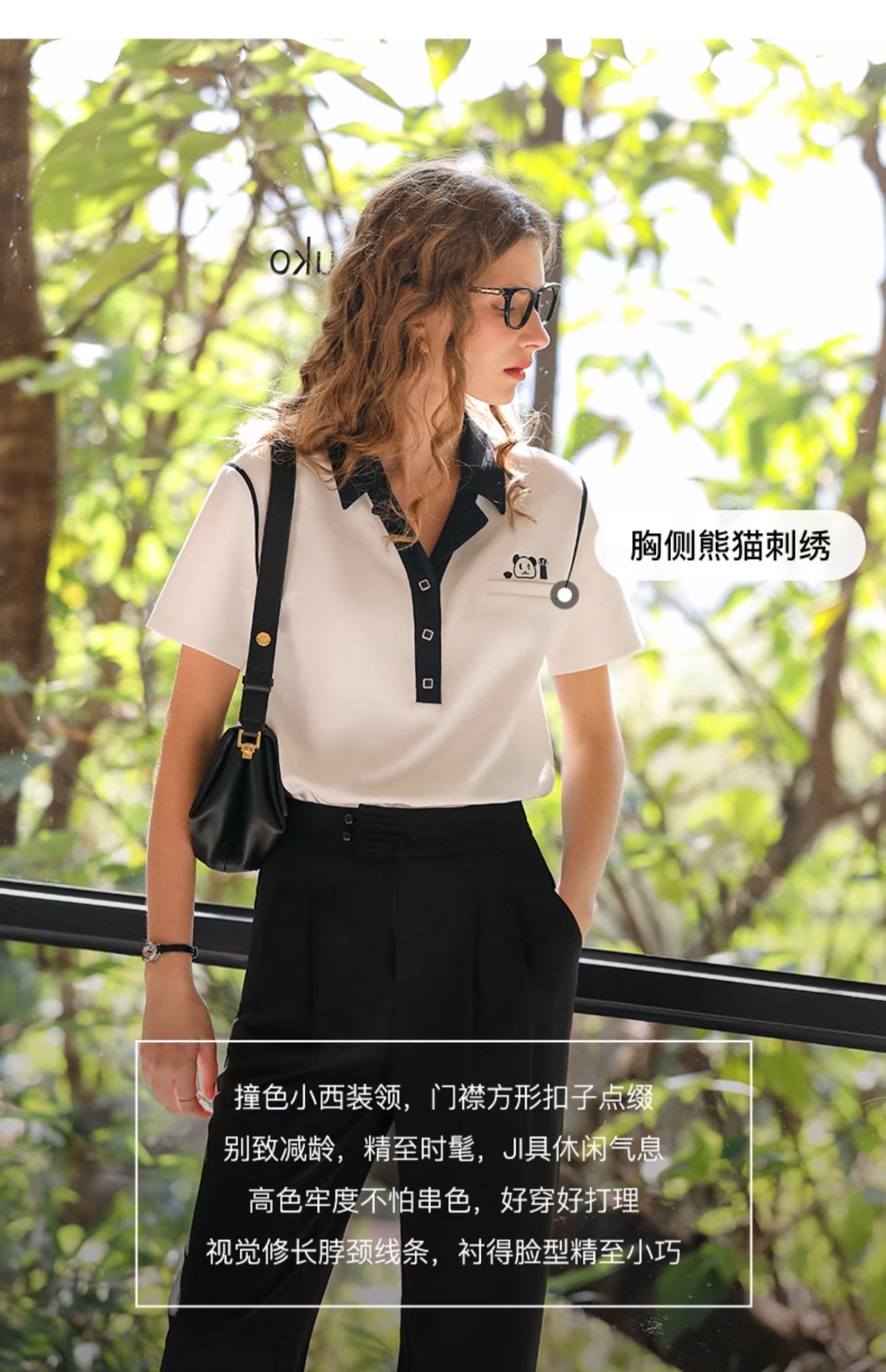 OLrain欧芮儿米白色T恤女早春2024年新款设计感翻领刺绣短袖上衣