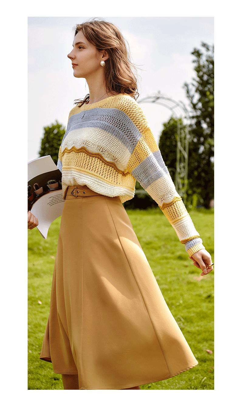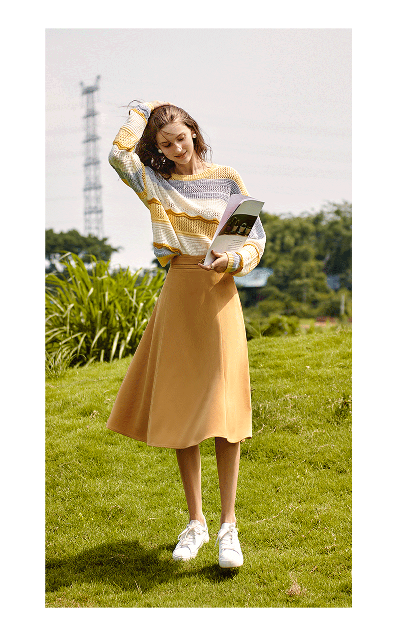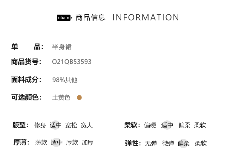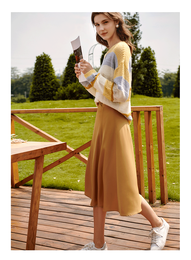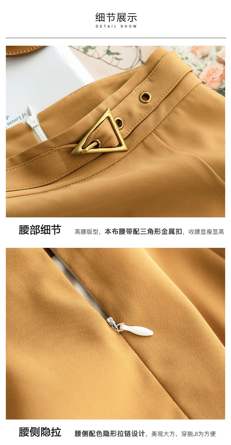 欧芮儿中长款半身裙女春秋2021新款高腰显瘦气质设计感纯色a字裙