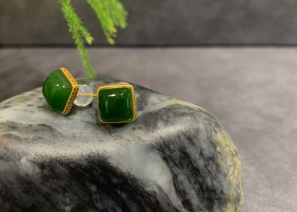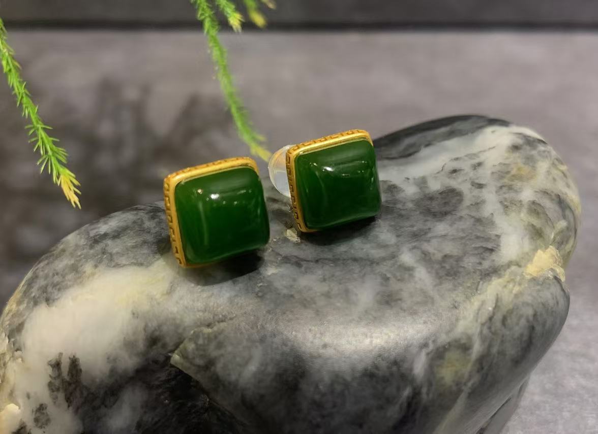 【御珠宫坊】新疆黑羊洞金镶碧玉戒指
