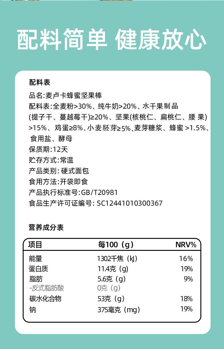 【包邮到家|“网红”麦卢卡蜂蜜坚果棒】纯牛奶和面不加一滴水,黄金12小时低温老面发酵,全麦粉占比配料表1号位,0香精0色素0防腐剂 。扛饿、轻负担,身材管理的小伙伴绝佳代餐面包棒。如风生活特惠