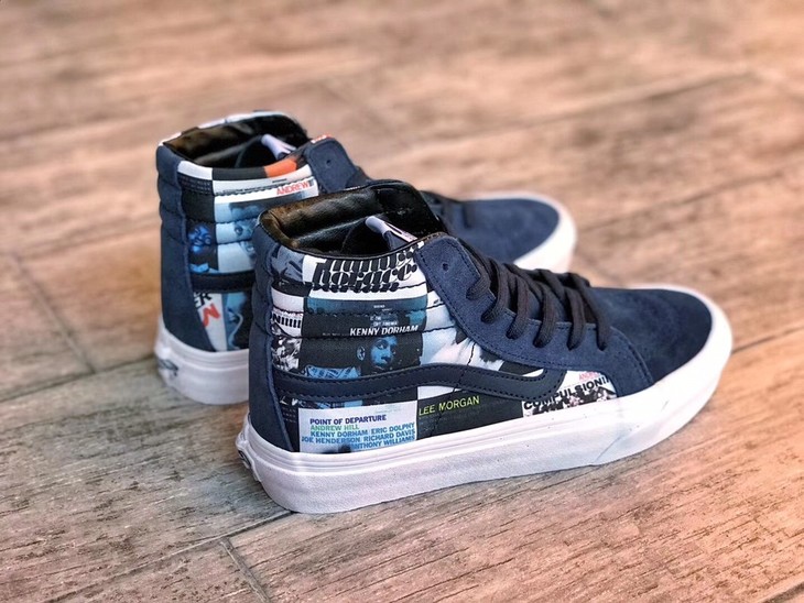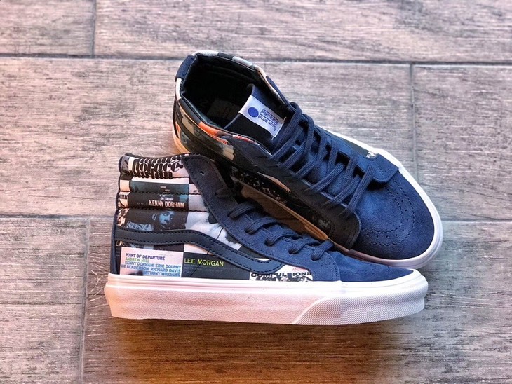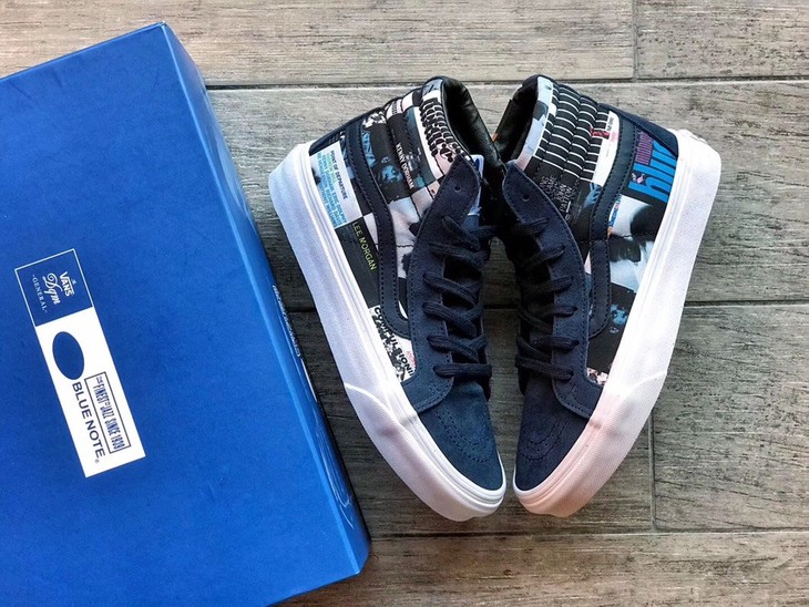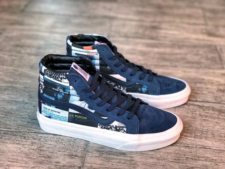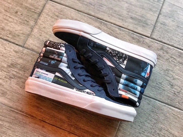 VANSx DQM x Blue Note三方联名限量高帮休闲板鞋VN-0OZEG4X猪巴材质,鞋面图案广州3D打印,原装抽屉鞋盒,真标带半码!硫化真标 1:1 原厂钢印 Size:35--44
