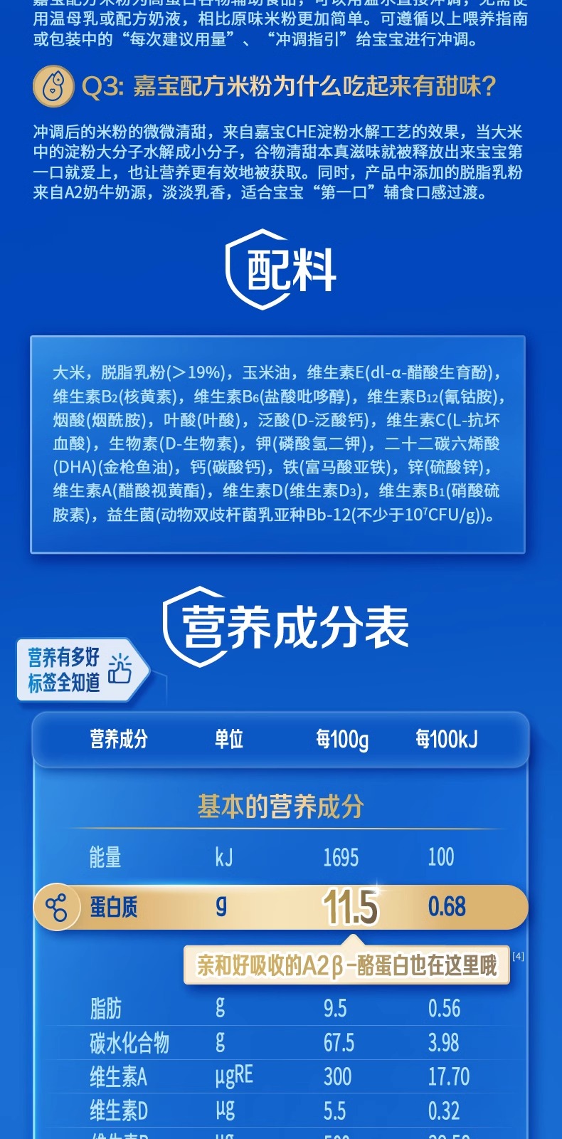 嘉宝专业版A2β-酪蛋白配方米粉250g/JBA-63080
