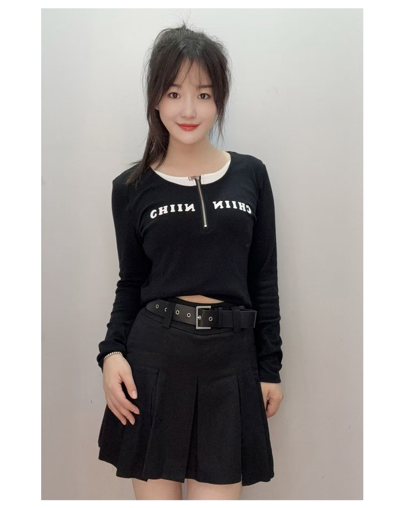 &X设计师女装百褶裙气质显瘦A字小众半身短裙824207697B 黑色