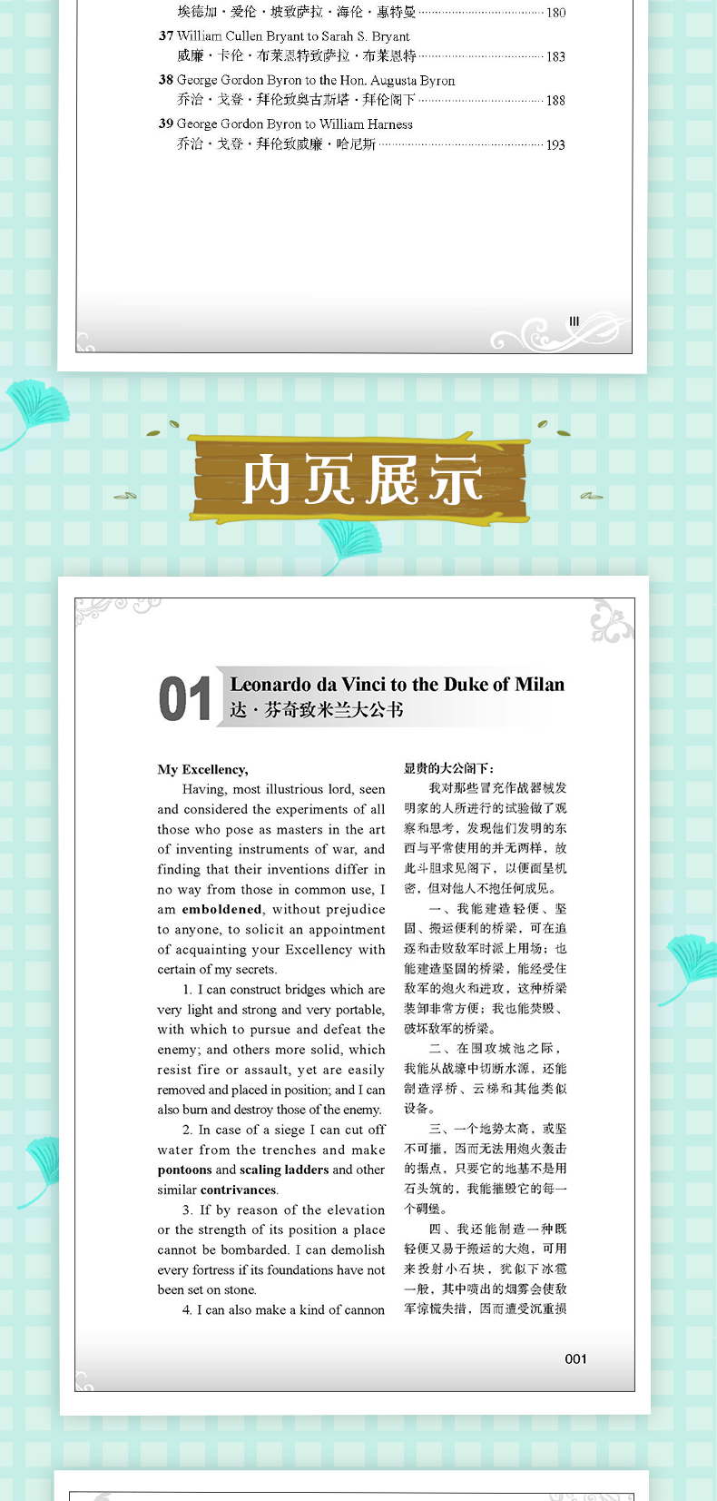 毕昂系列双语读物-名人书信美文每天读点英文英语小故事初中高中生英语读物英语课外阅读书籍英文小说中英对照版英汉互译的书籍