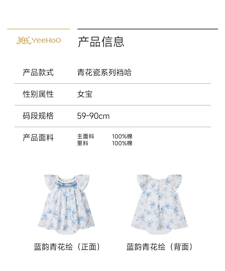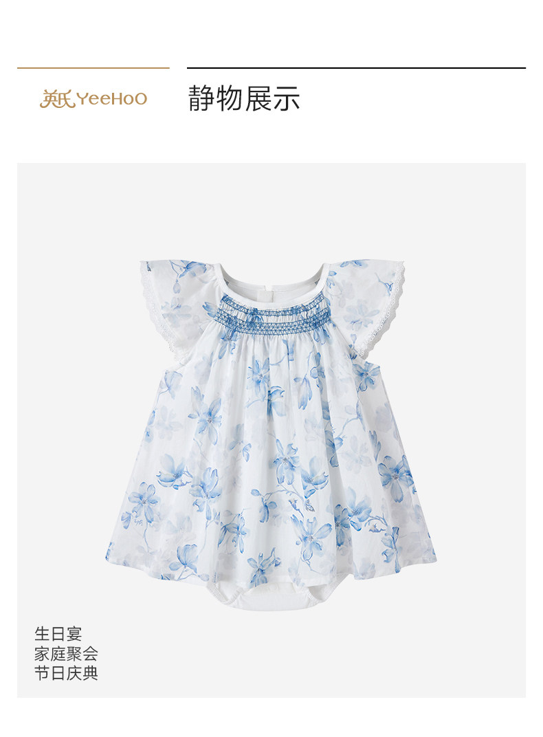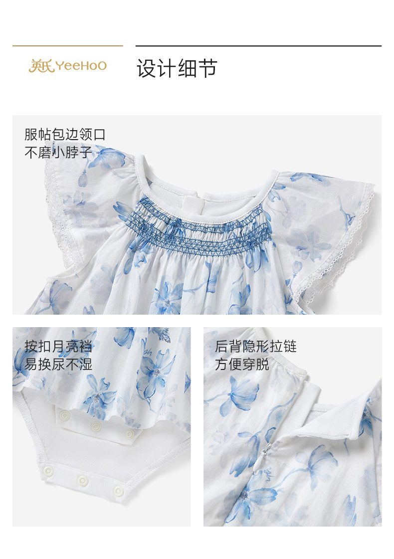 英氏婴儿连体衣女宝宝夏季短袖衣服新款小飞袖哈衣YRHGJ2S018A