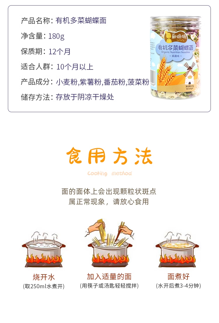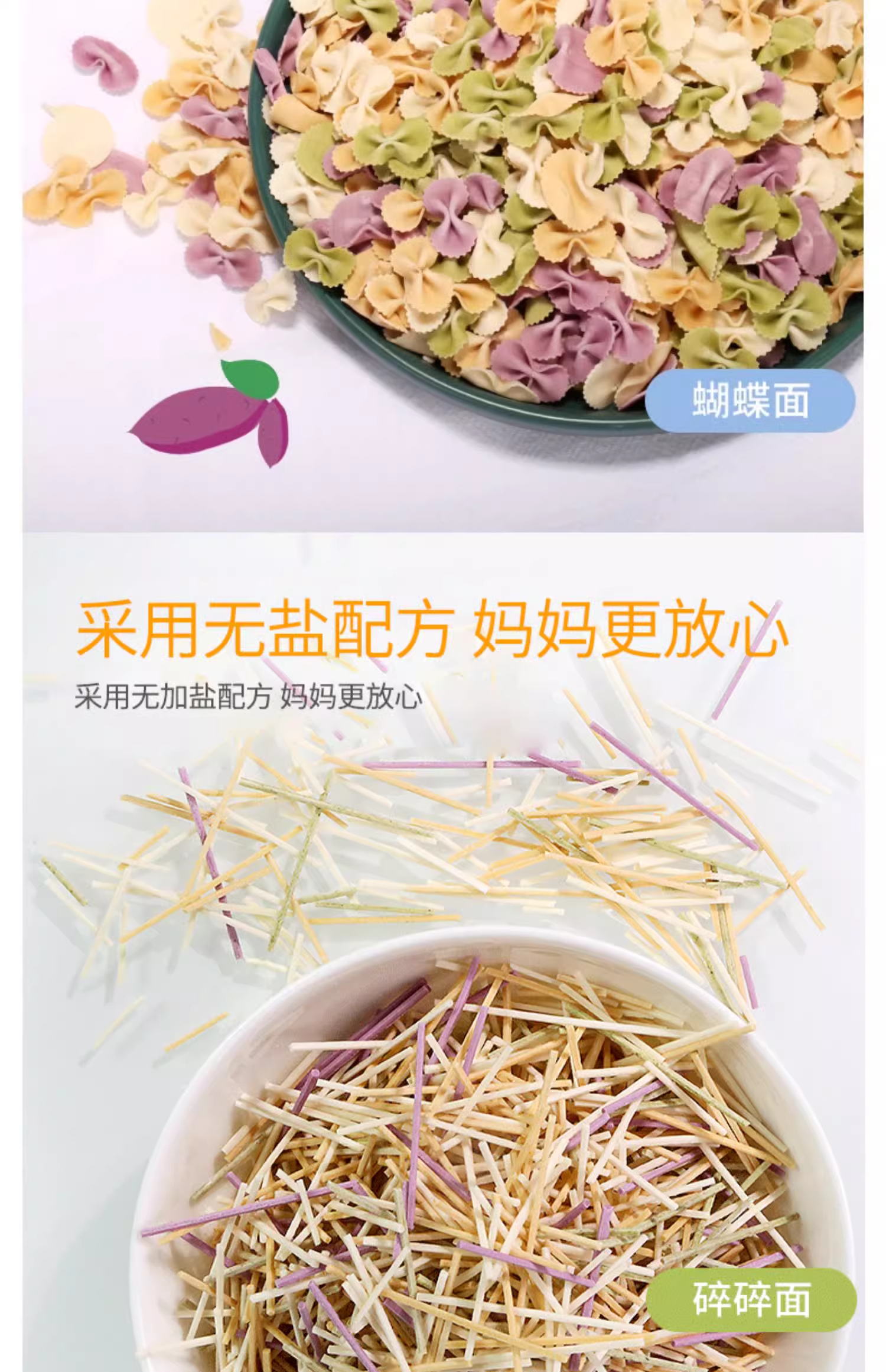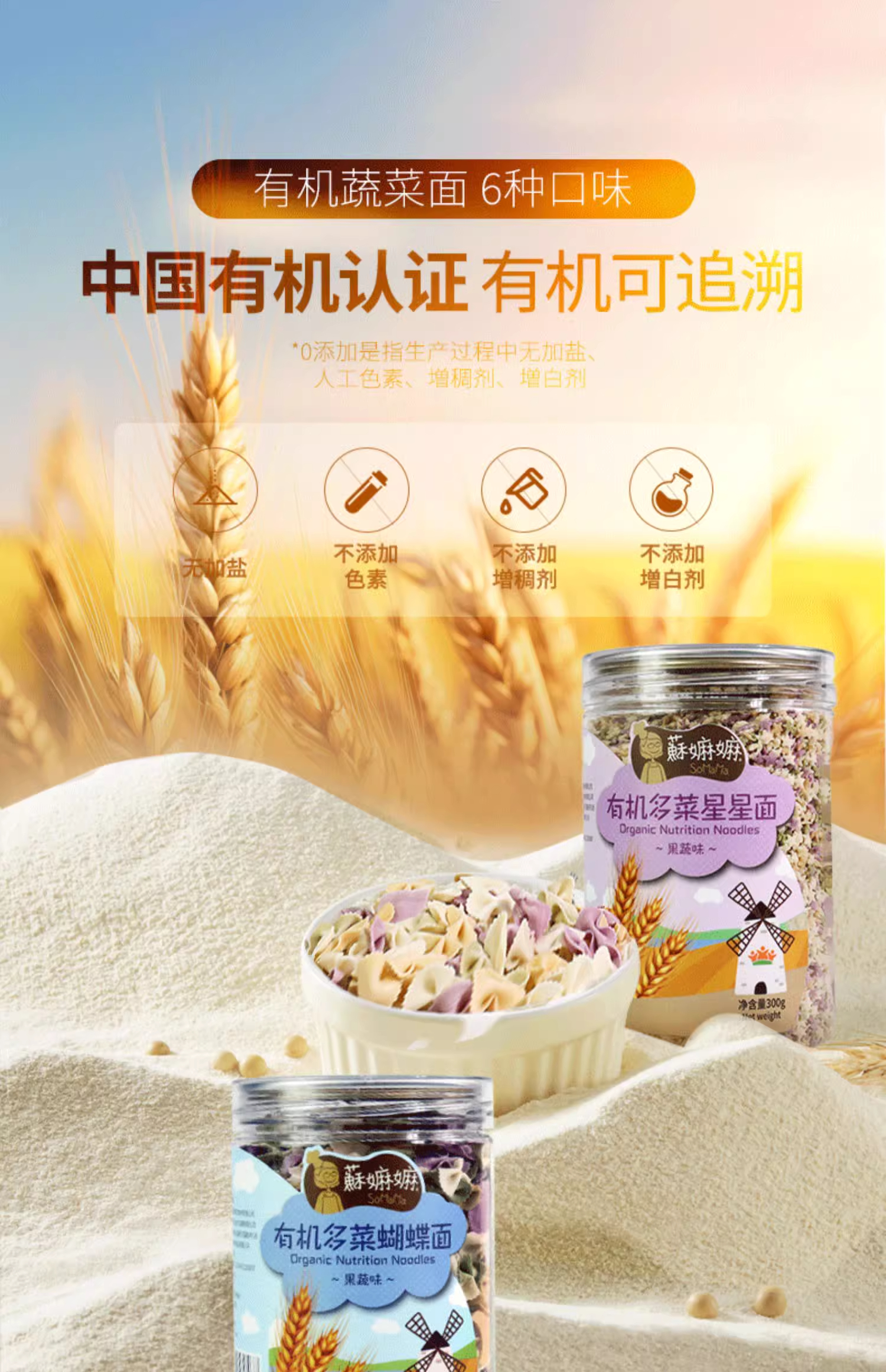 苏嫲嫲宝宝有机营养蔬菜儿童蝴蝶面碎碎粒粒状小麦挂面条无加盐