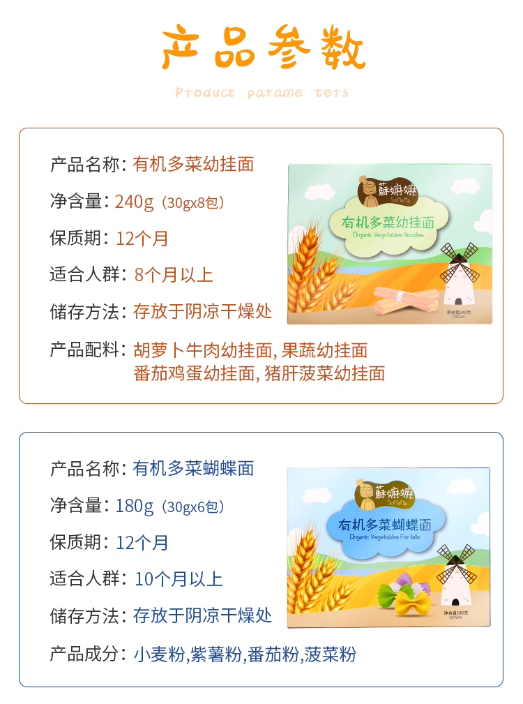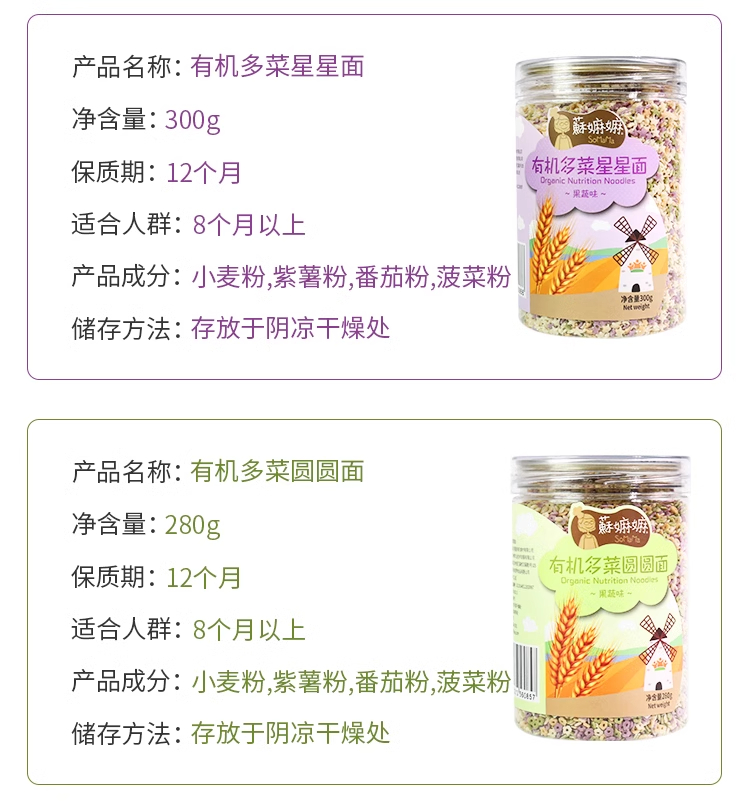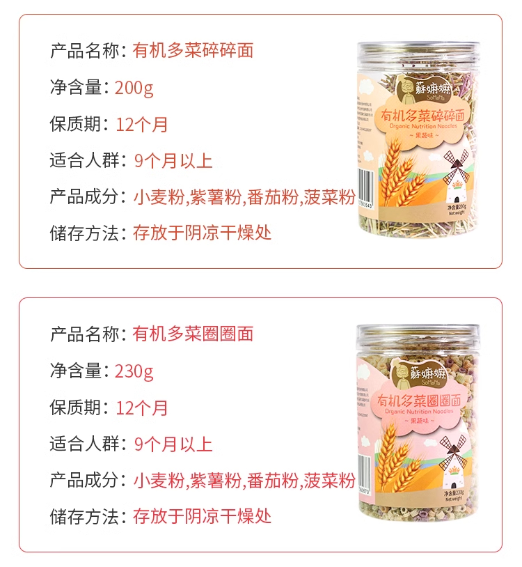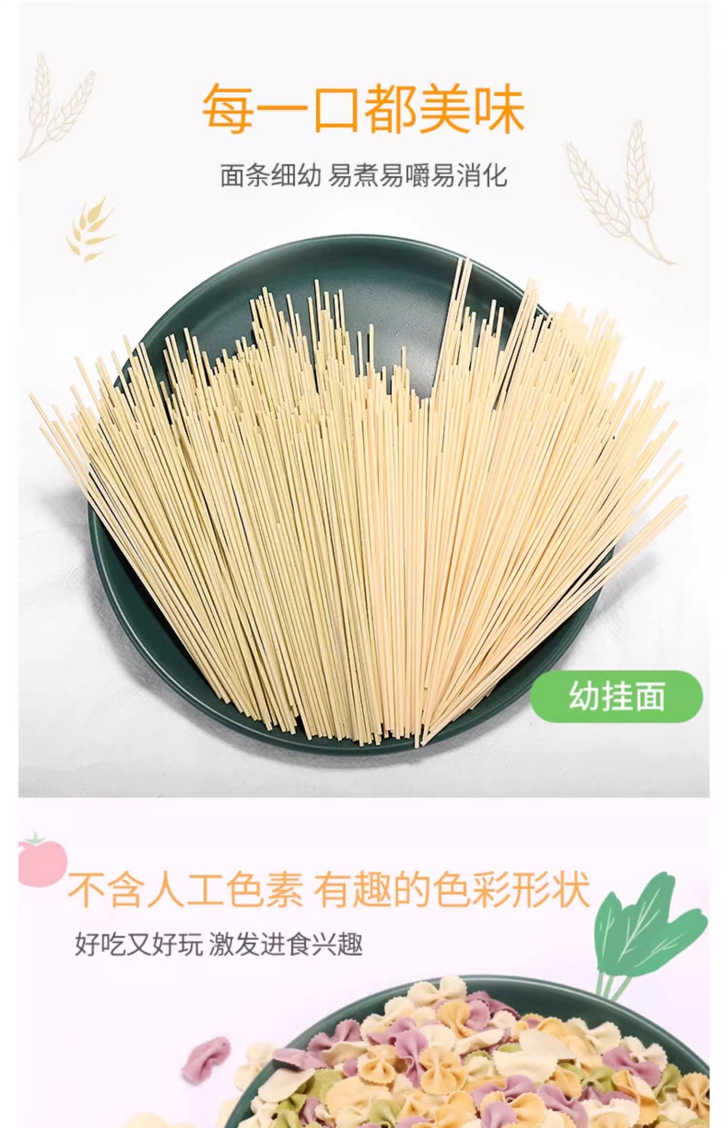 苏嫲嫲宝宝有机营养蔬菜儿童蝴蝶面碎碎粒粒状小麦挂面条无加盐