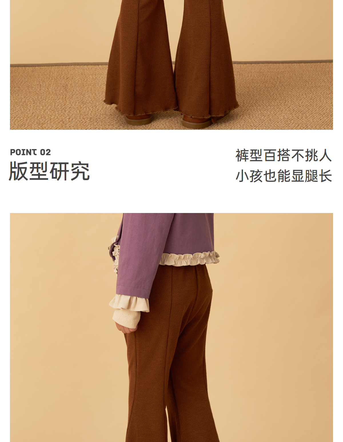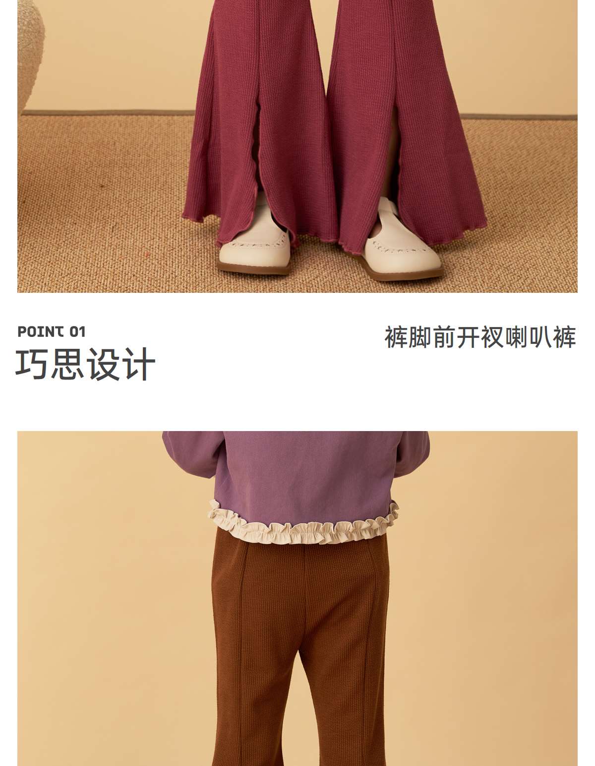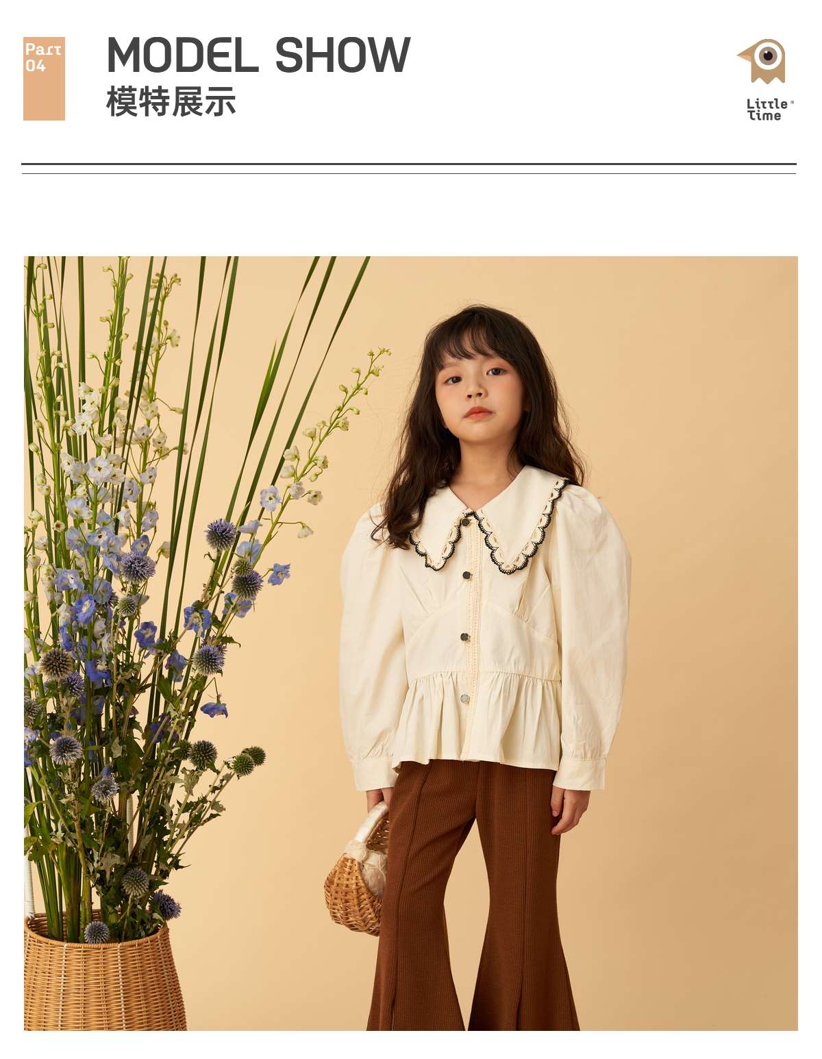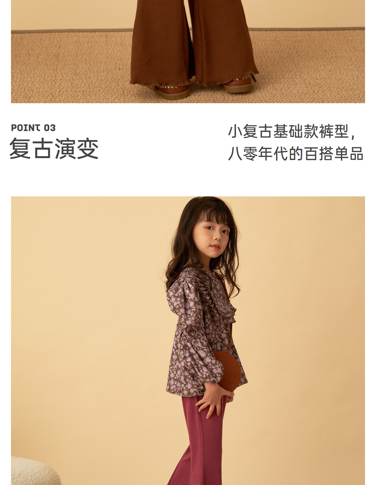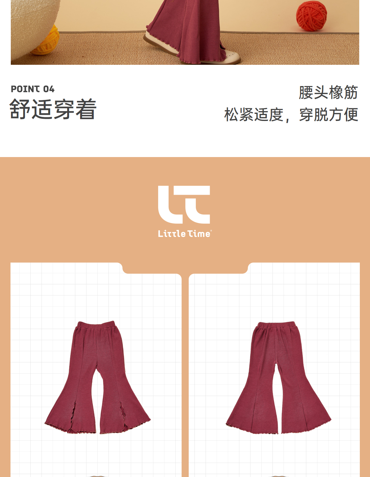 littletime女童休闲裤2022春秋新款薄软女大童喇叭裤森系纯色长裤