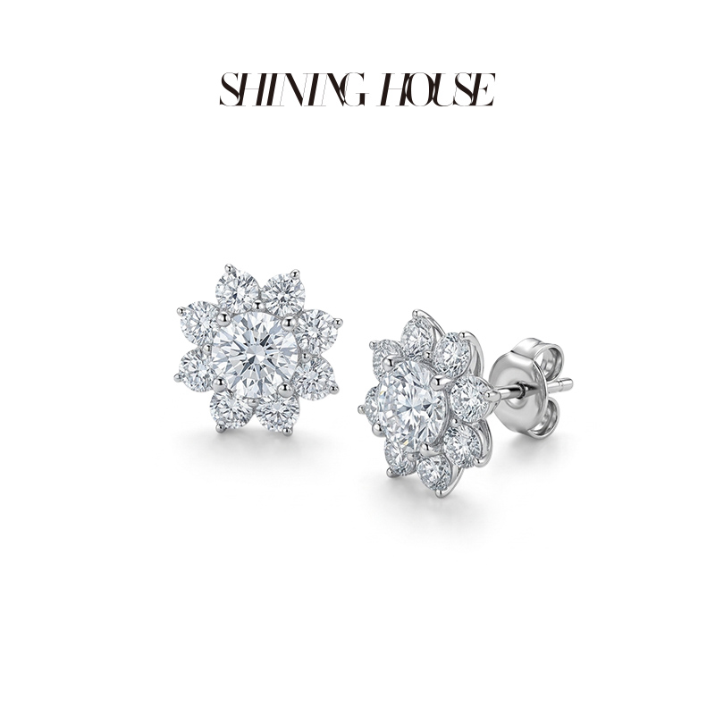 ShiningHouse[培育] 18k金钻石耳饰 圆钻形1克拉钻人工真钻人造钻石K金耳钉简约钻石耳饰耳环悦己送礼臻选【此商品不支持7天无理由退货退款】预计3日发货
