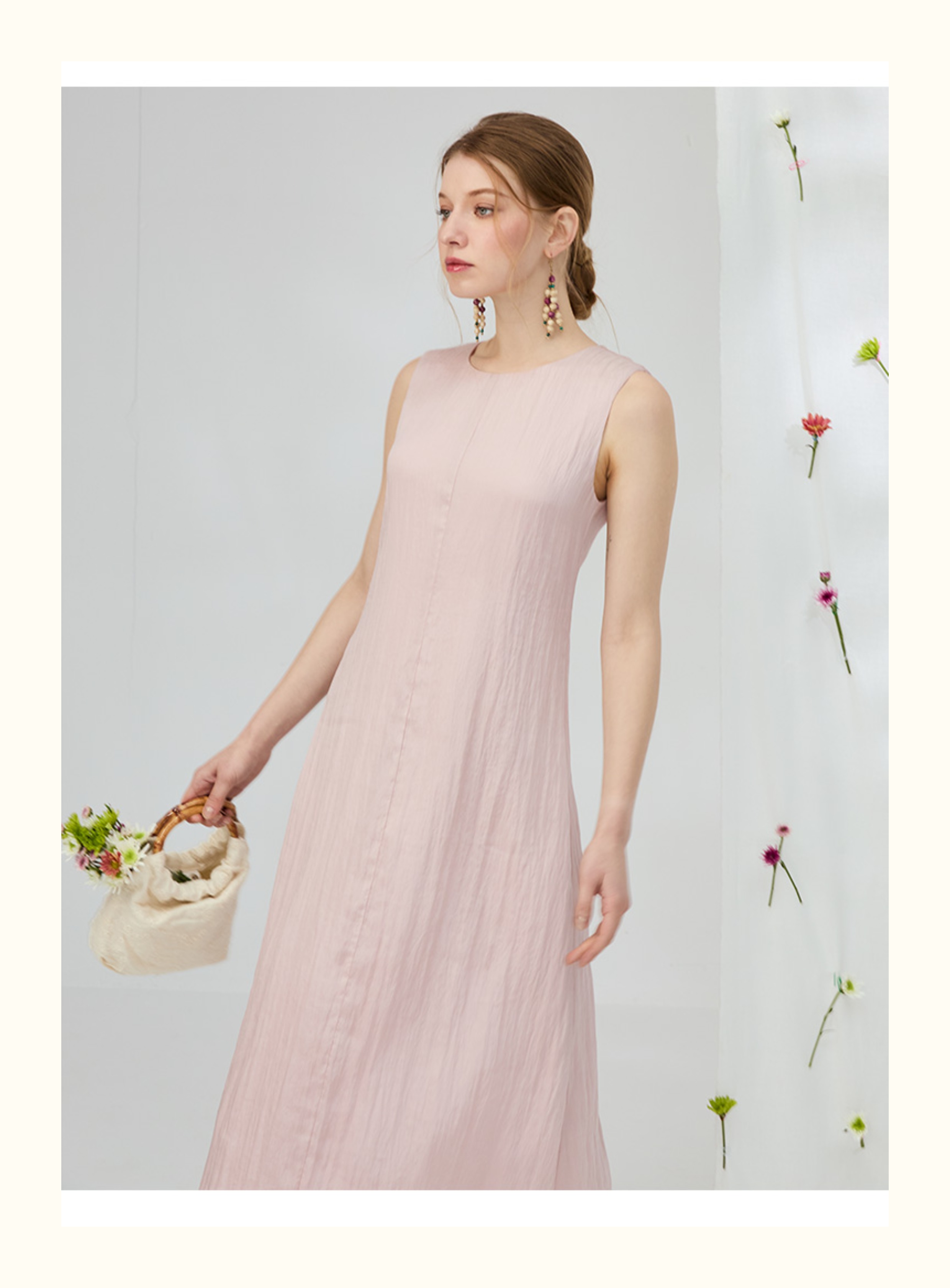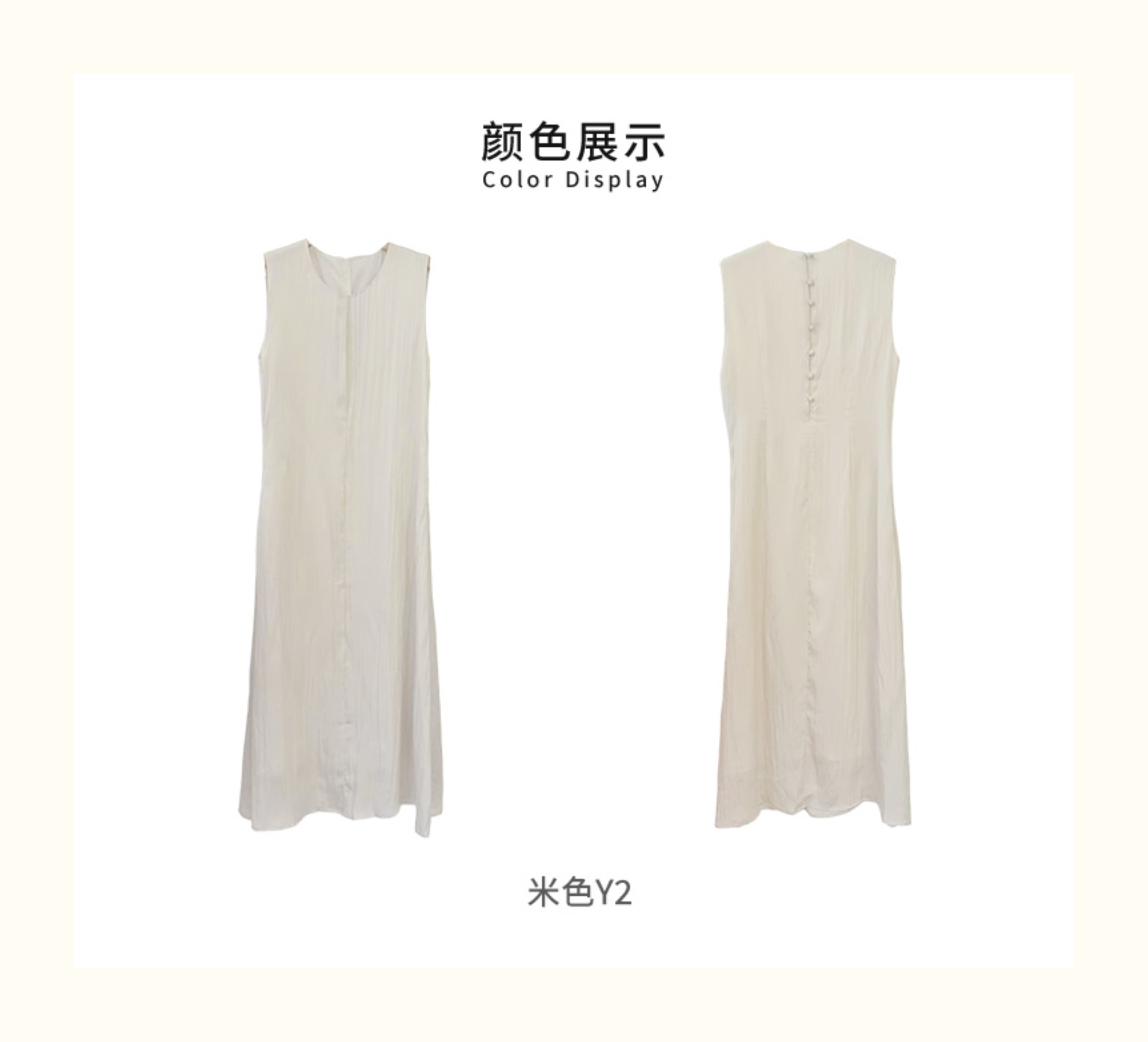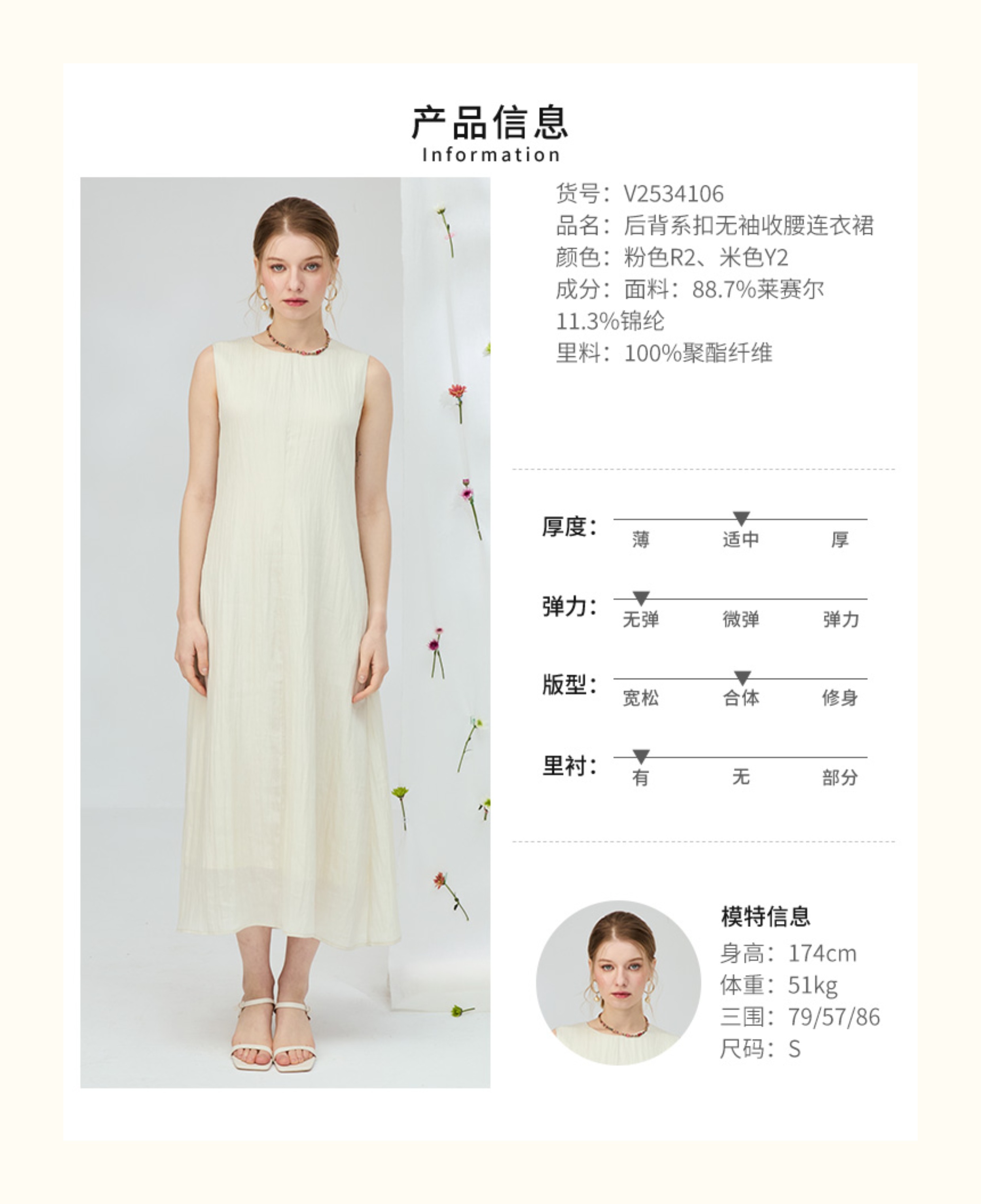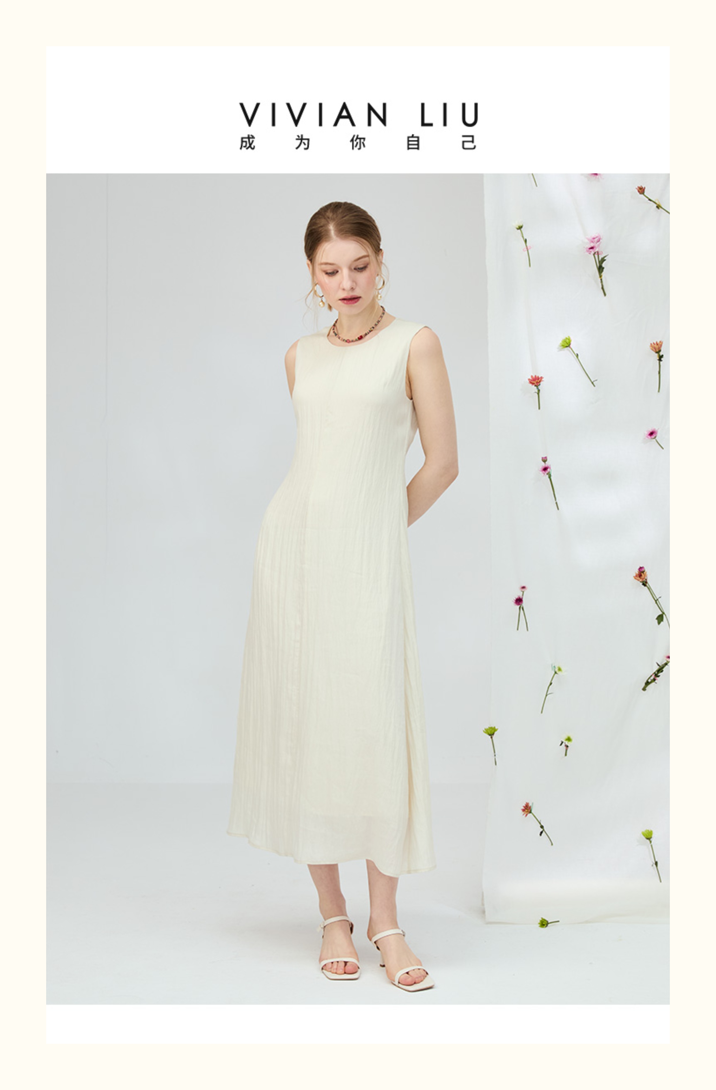 VIVIAN LIU V2534106 夏季新款圆领后背系扣无袖收腰优雅连衣裙