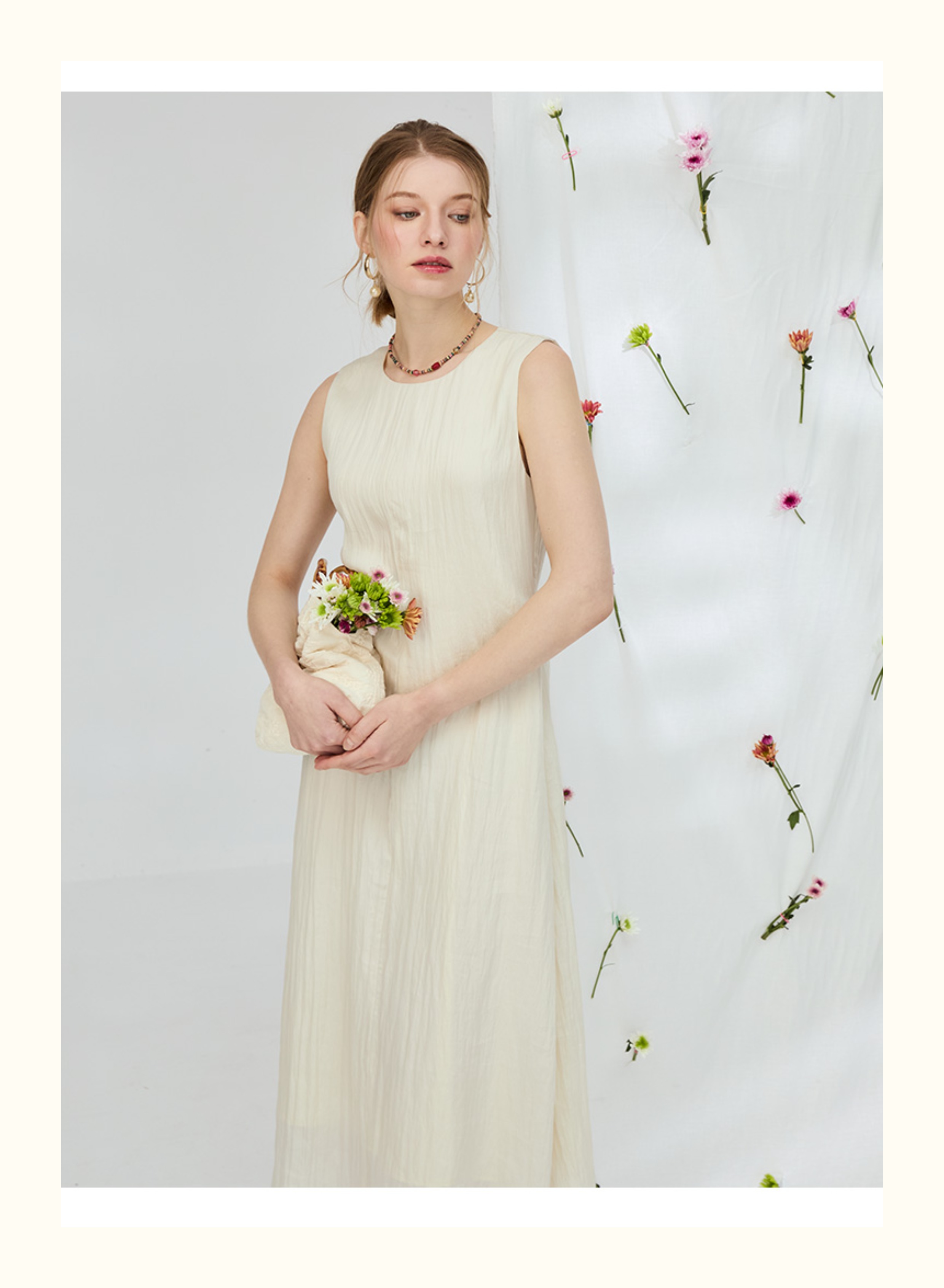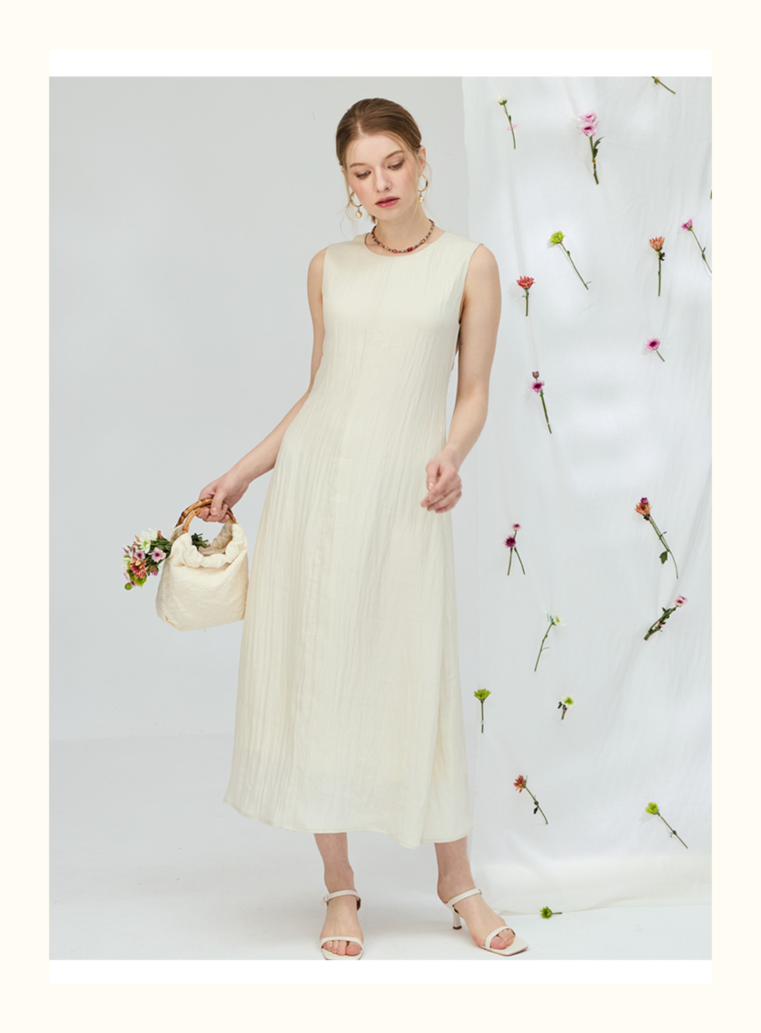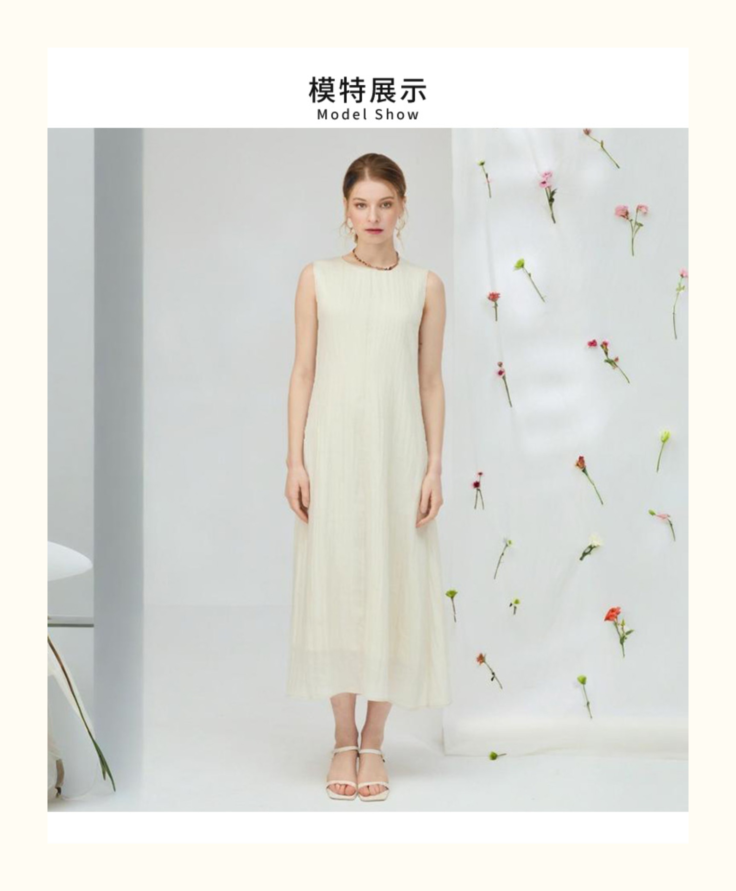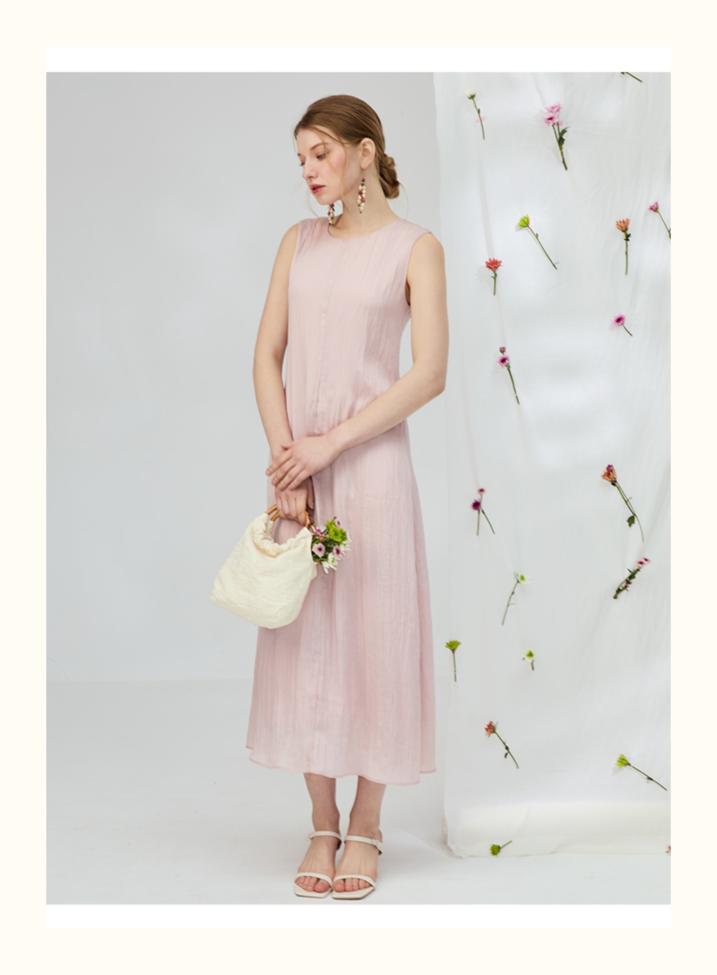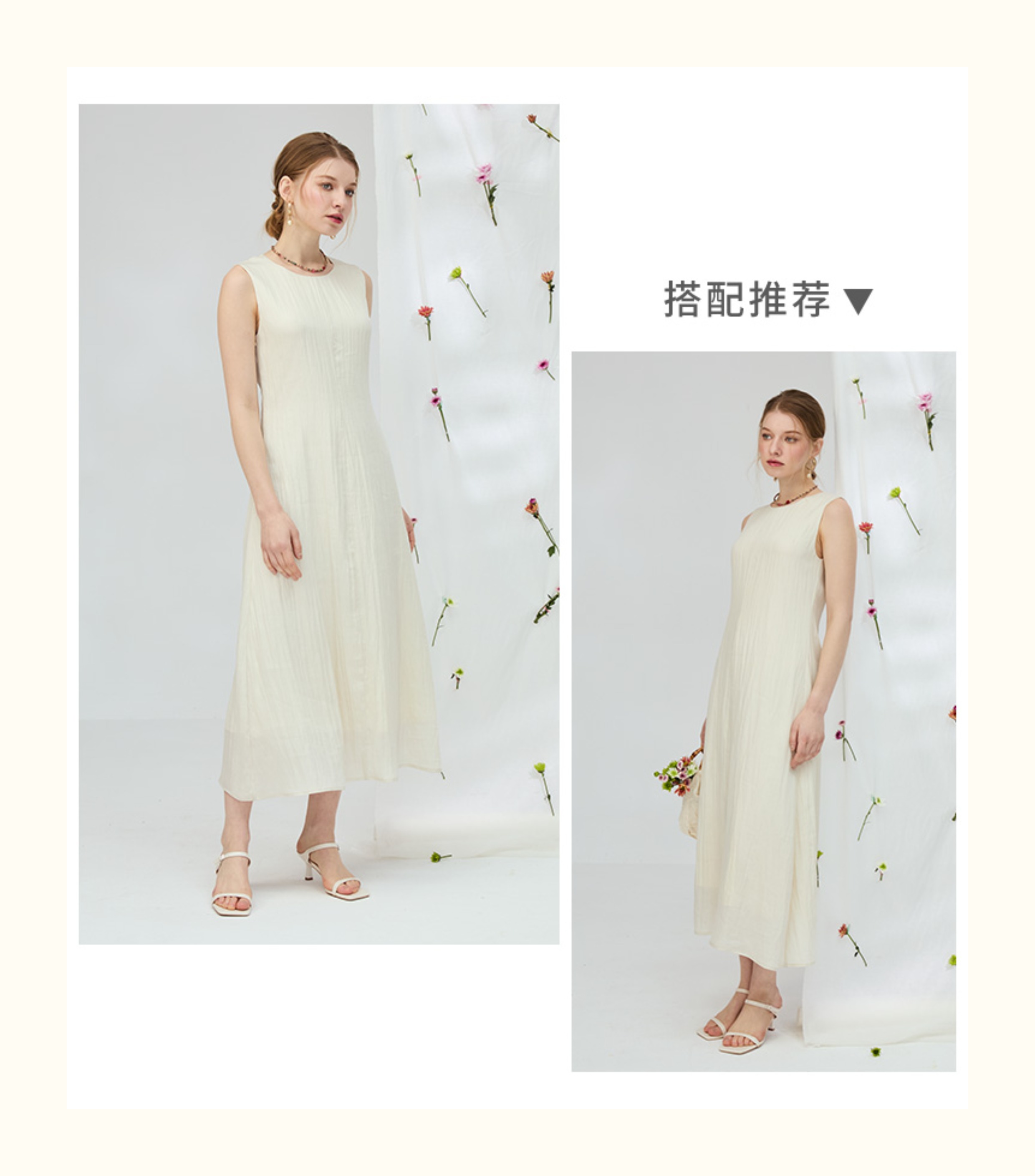 VIVIAN LIU V2534106 夏季新款圆领后背系扣无袖收腰优雅连衣裙
