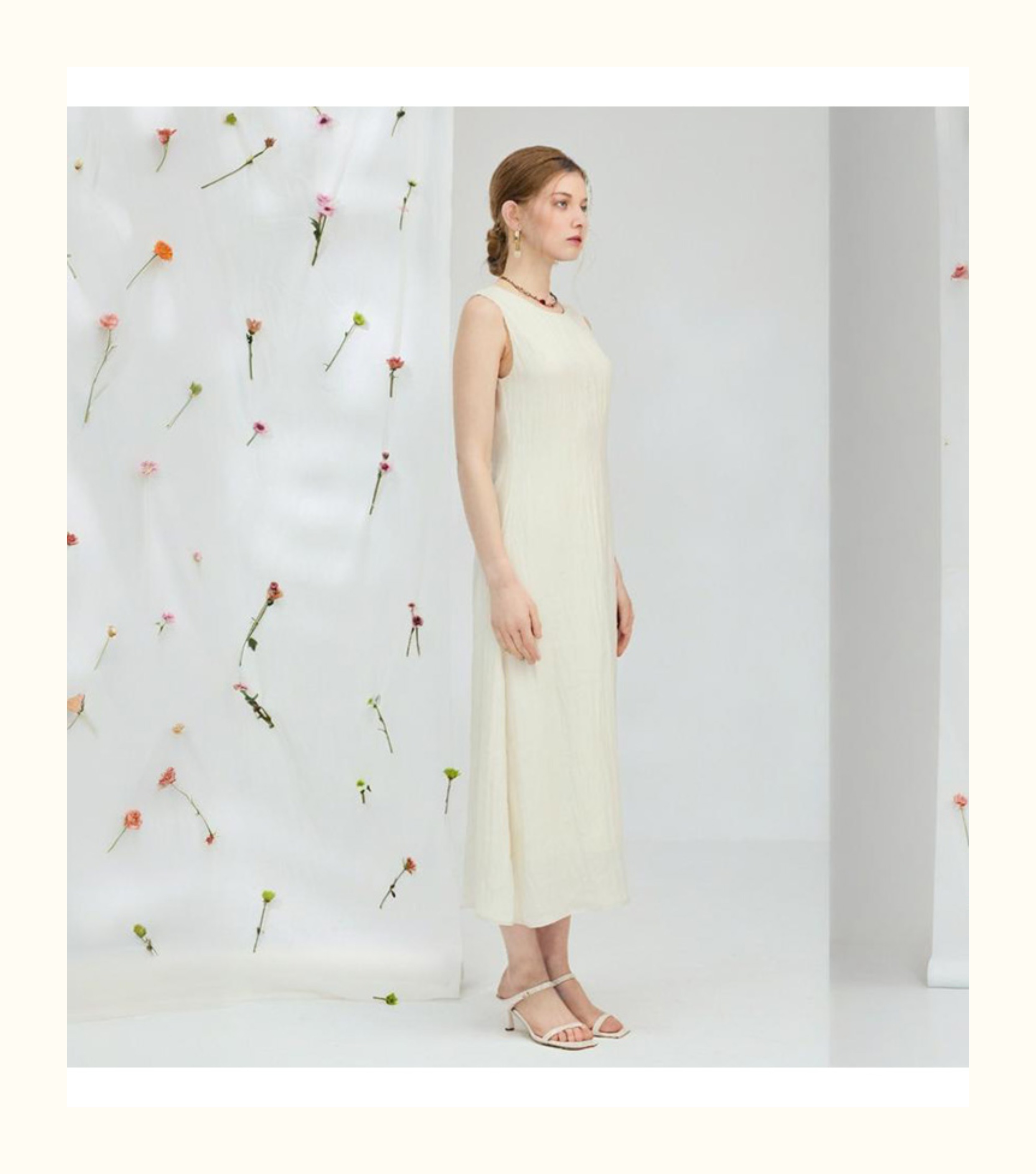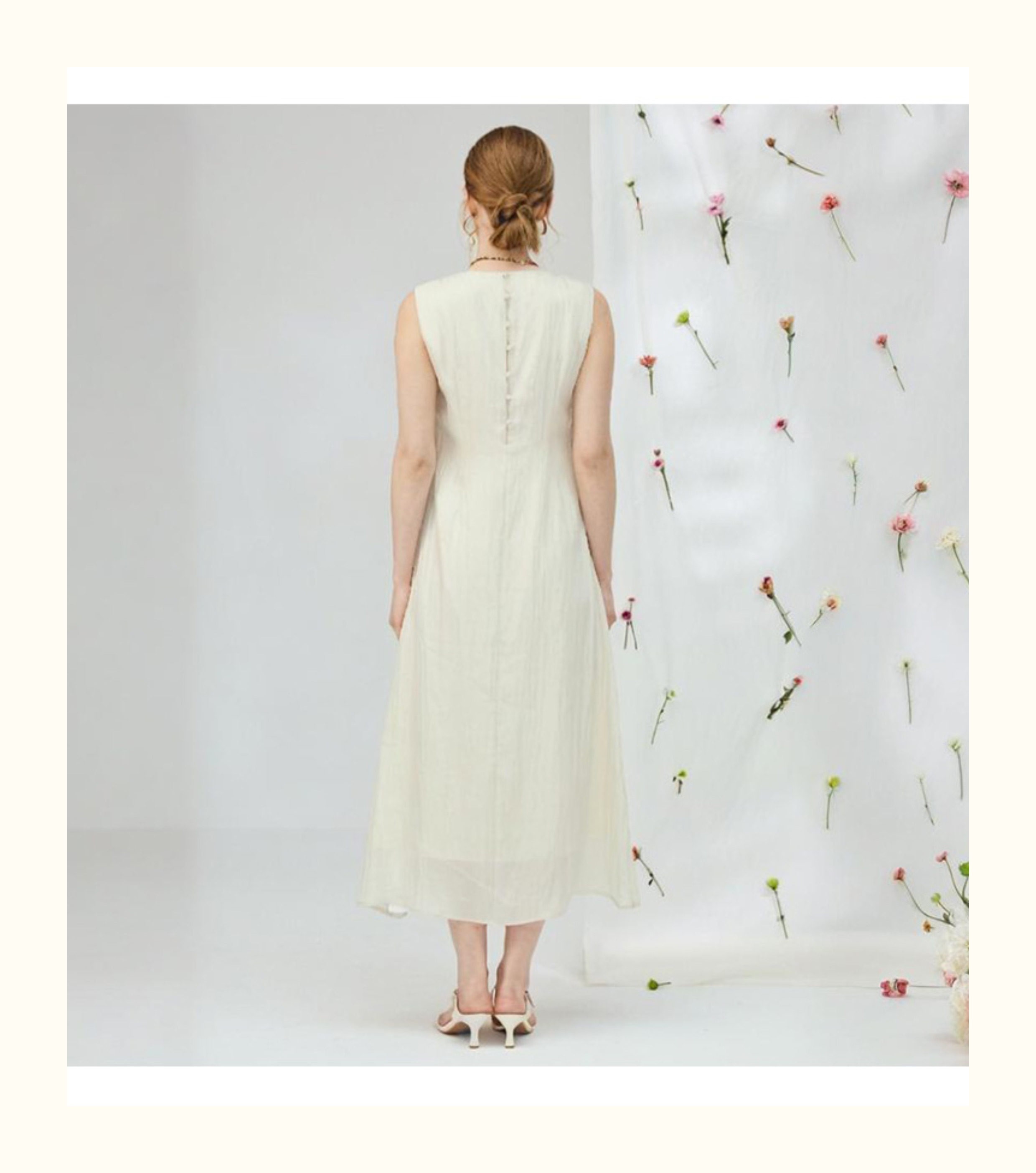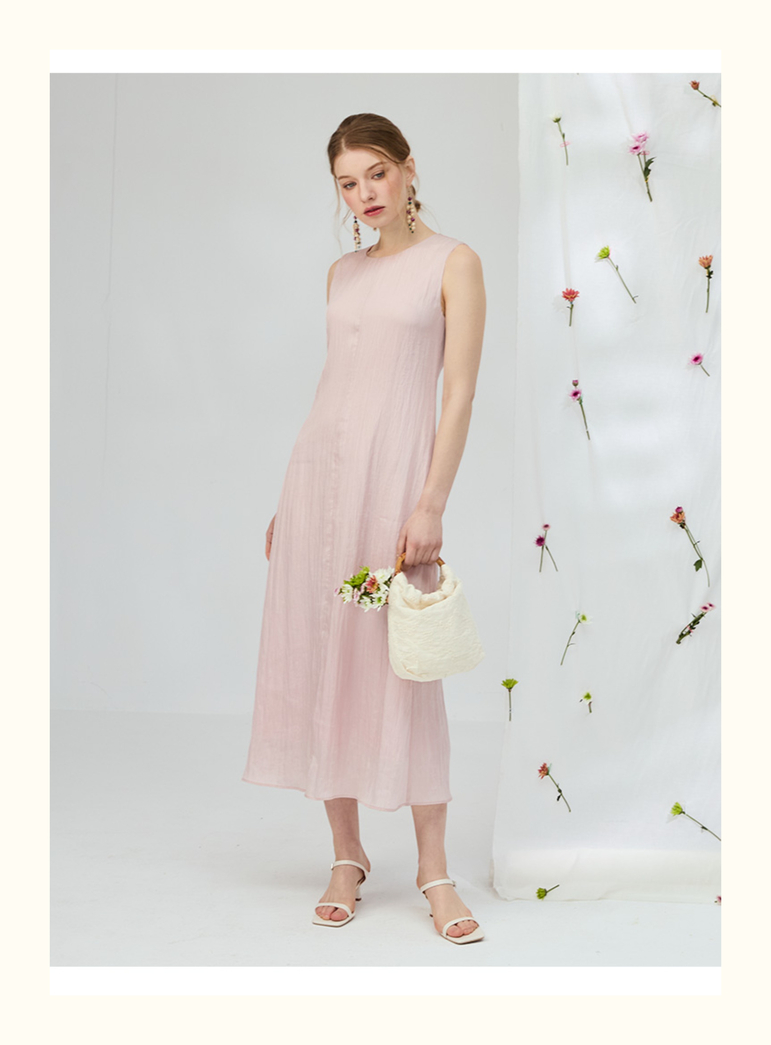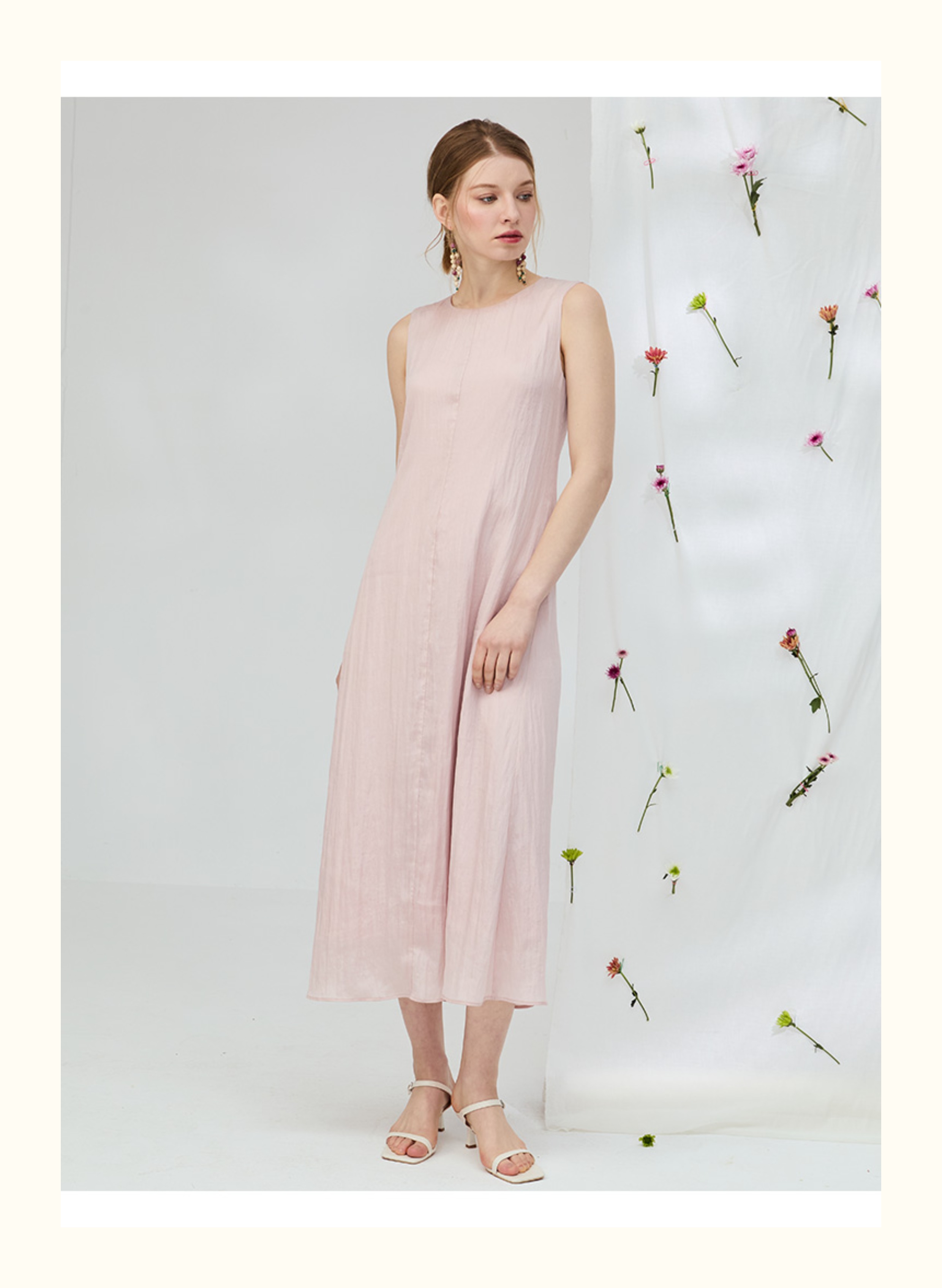 VIVIAN LIU V2534106 夏季新款圆领后背系扣无袖收腰优雅连衣裙