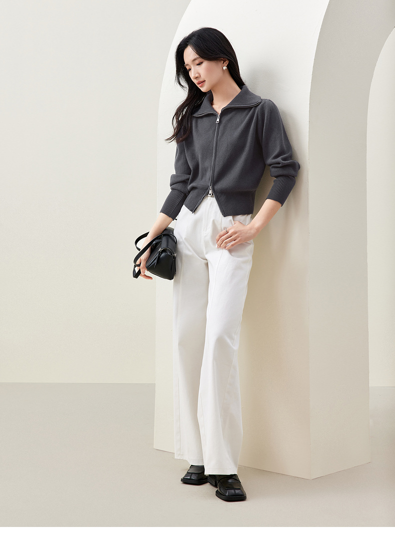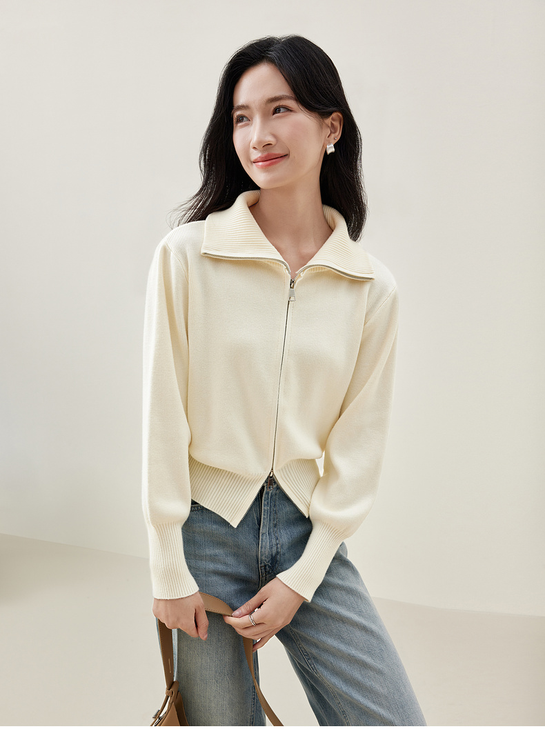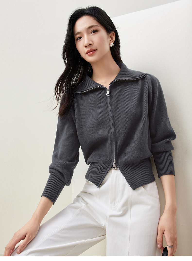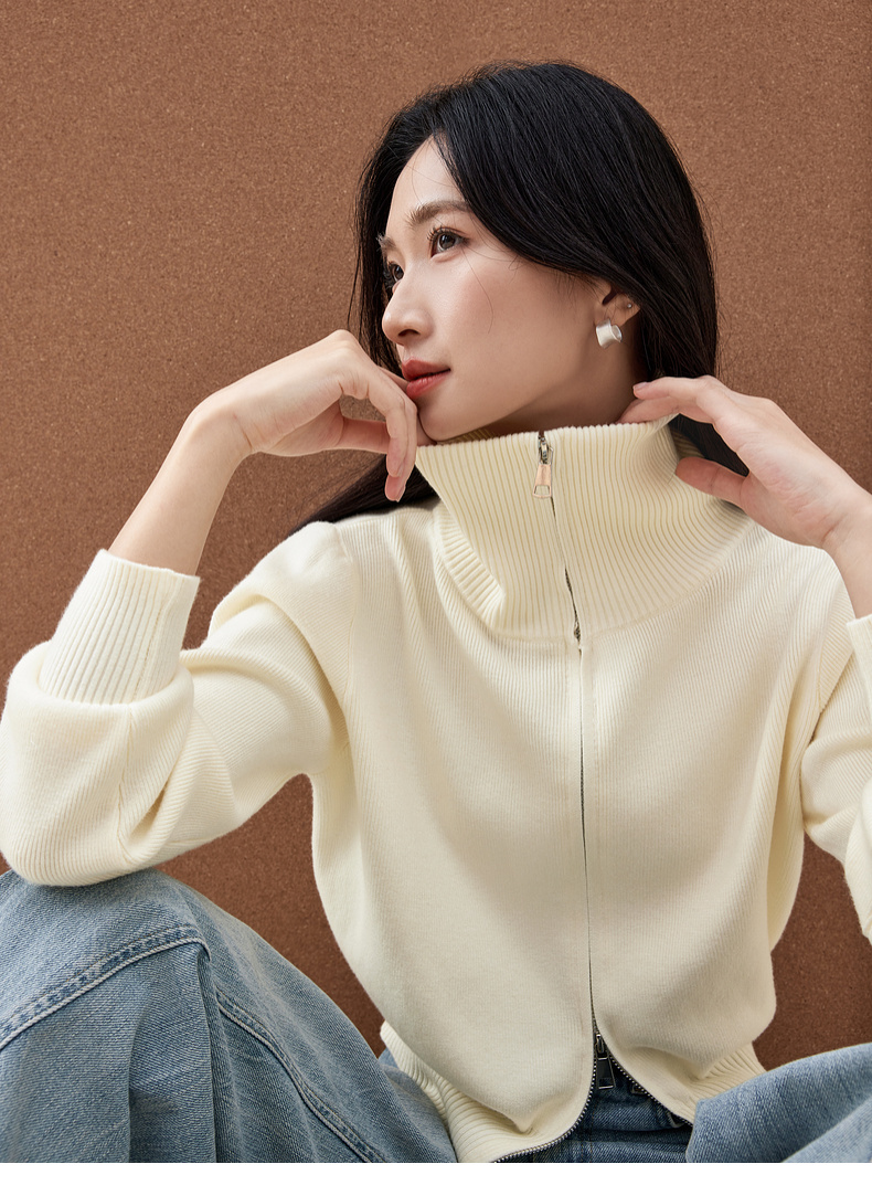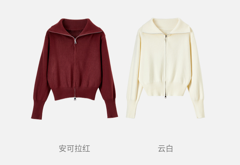ROW风双拉链开衫MIU系色调毛衣外套上身纸片人叠穿神器显瘦针织衫-W51E58698