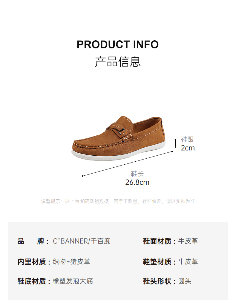 千百度2026春季男鞋质感柔韧度好穿着不磨脚乐福鞋A26160665