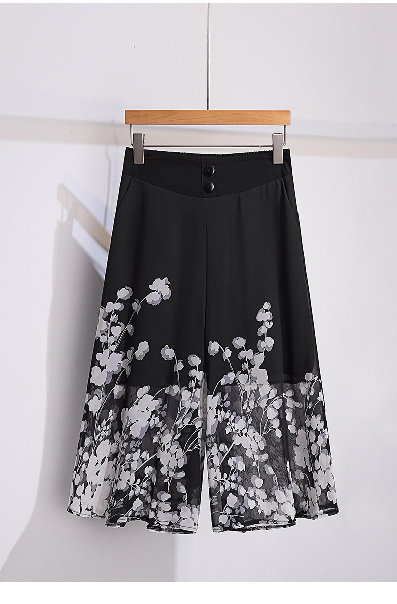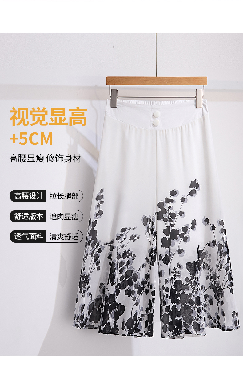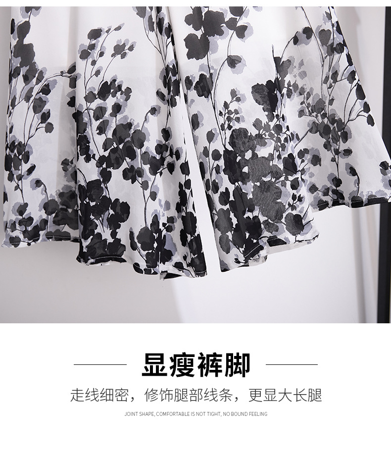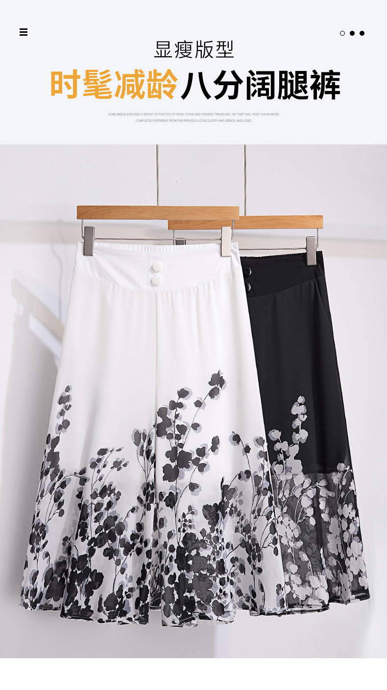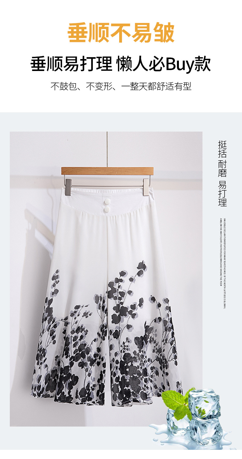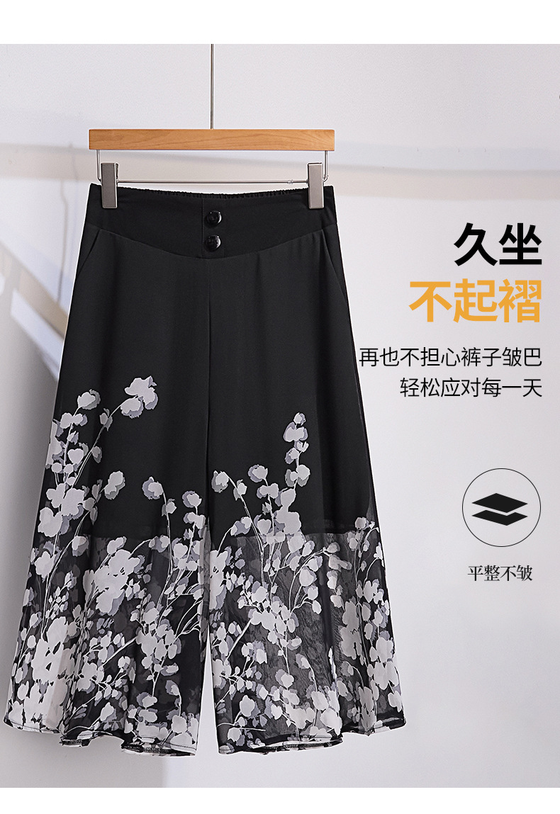 夏款通勤优雅,宽松时尚印花雪纺裙裤后腰松紧气质阔腿七分裤MYX-9414