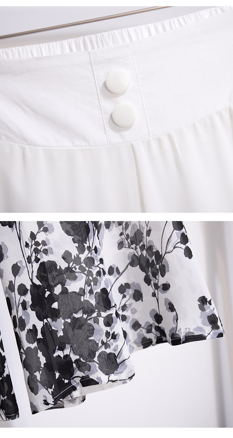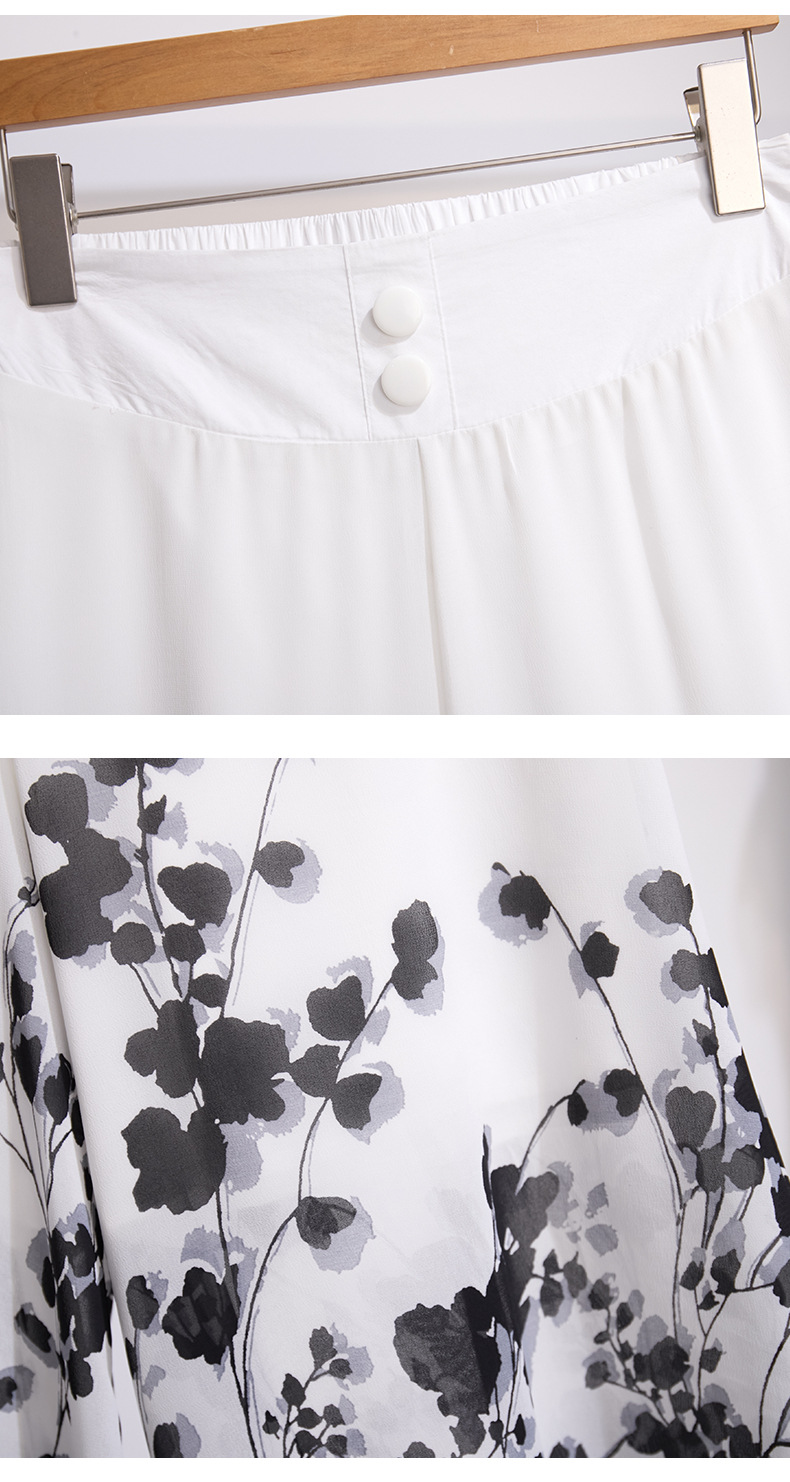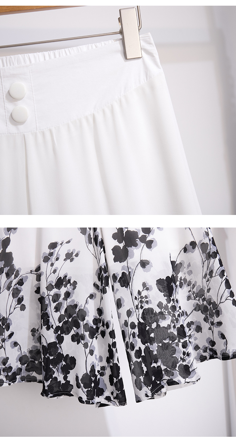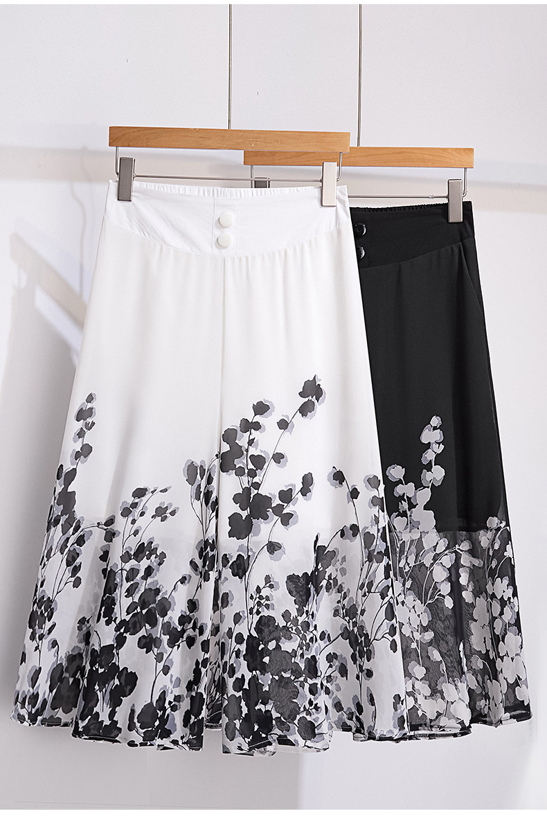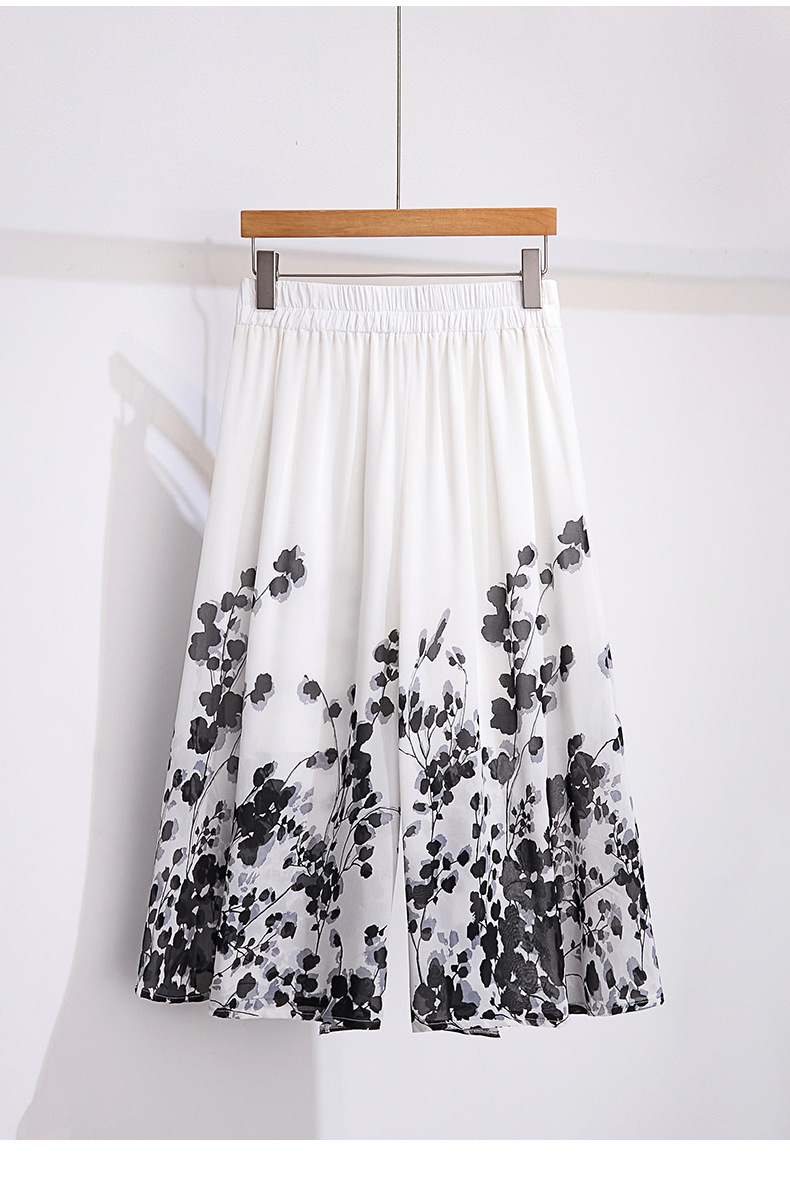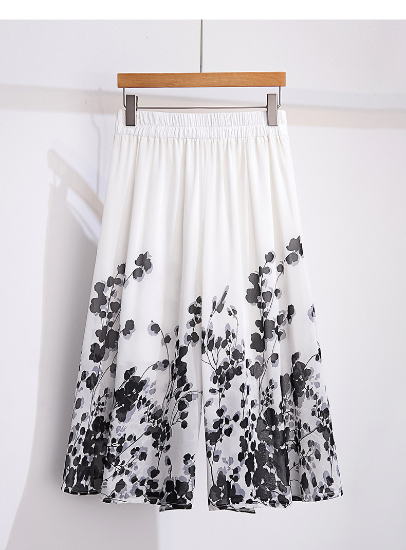 夏款通勤优雅,宽松时尚印花雪纺裙裤后腰松紧气质阔腿七分裤MYX-9414