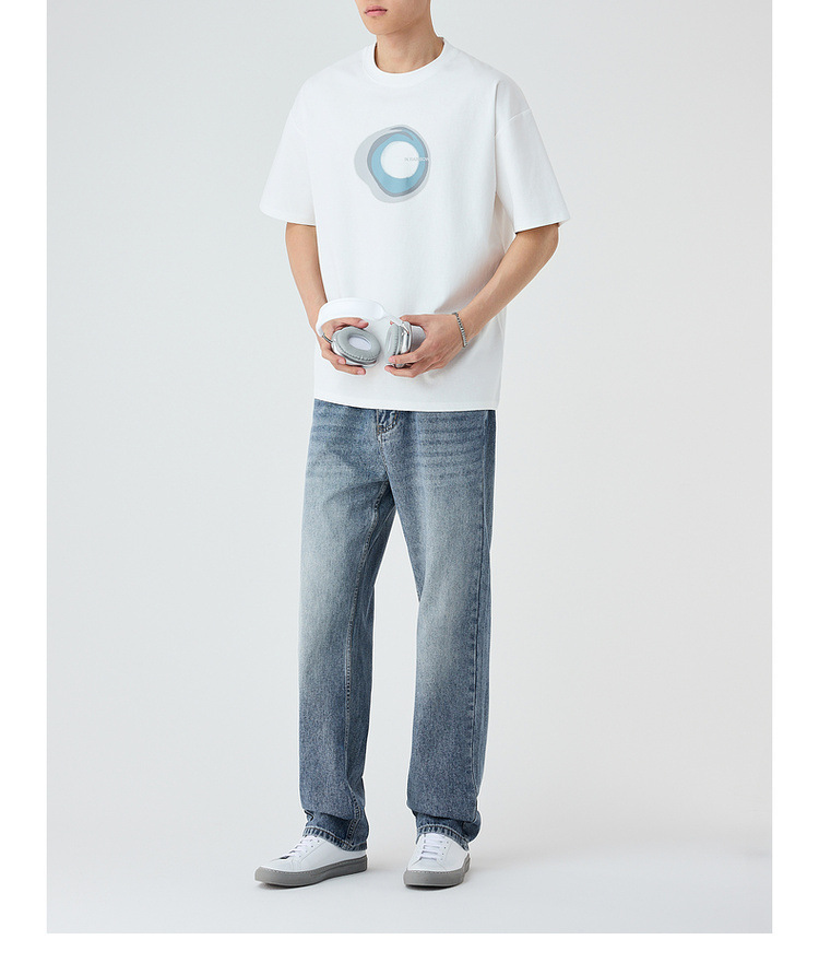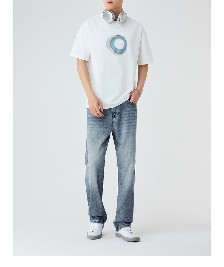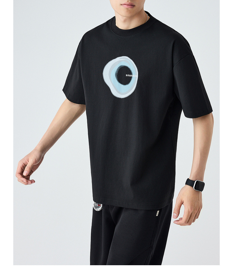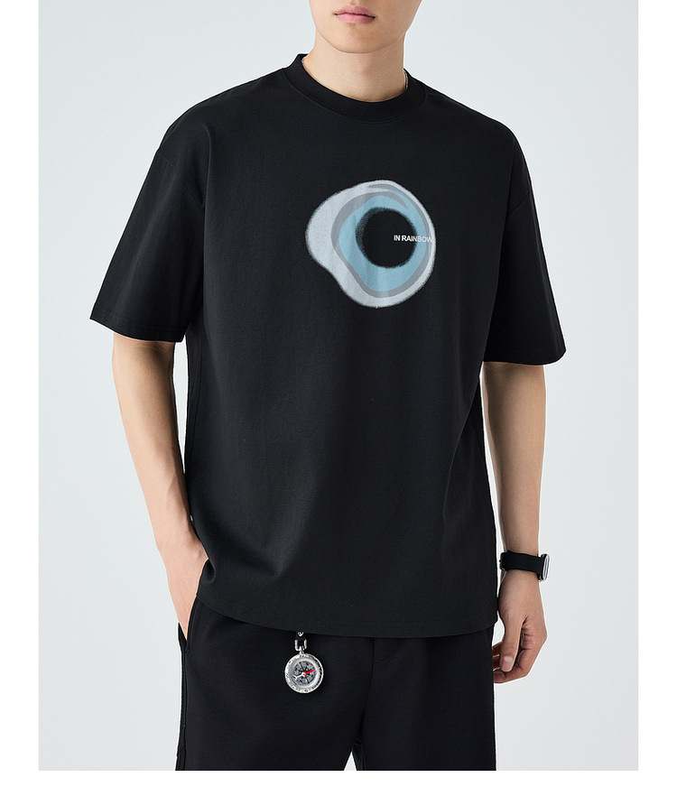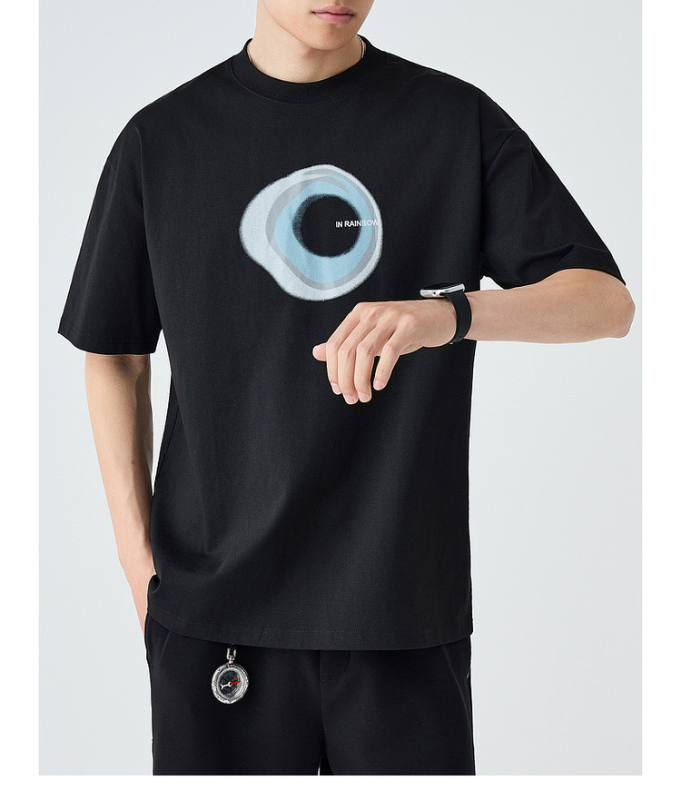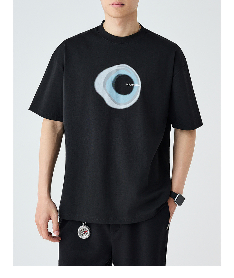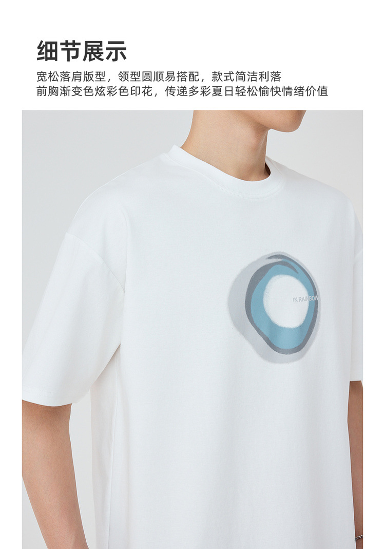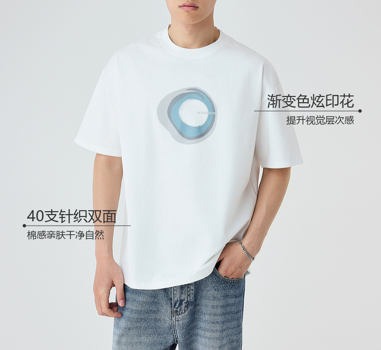 墨麦客男装渐变炫彩印花短袖男2025夏季新款精梳棉男士T恤71888.