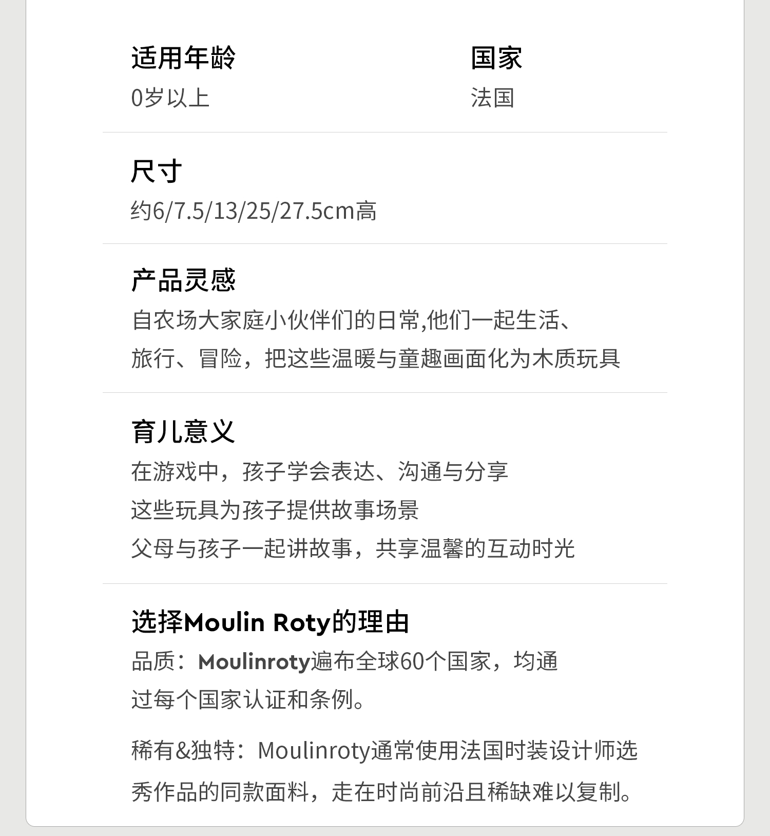Moulin Roty 食材套装 过家家玩具 适合3岁+ 农场大家庭系列 法国品牌 -632439