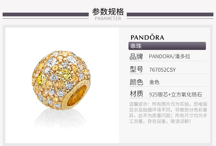 PANDORA/潘多拉女士925银金色Pavé密镶时尚DIY圆形串珠串饰767052CSY