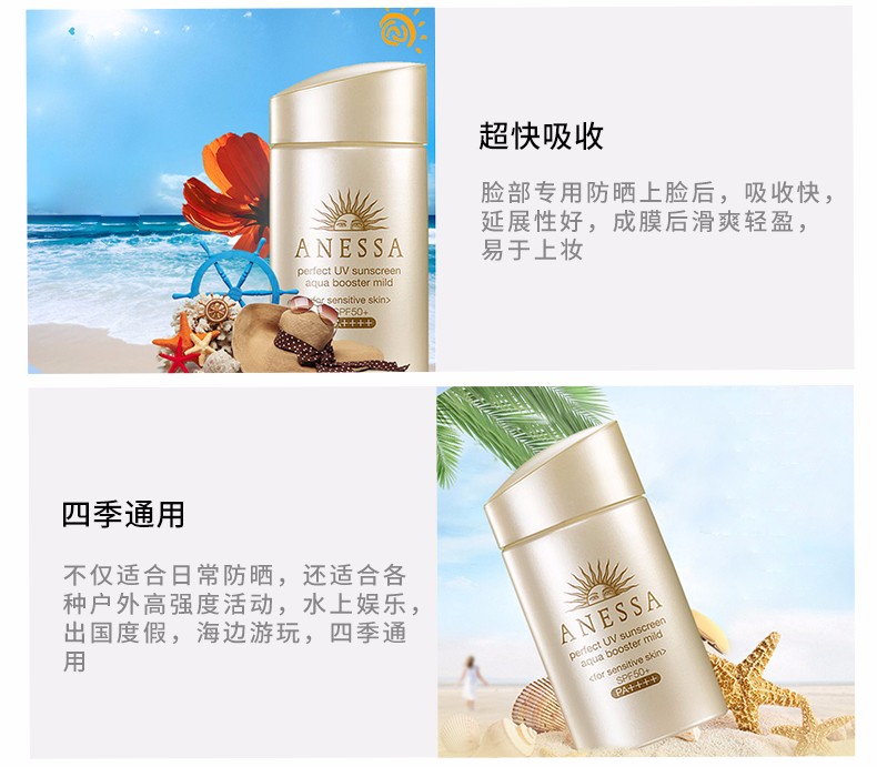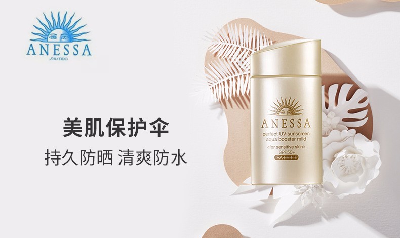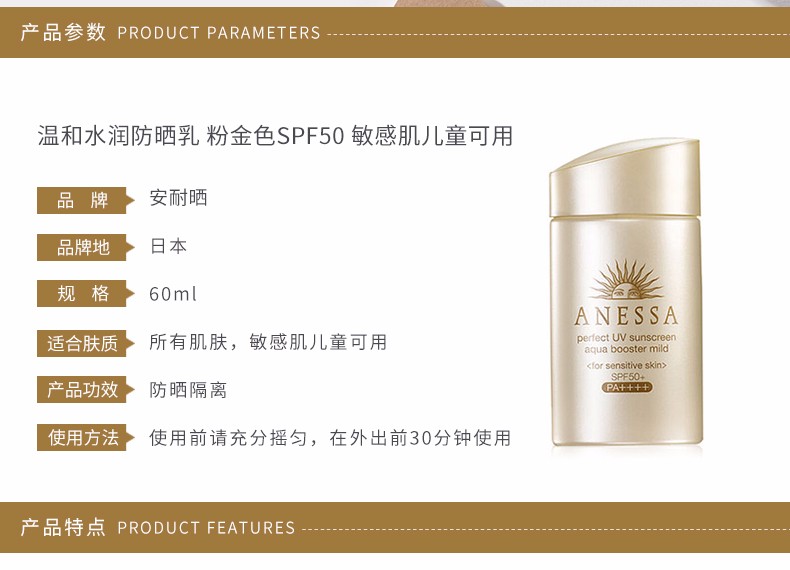 资生堂 ANESSA/安耐晒 防晒温和水润防晒乳 粉金色SPF50 60ml 敏感肌儿童可用