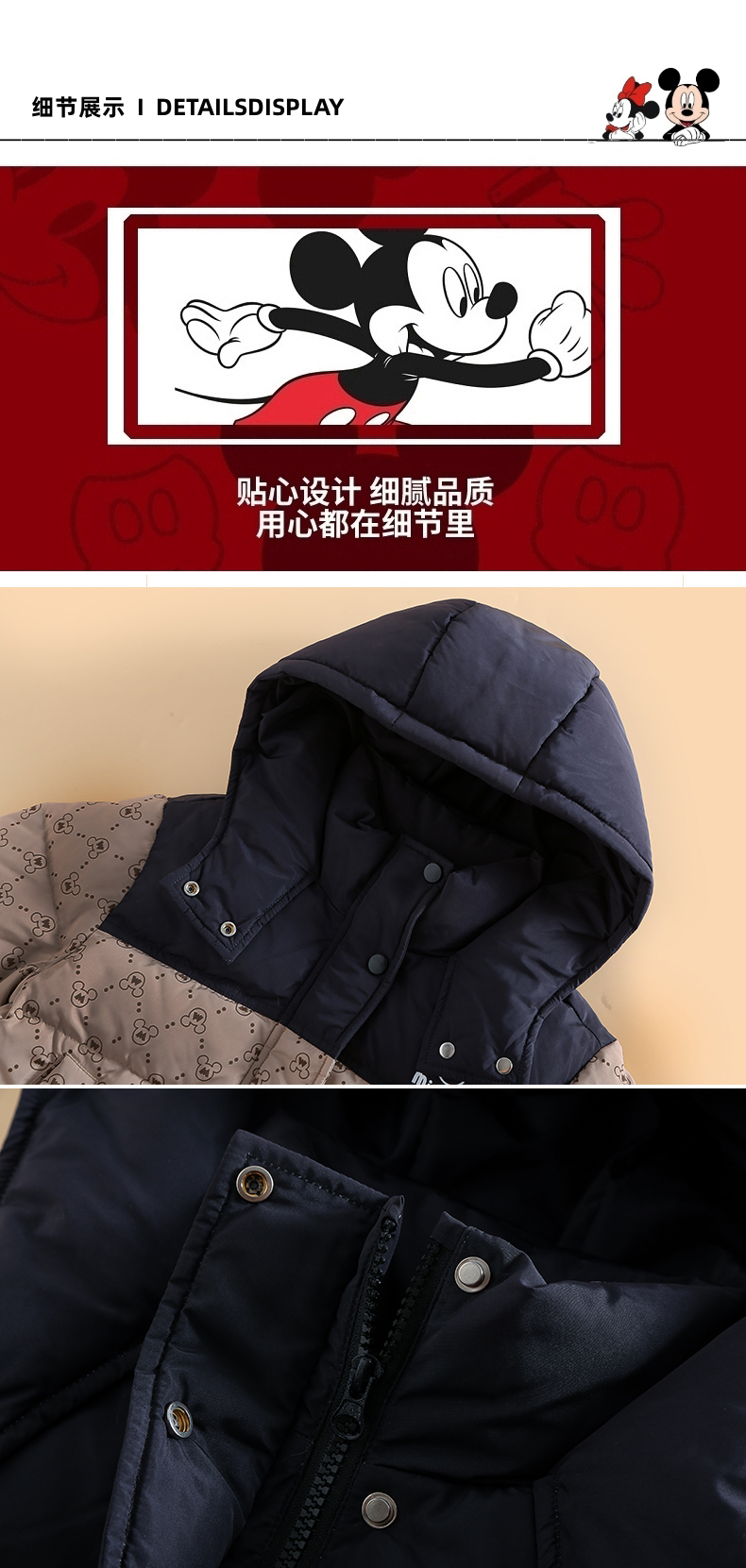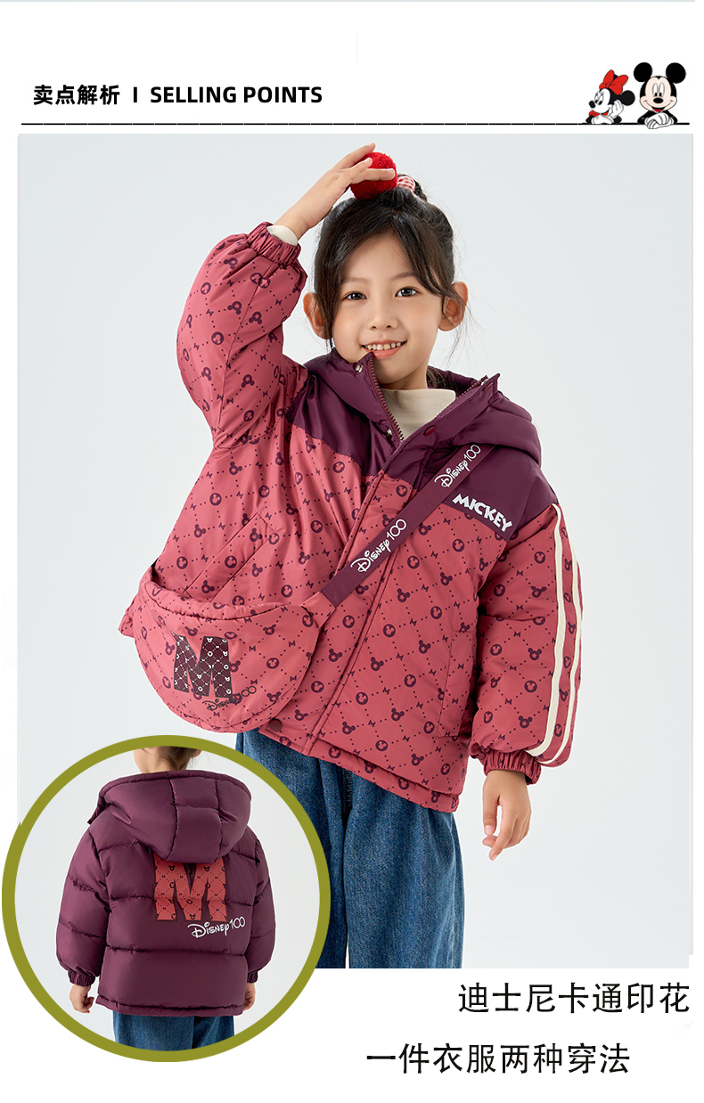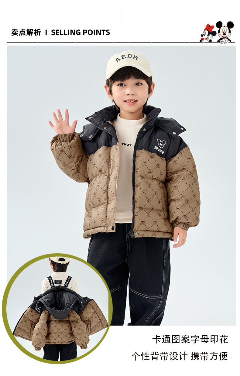 Disney/迪士尼XH儿童羽绒服男女童黑金系列连帽外套XME4SU506