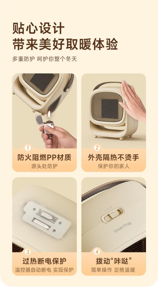 😎🌟新品上新:【卡蛙氛围桌面暖风机】满满的氛围感~💥温暖你的每个日常——快速制热,温暖不等待😎 🟠 机身阻燃材质,阻燃隔热又防烫