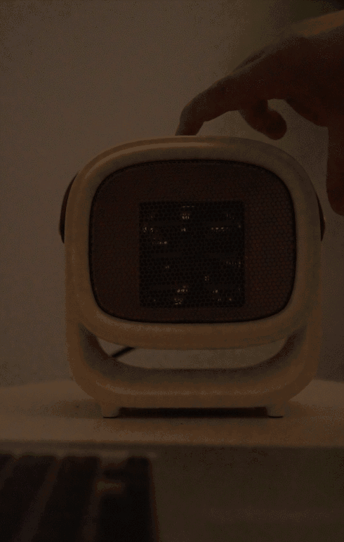 小小身材灵活移动,温暖如影随行 PTC陶瓷发热,升温迅速,自控恒温,无光不刺眼 仿航空涡轮扇叶,加速大范围暖流循环 智能控温,低能耗恒温,整晚开无负担