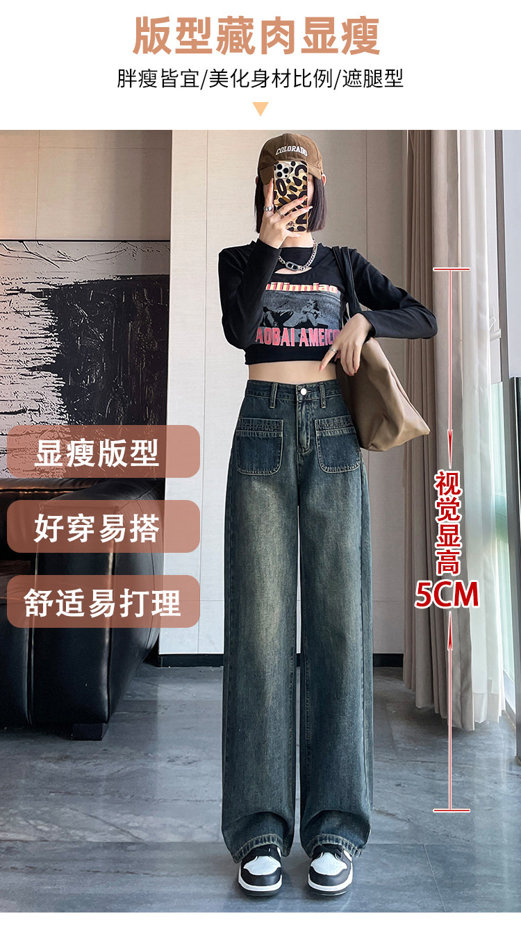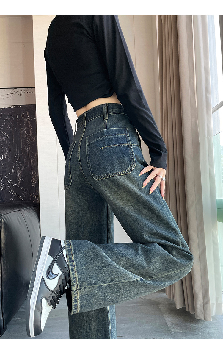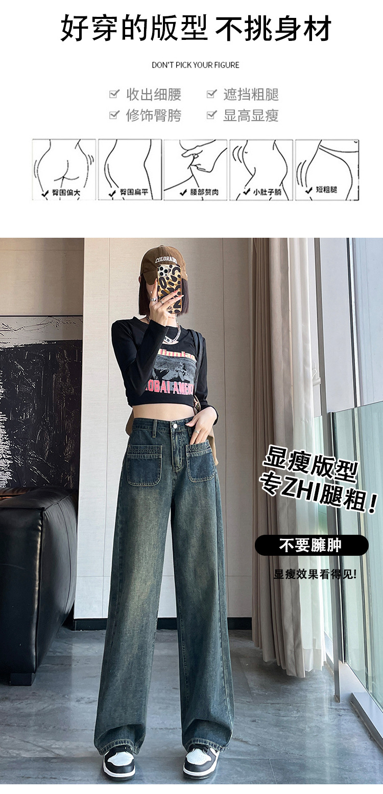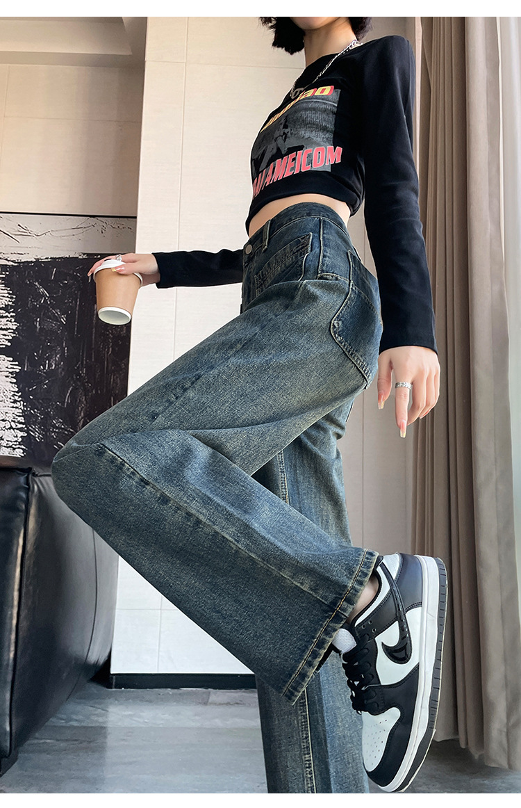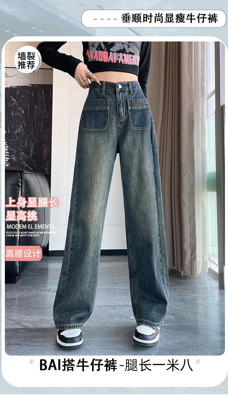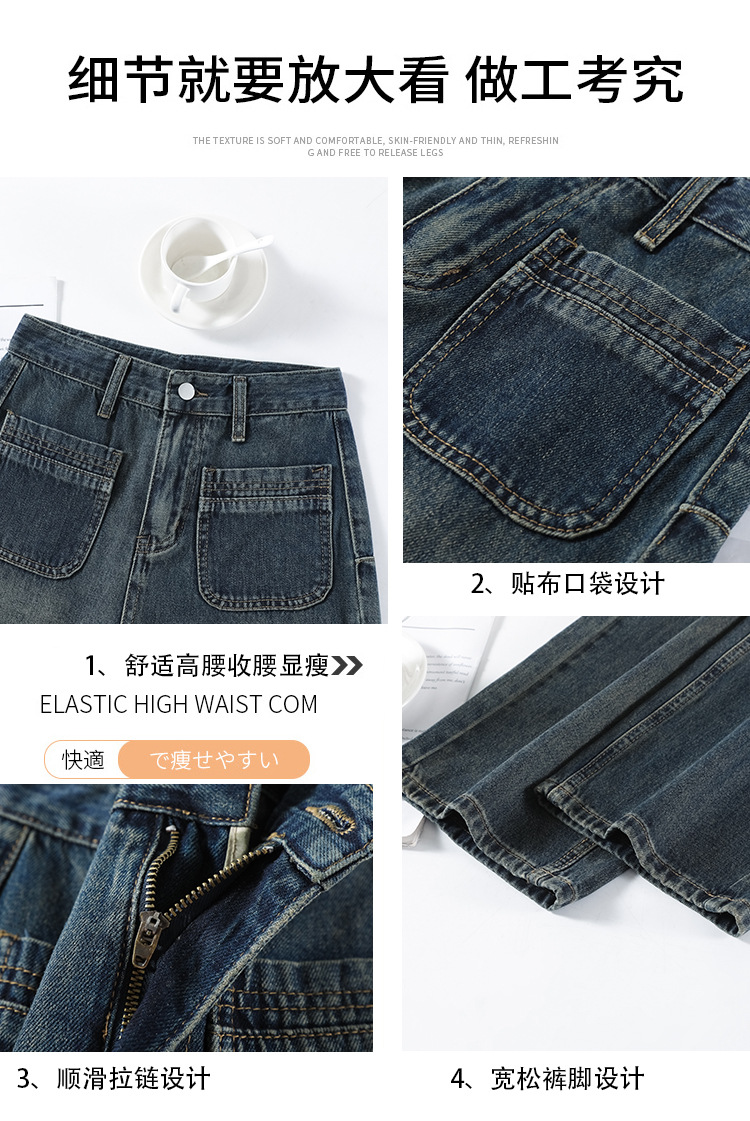 双十二活动!【自带显瘦滤镜!缺陷身材大救星】牛仔裤女长裤秋冬宽松显瘦显腿长,个性口袋休闲高腰阔腿裤加绒加厚,秋冬必备 休闲时尚