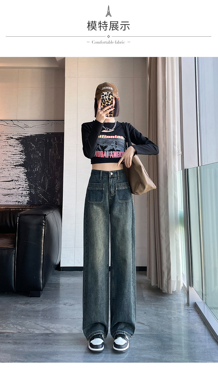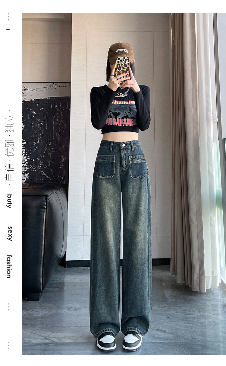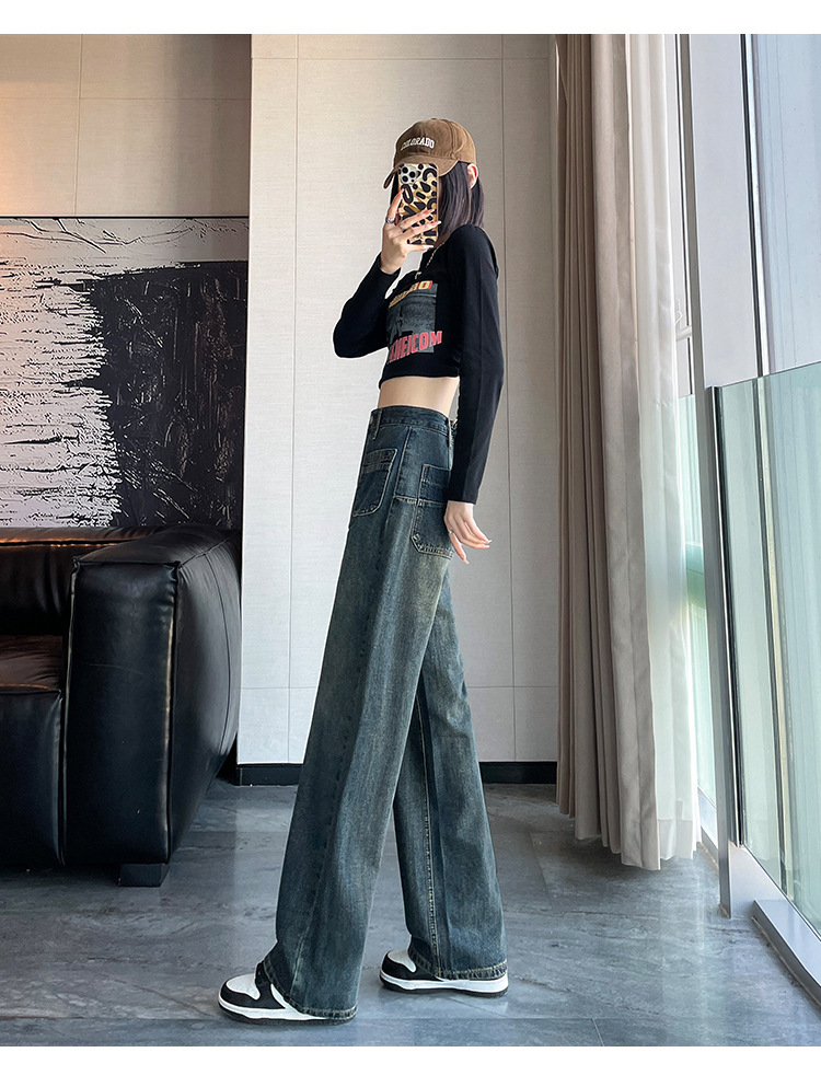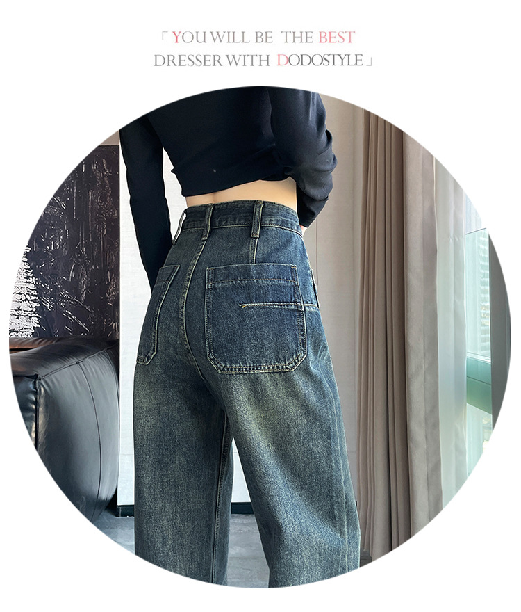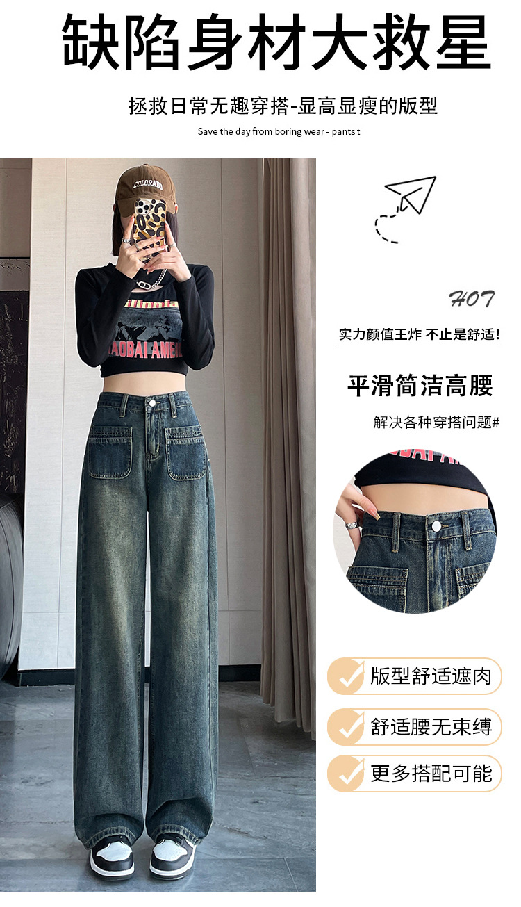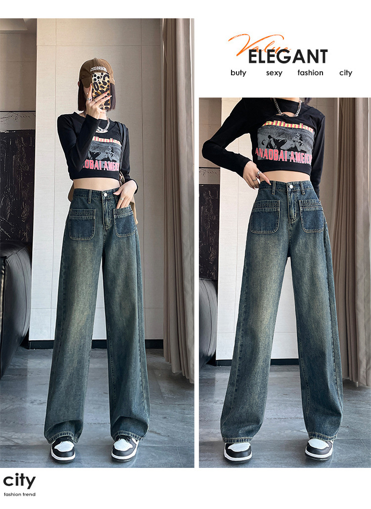 双十二活动!【自带显瘦滤镜!缺陷身材大救星】牛仔裤女长裤秋冬宽松显瘦显腿长,个性口袋休闲高腰阔腿裤加绒加厚,秋冬必备 休闲时尚