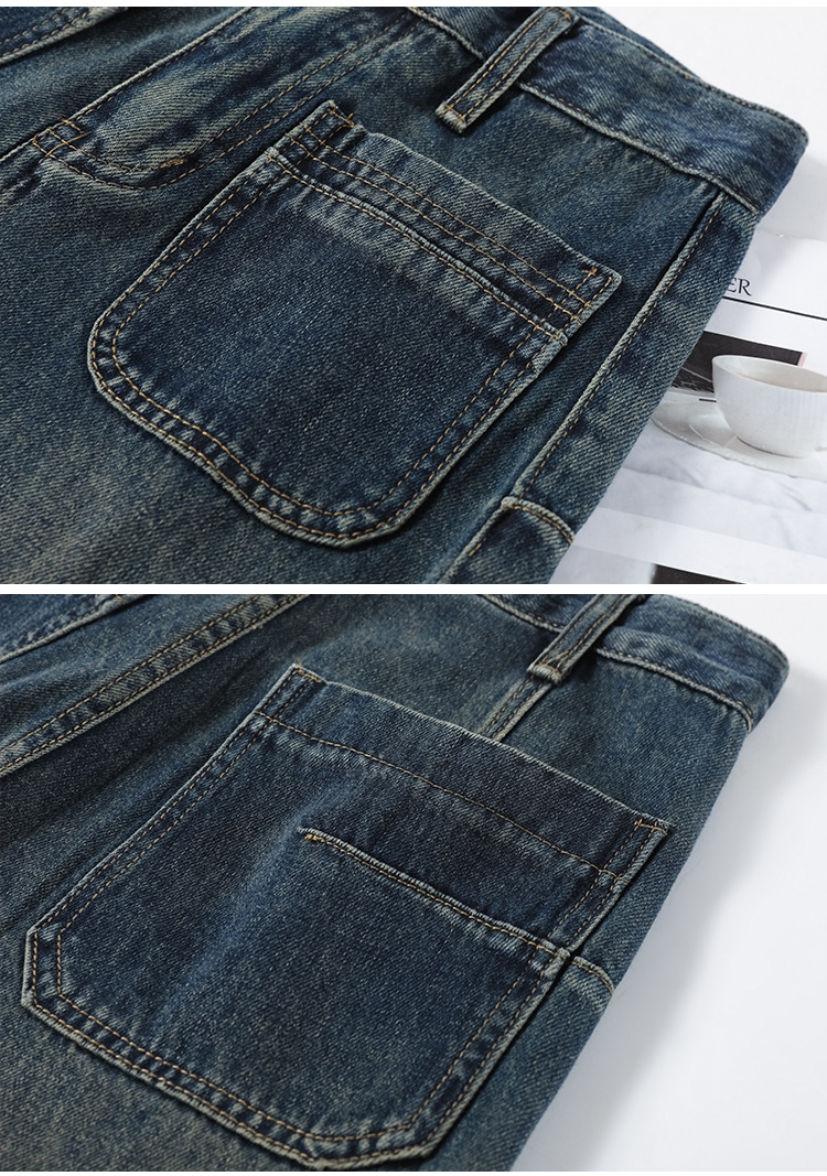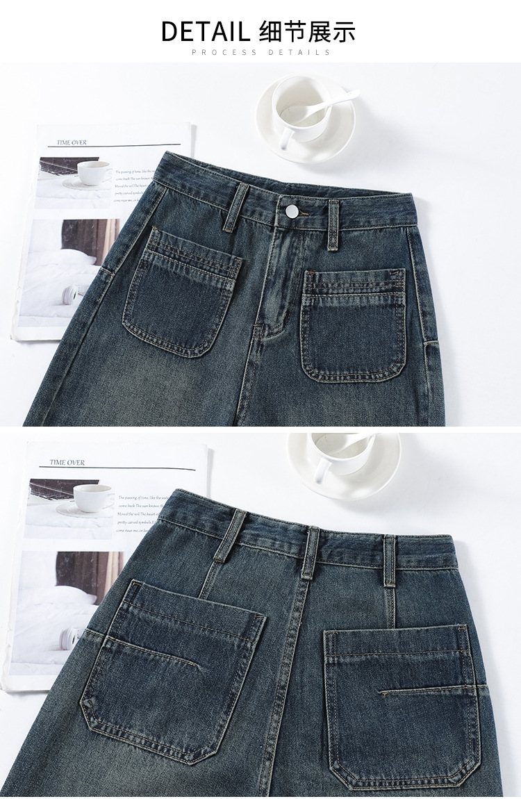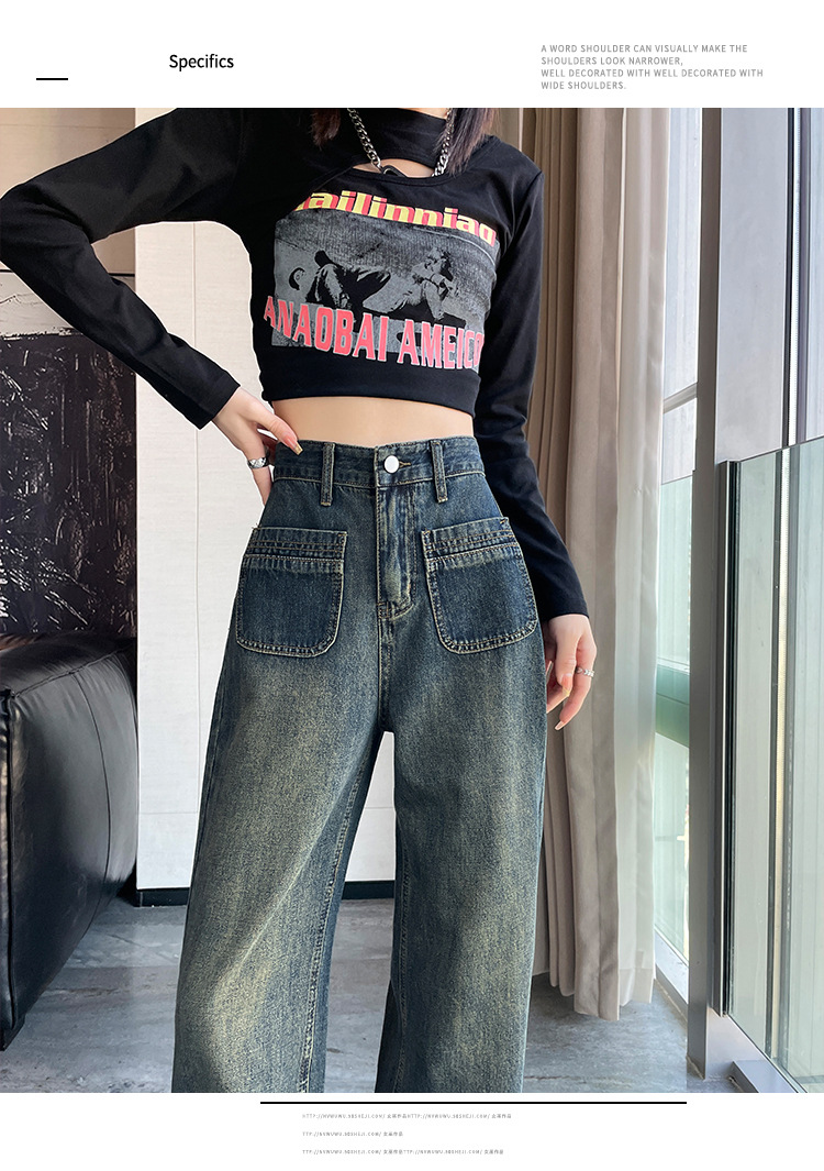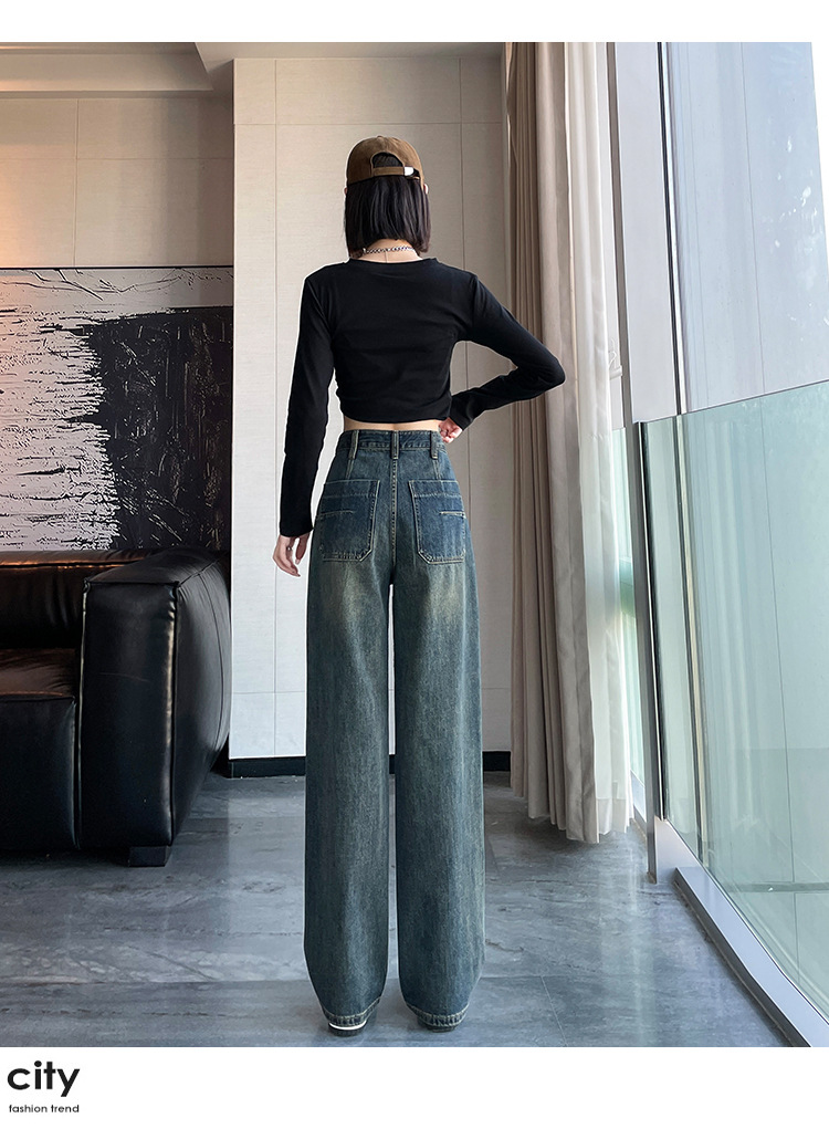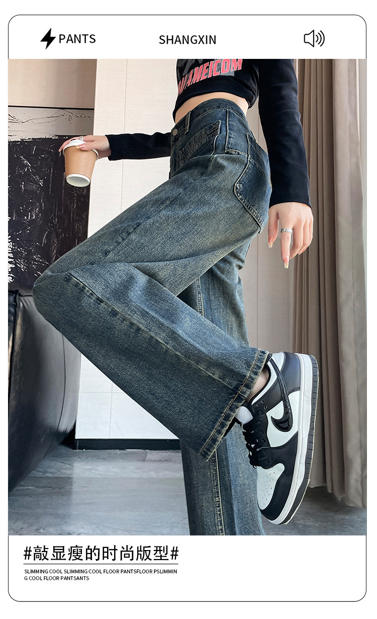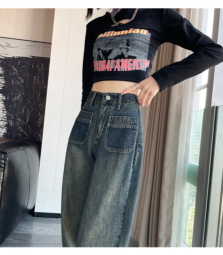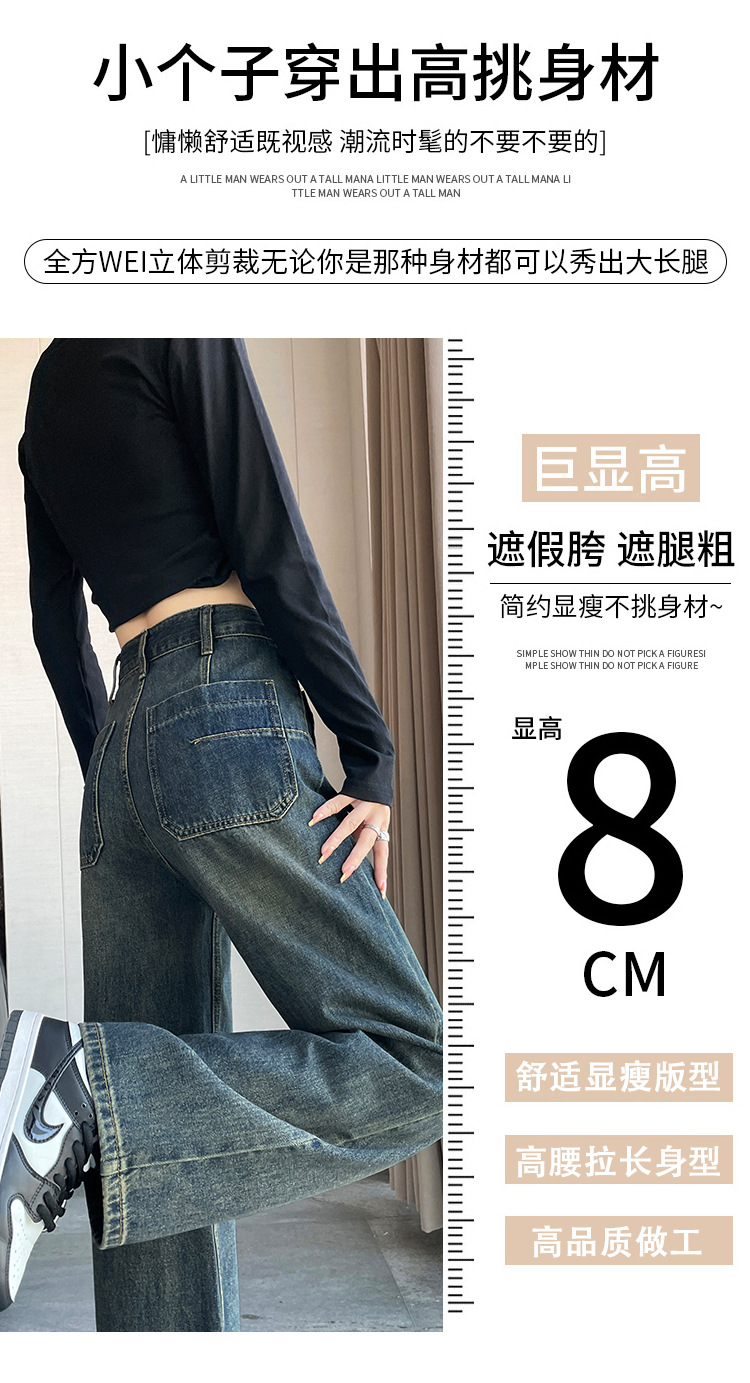 双十二活动!【自带显瘦滤镜!缺陷身材大救星】牛仔裤女长裤秋冬宽松显瘦显腿长,个性口袋休闲高腰阔腿裤加绒加厚,秋冬必备 休闲时尚