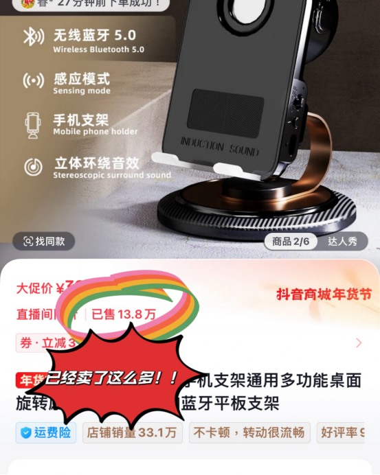 ✅感应模式:不挑手机,灵敏秒连,扩大音量 ✅手机支架:360°旋转,稳固不滑承重强 ✅可切换感应模式为蓝牙模式,作为一个单独的小音响使用也可以