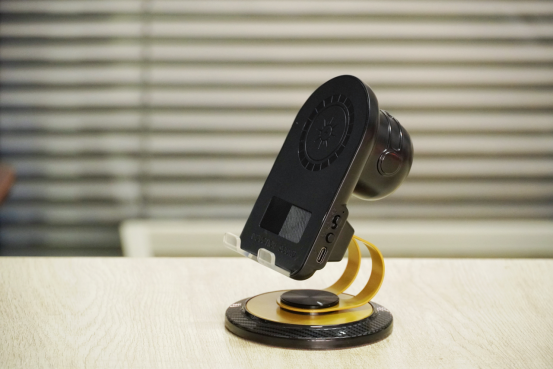 虽然不能调整它的高低 但是360°全轴旋转相当稳固及灵活 转圈使用 咖哒咖哒清脆好听 圆盘底下的接触面有三条硅胶防滑条 让底座简直像个章鱼吸盘一样防滑耐磨