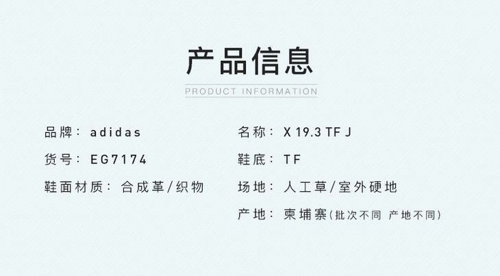 Adidas阿迪达斯X19.3TF碎钉儿童足球鞋EG7174