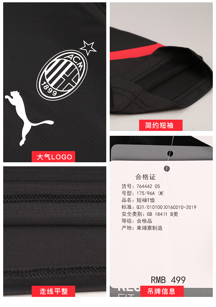 PUMA彪马21-22赛季AC米兰赛前热身服足球运动球服764442-05
