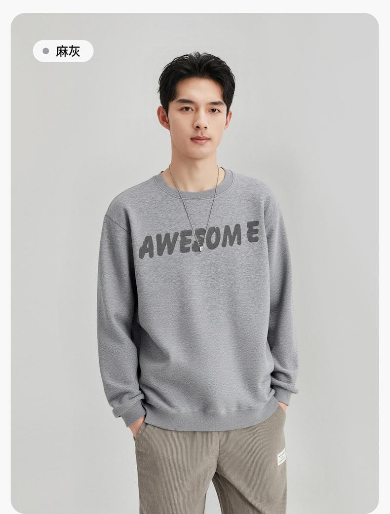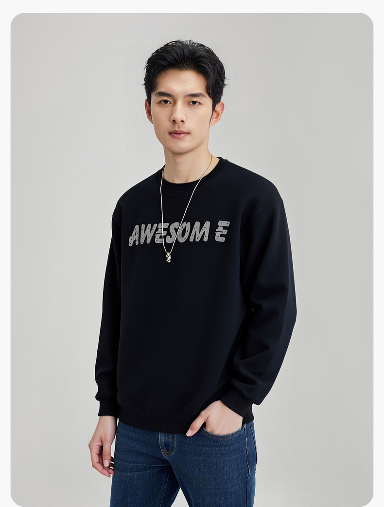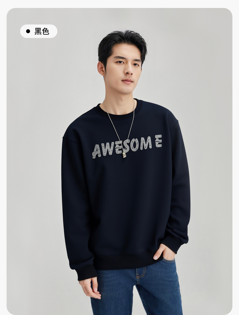 圣得西男士基础百搭圆领套头不变形卫衣2025秋季款通勤时尚上衣
