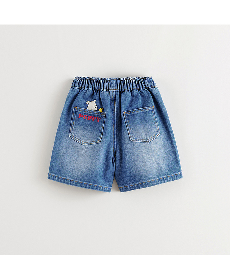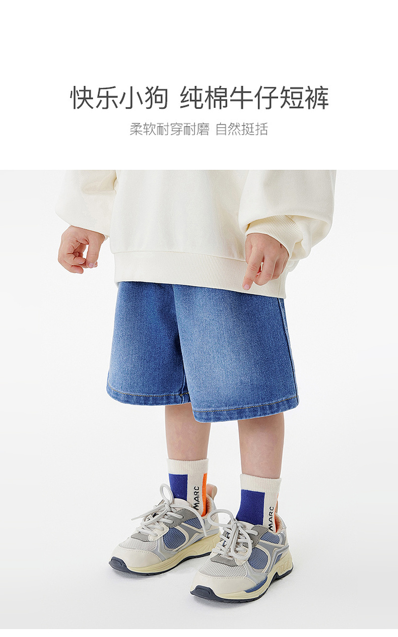 马克珍妮男童快乐小狗软牛仔短裤宝宝纯棉裤子2025夏装新款550638