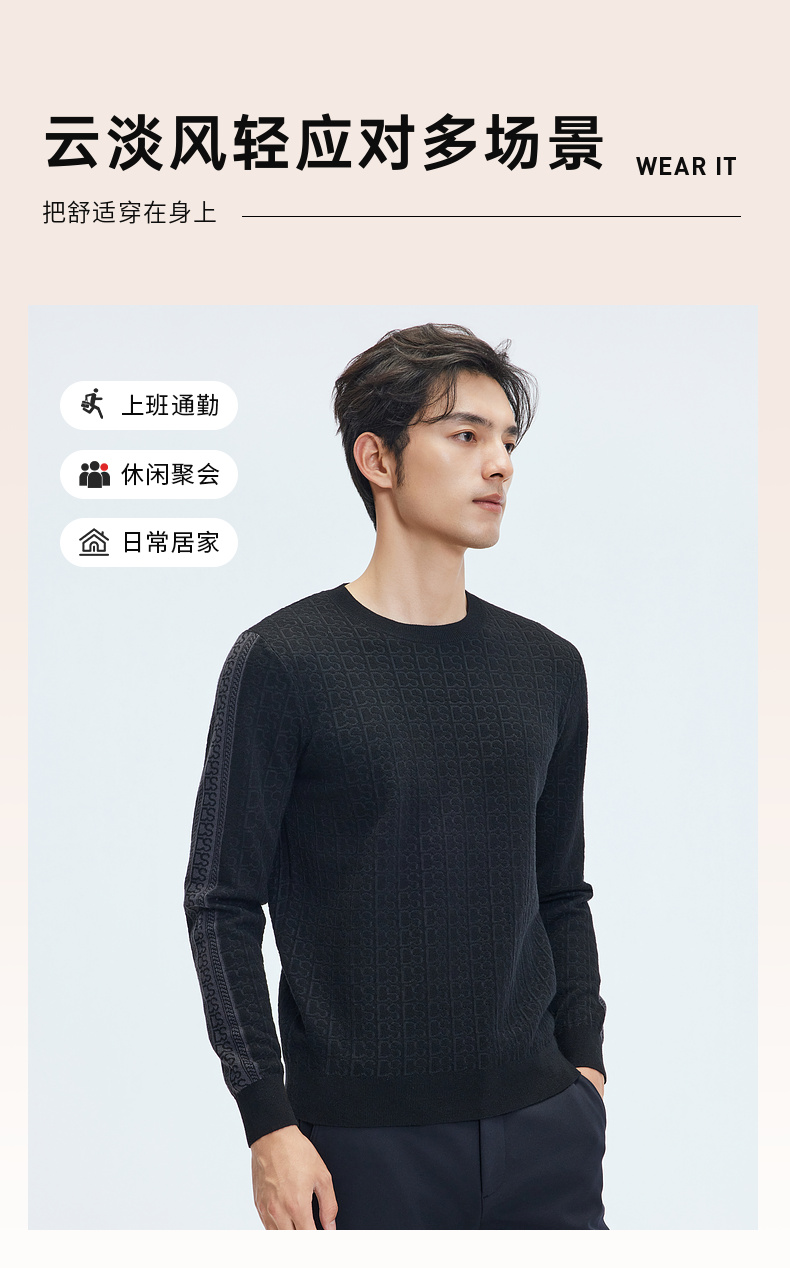【门店同款】圣得西2025年冬季男士长袖T恤含绵羊毛休闲风针织衫
