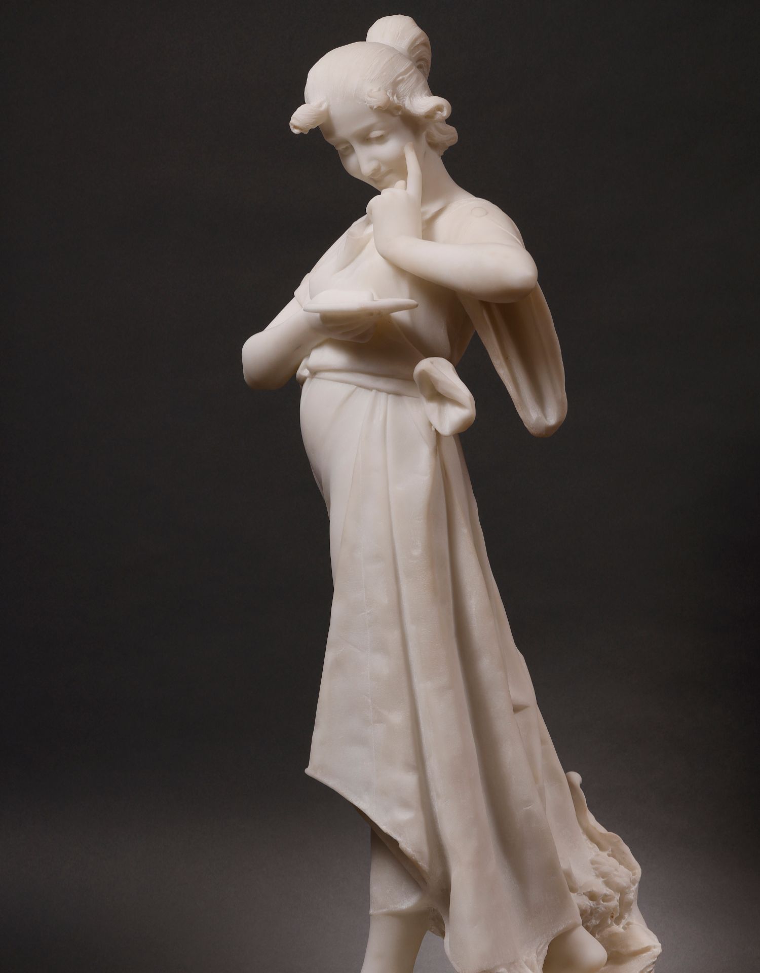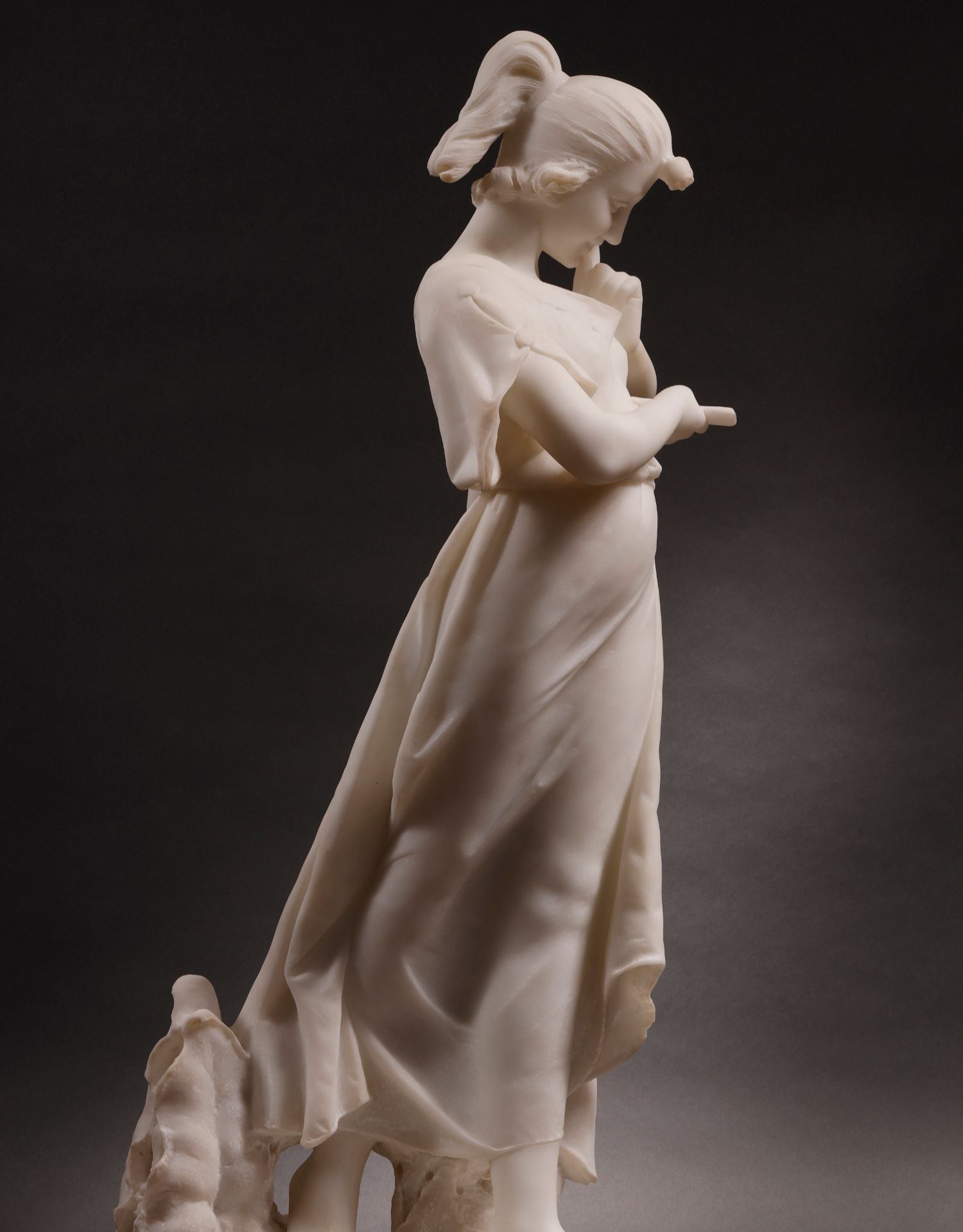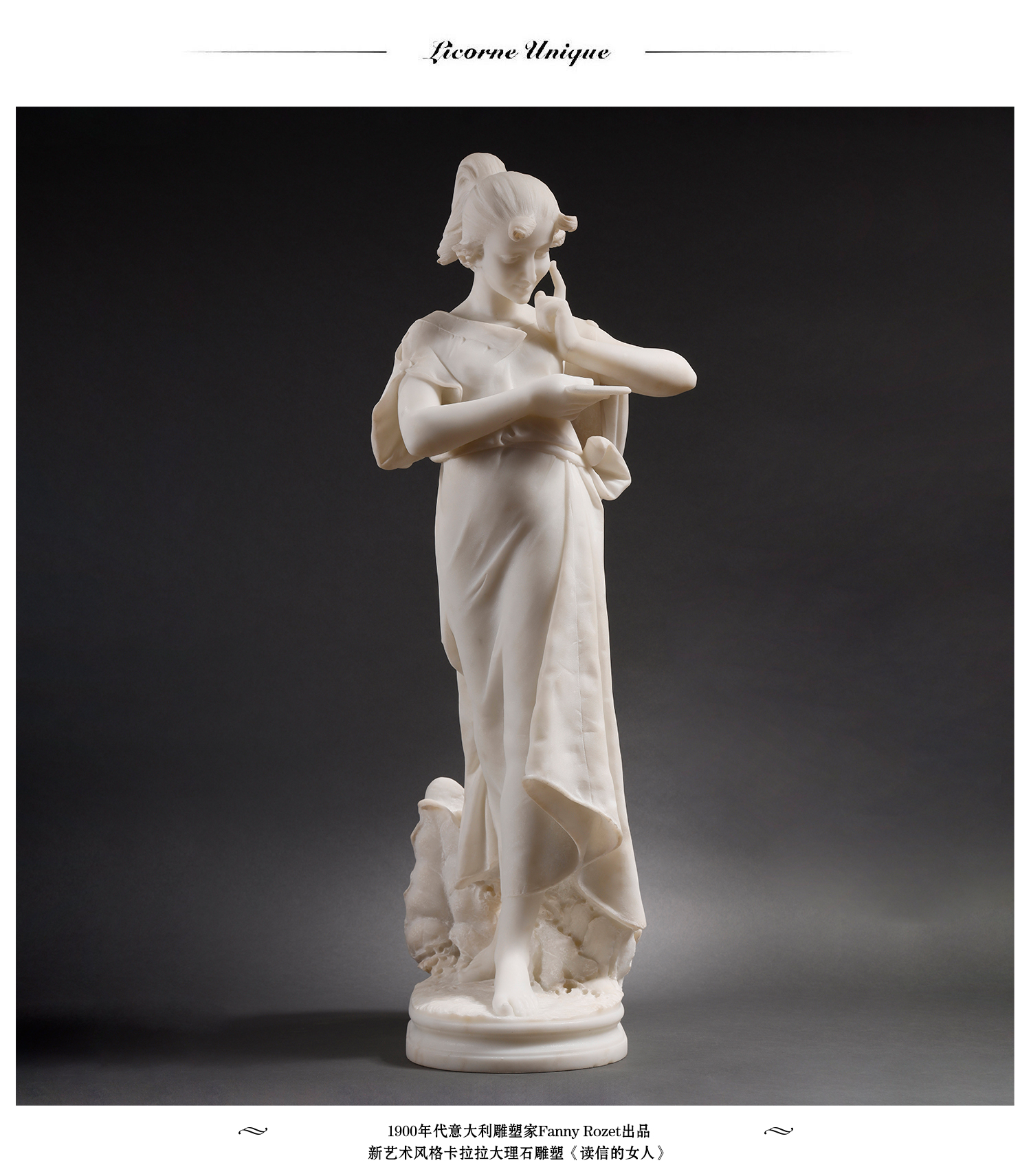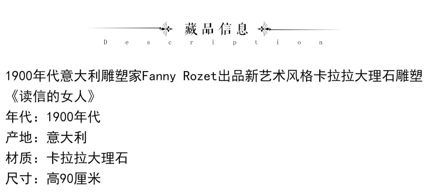 独角鹿西洋古董Fanny Rozet新艺术风卡拉拉大理石读信的女人雕塑