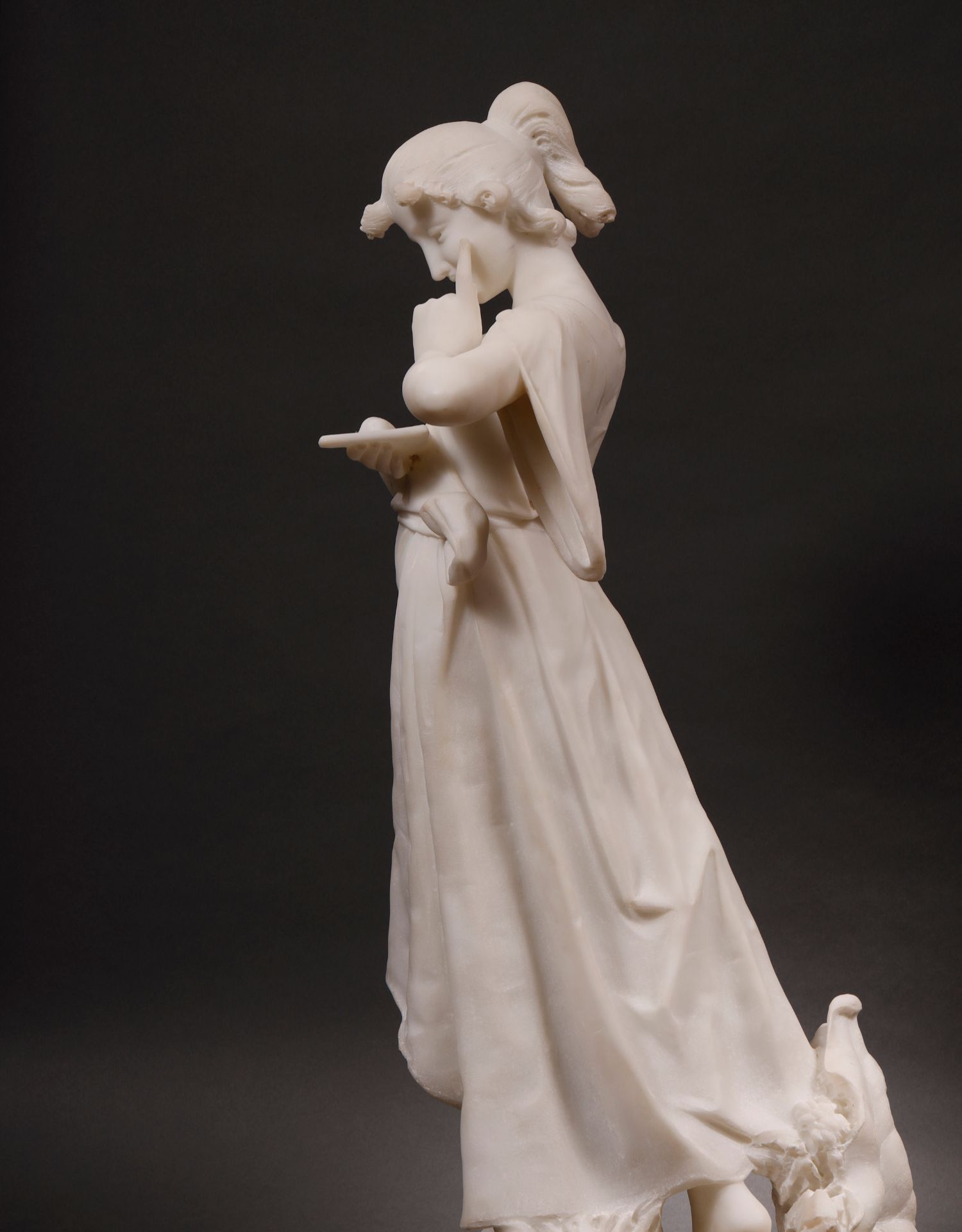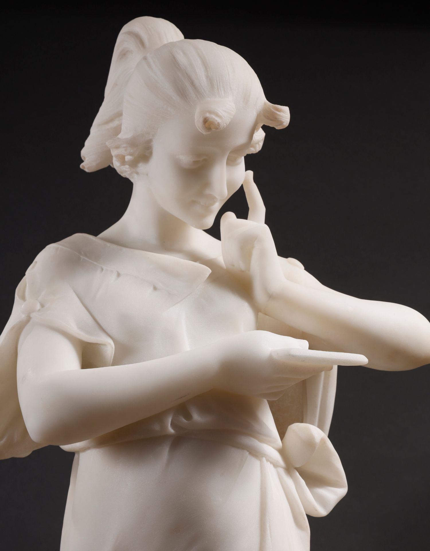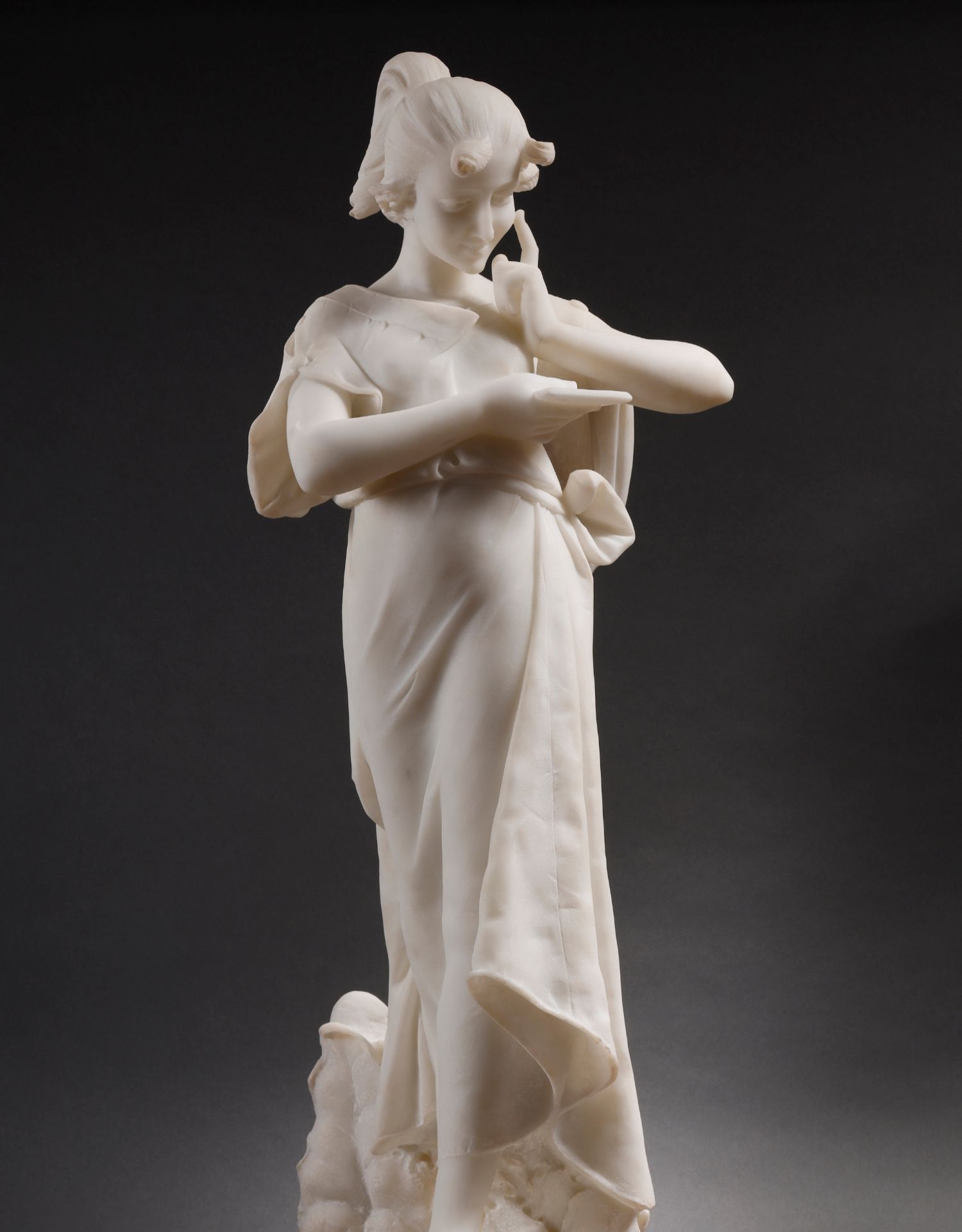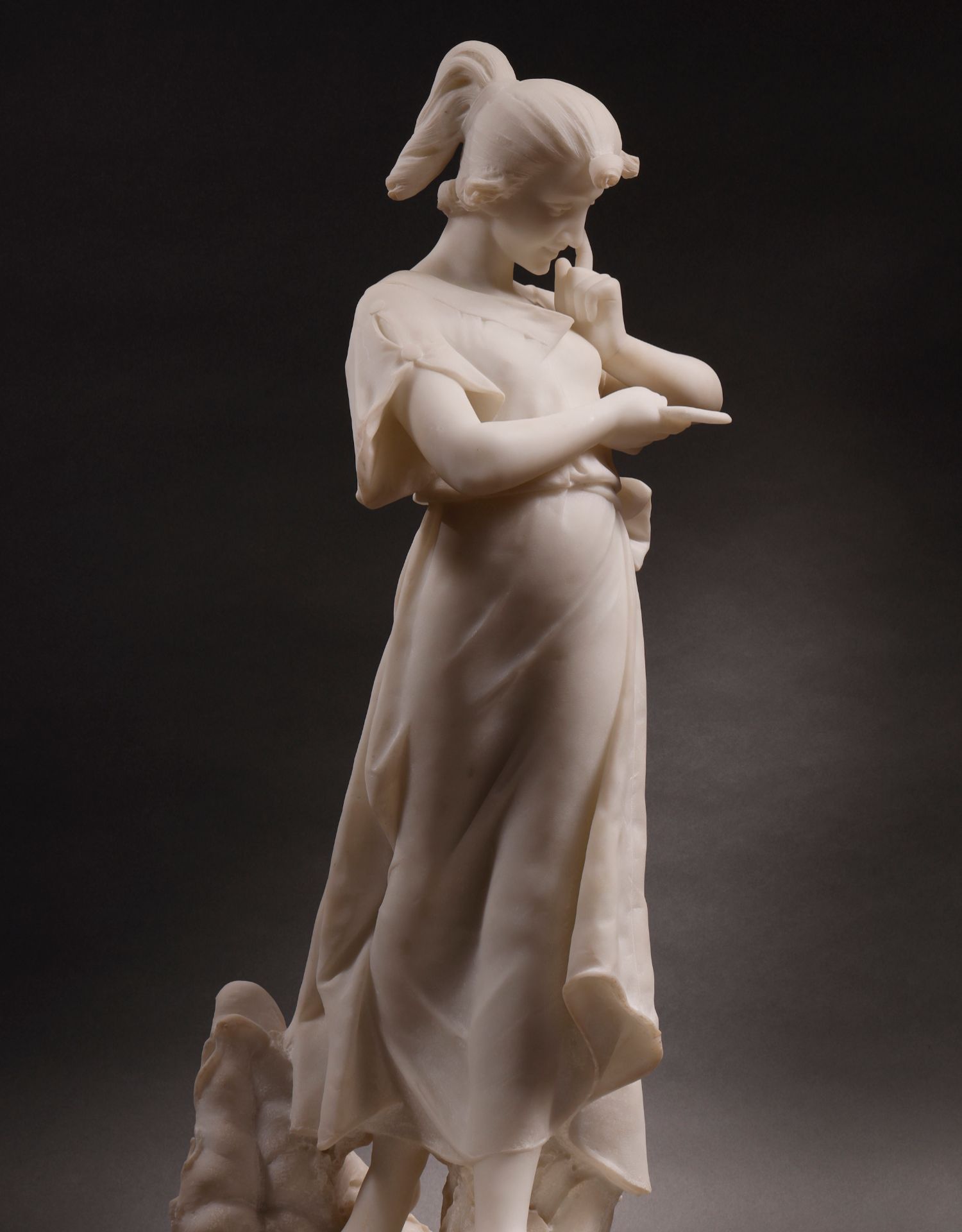 独角鹿西洋古董Fanny Rozet新艺术风卡拉拉大理石读信的女人雕塑
